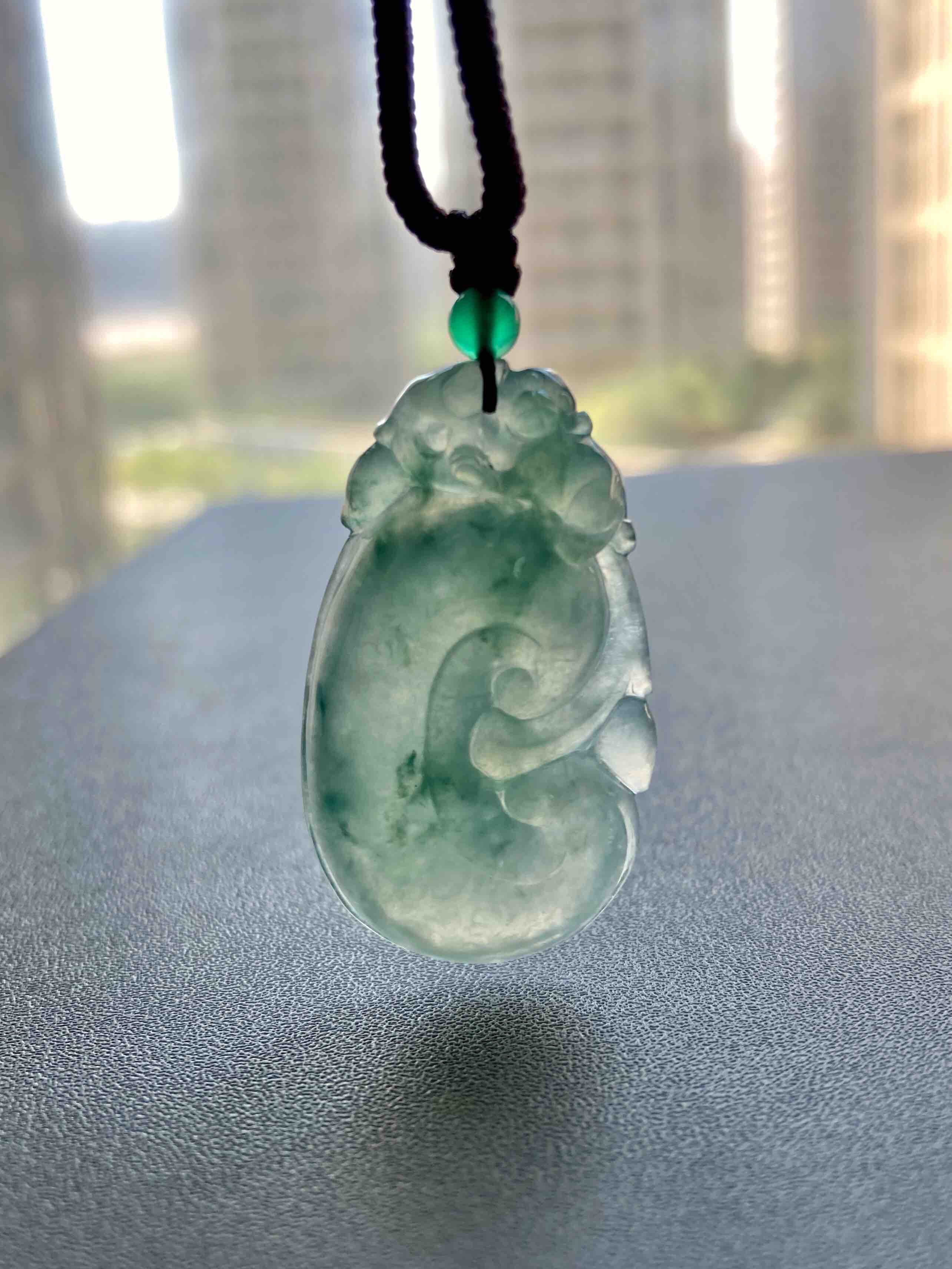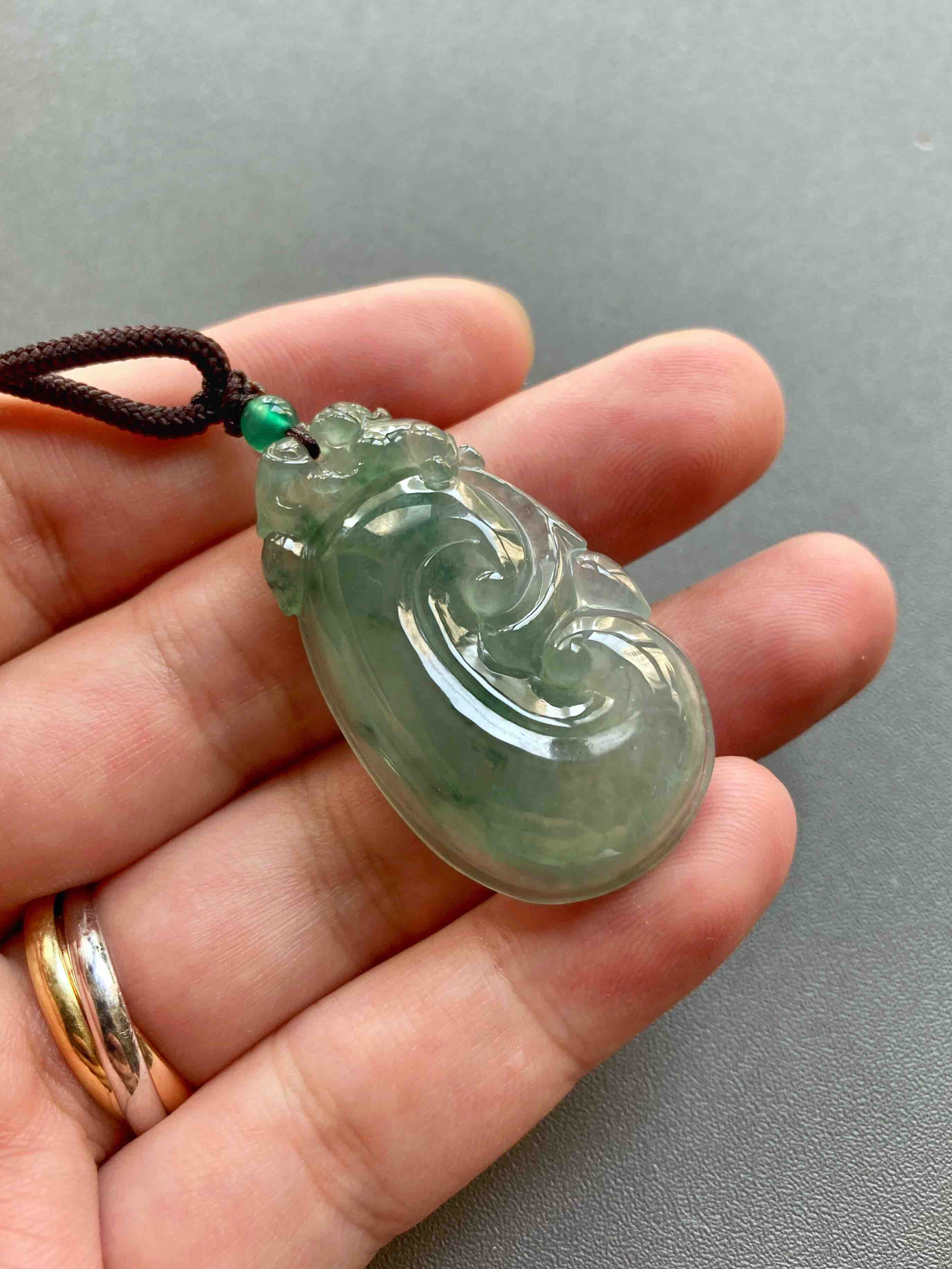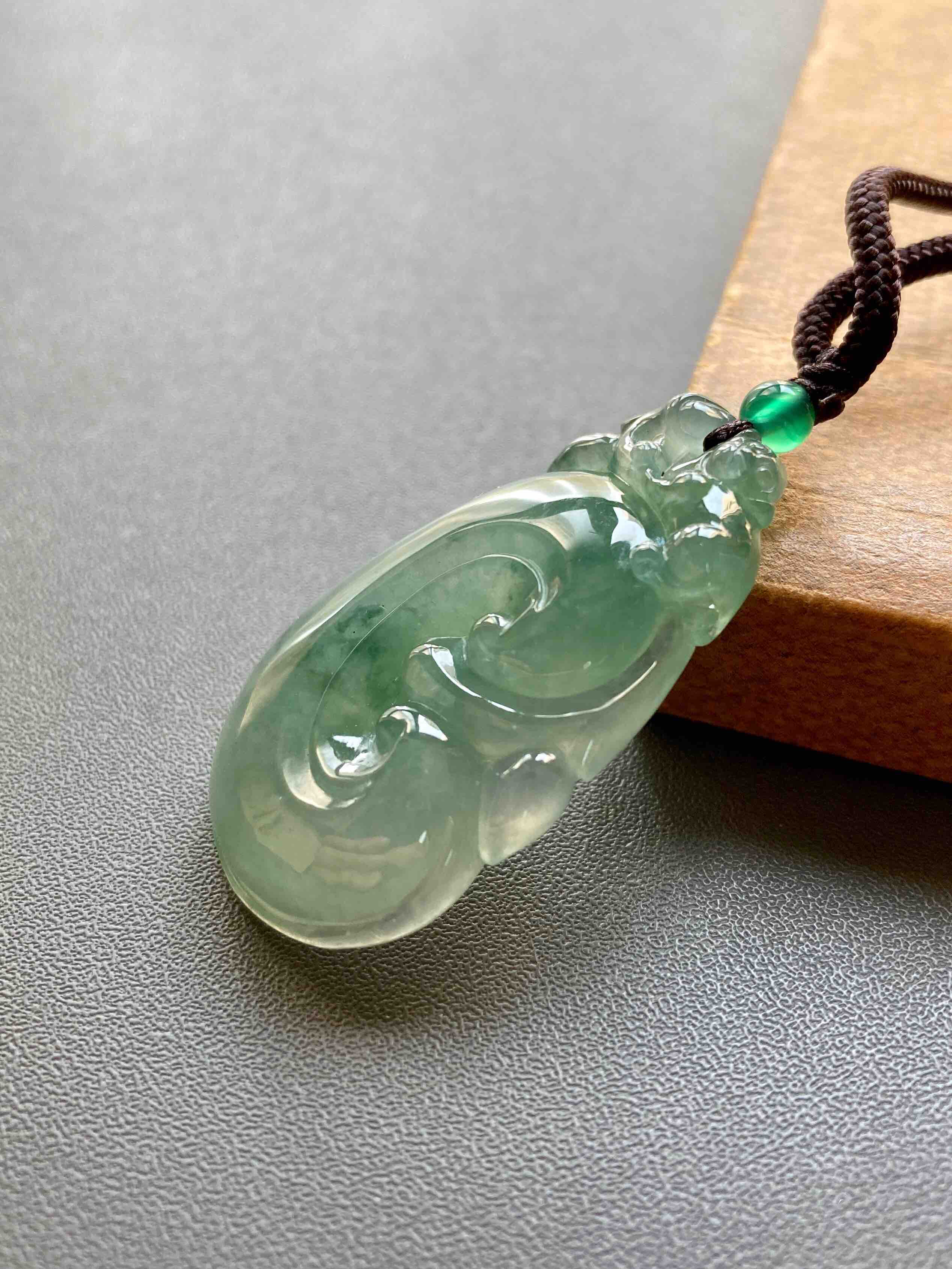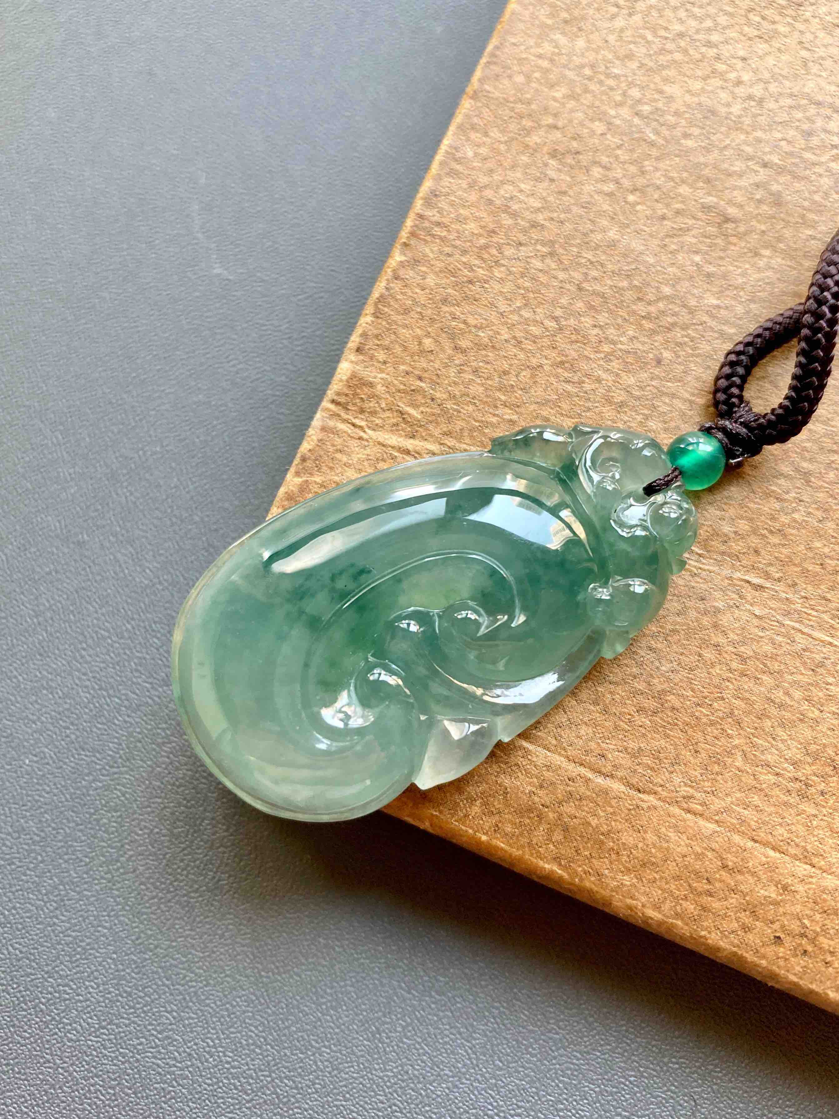 冰种晴水飘花厚庄翡翠大如意,40.1×23.2×7.7mm,放个漏,没有什么比这个更给力了,超大超厚的冰种晴水绿飘花翡翠如意,种水特别冰透,看雕工多漂亮,上面一个小猴,下面如意,寓意灵猴献瑞,福寿安康,只要小四价位,最适合送长辈,大件有福气