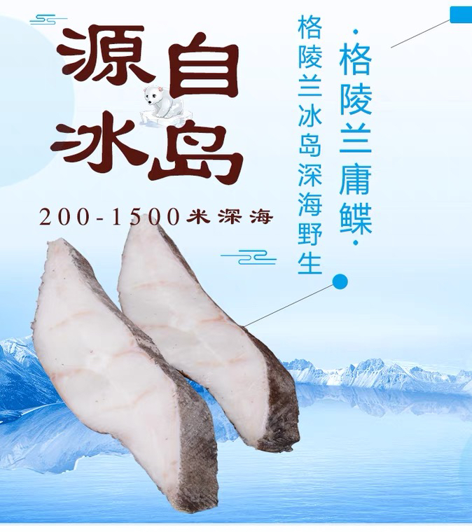 格陵兰大比目鱼深海庸鲽鱼新鲜切片鲽鱼段冷冻蝶鱼片海鲜碟鱼