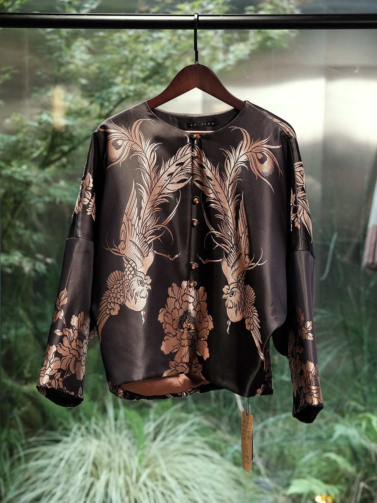盛唐婧 | 时尚新中式老缎蝙蝠袖对襟外套-黑色