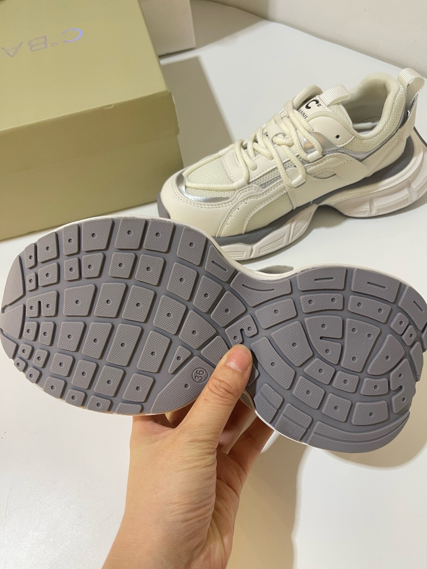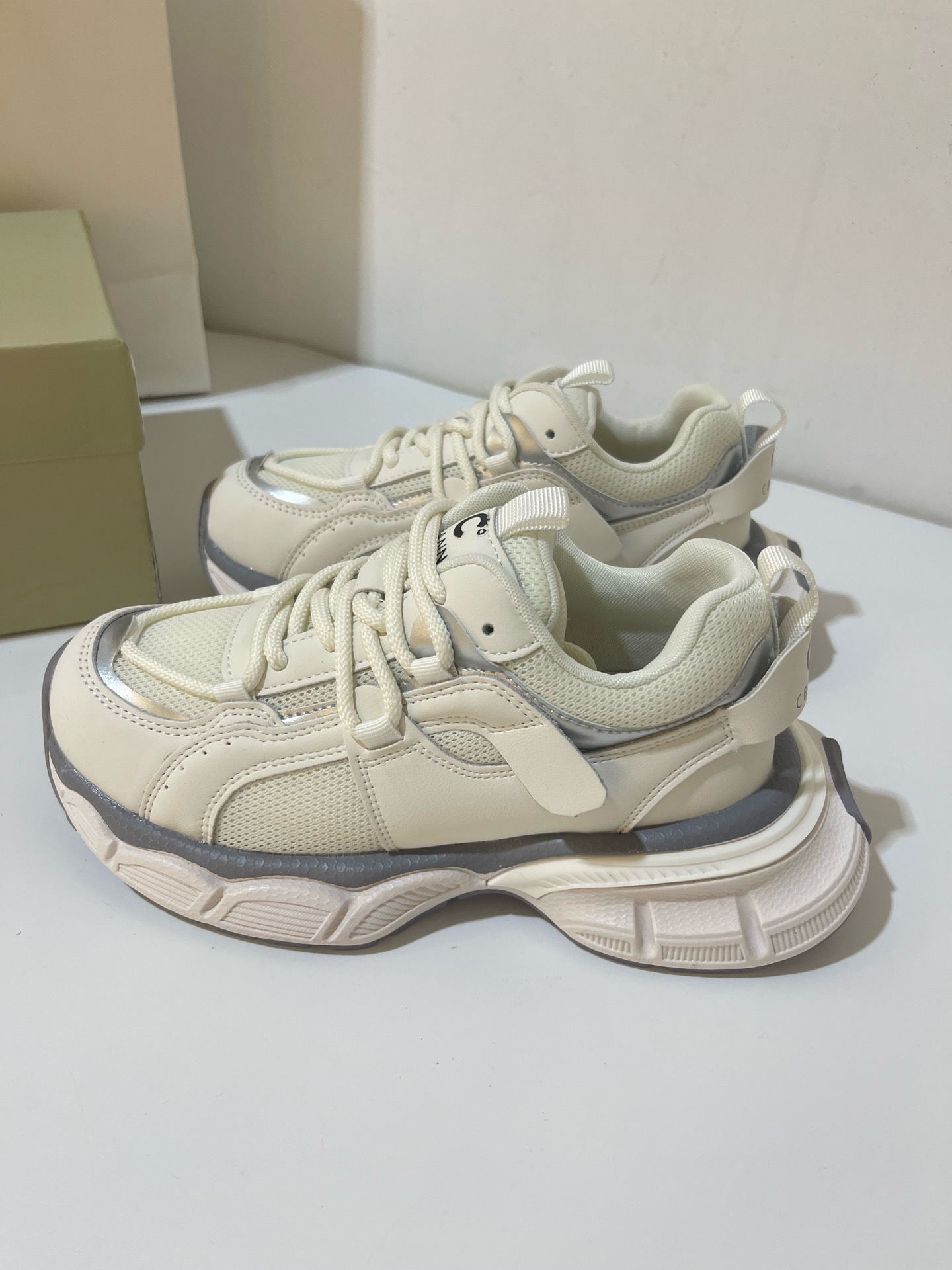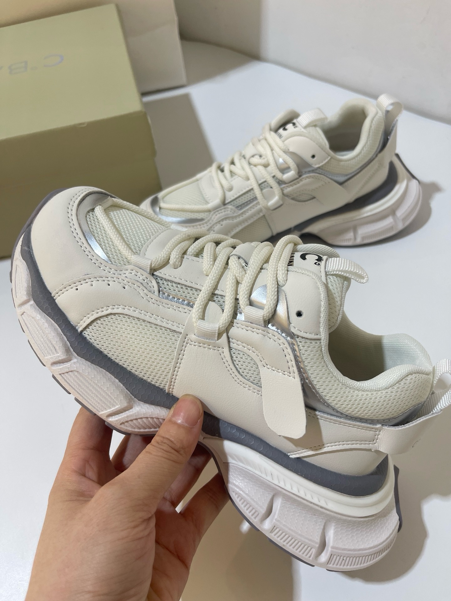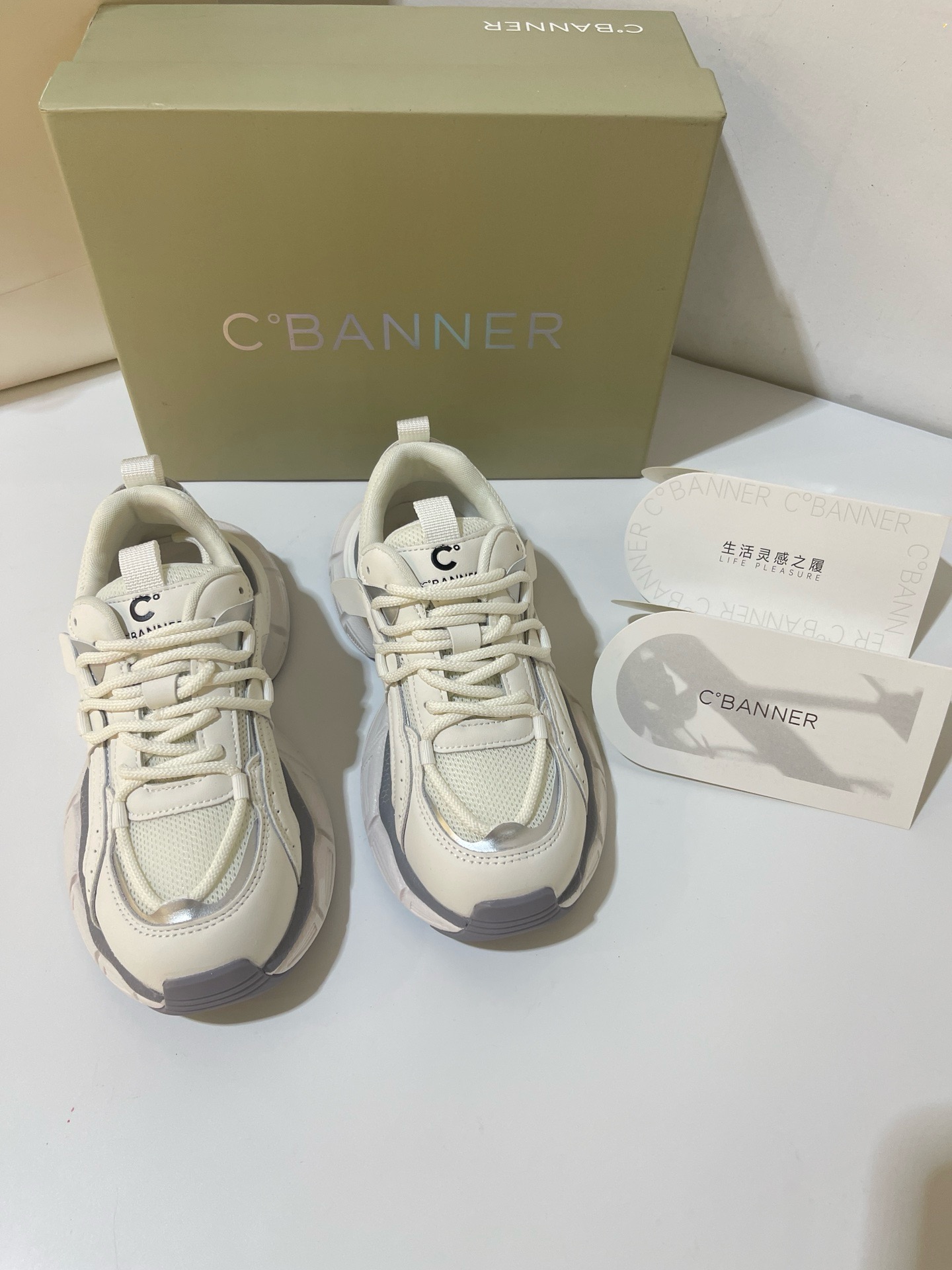 原单C.BANNER/千百度撤柜厚底老爹鞋圆头系带运动鞋