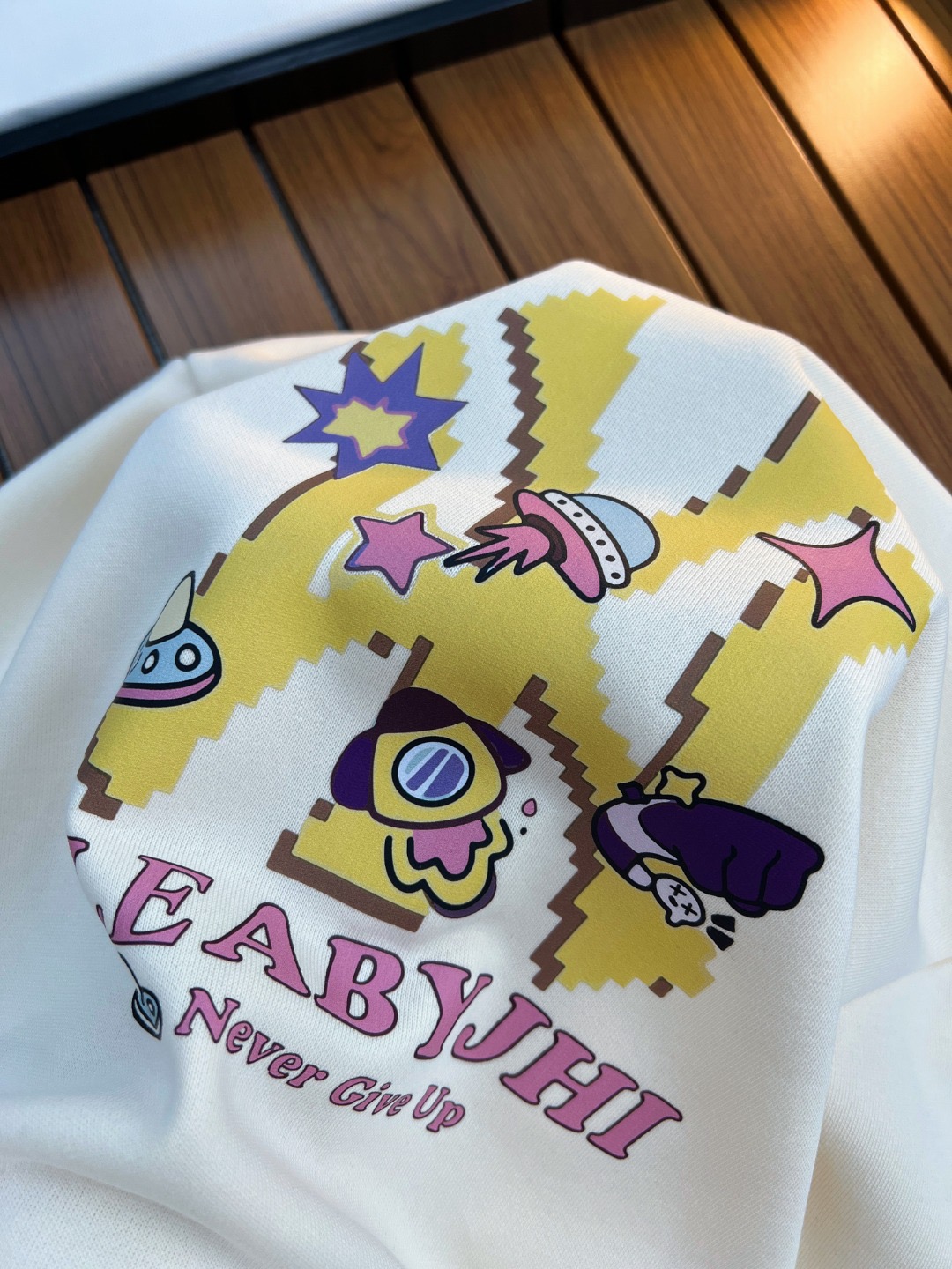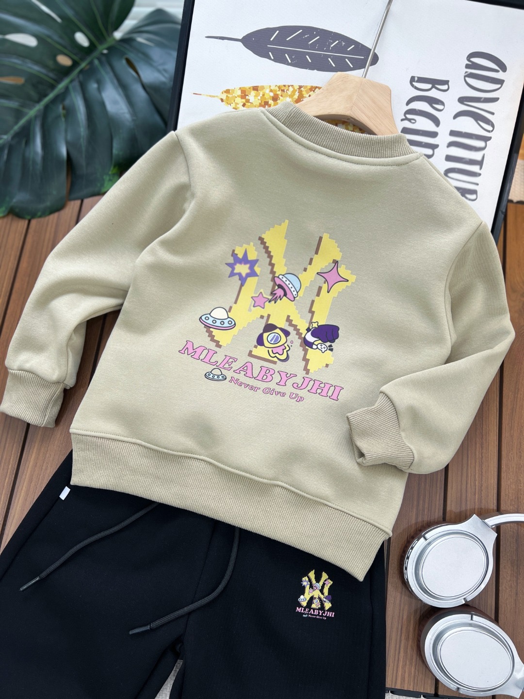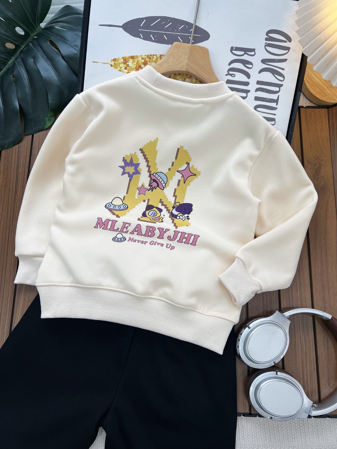宇宙飞船加绒圆领套装 秋冬新款加绒套装来了,炒鸡暖和帅气,潮童妈妈们注意啦,宽松款,新款印花款,上神效果炒鸡棒,采用纯棉材质,不起球不掉色不会有静电哈,宝宝们运动自如,跑跳随意不束缚,版设计宽松舒服,做工也炒鸡好,上身帅呆了,男女宝都能驾驭哈,小模特只拍了男宝宝!