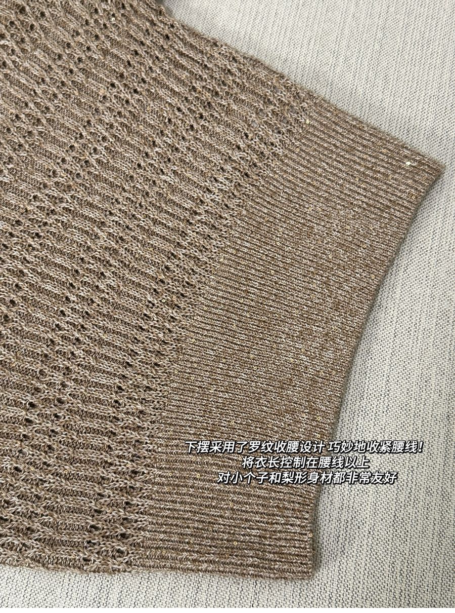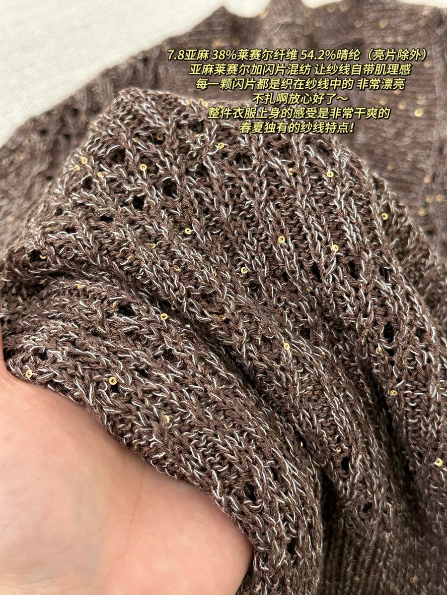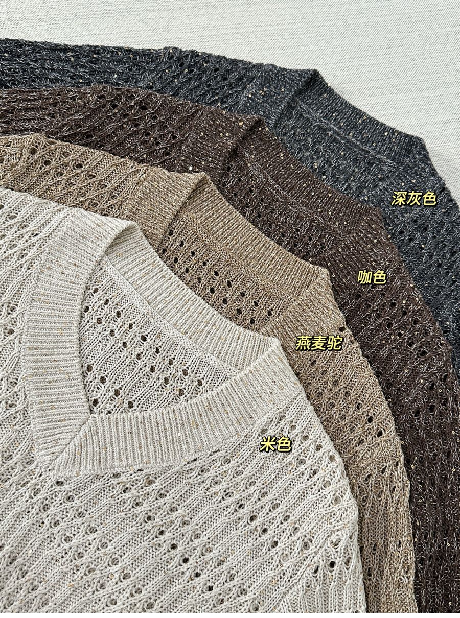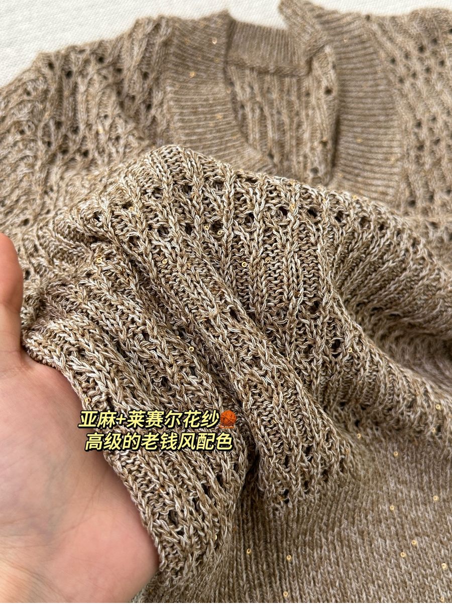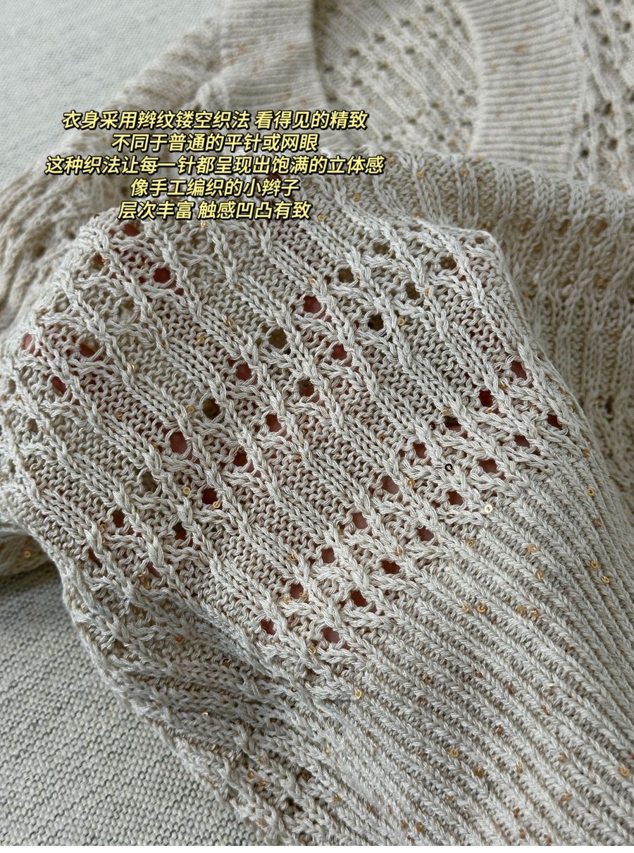 自留款。太好看了~轻奢华高质感穿❗️定制系列!春夏亚麻混纺BC风V领镂空衫年针织罩衫(售后时间:签收3天内,不合适及时申请)