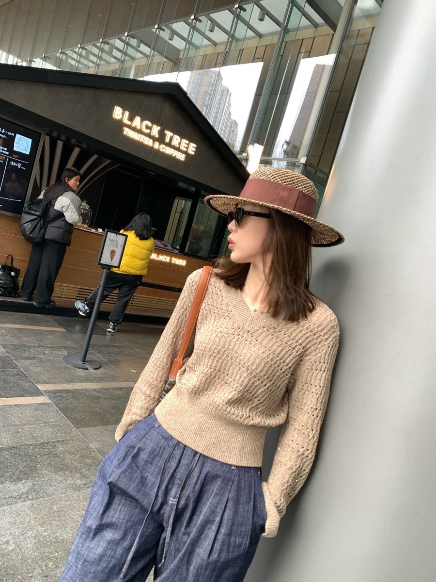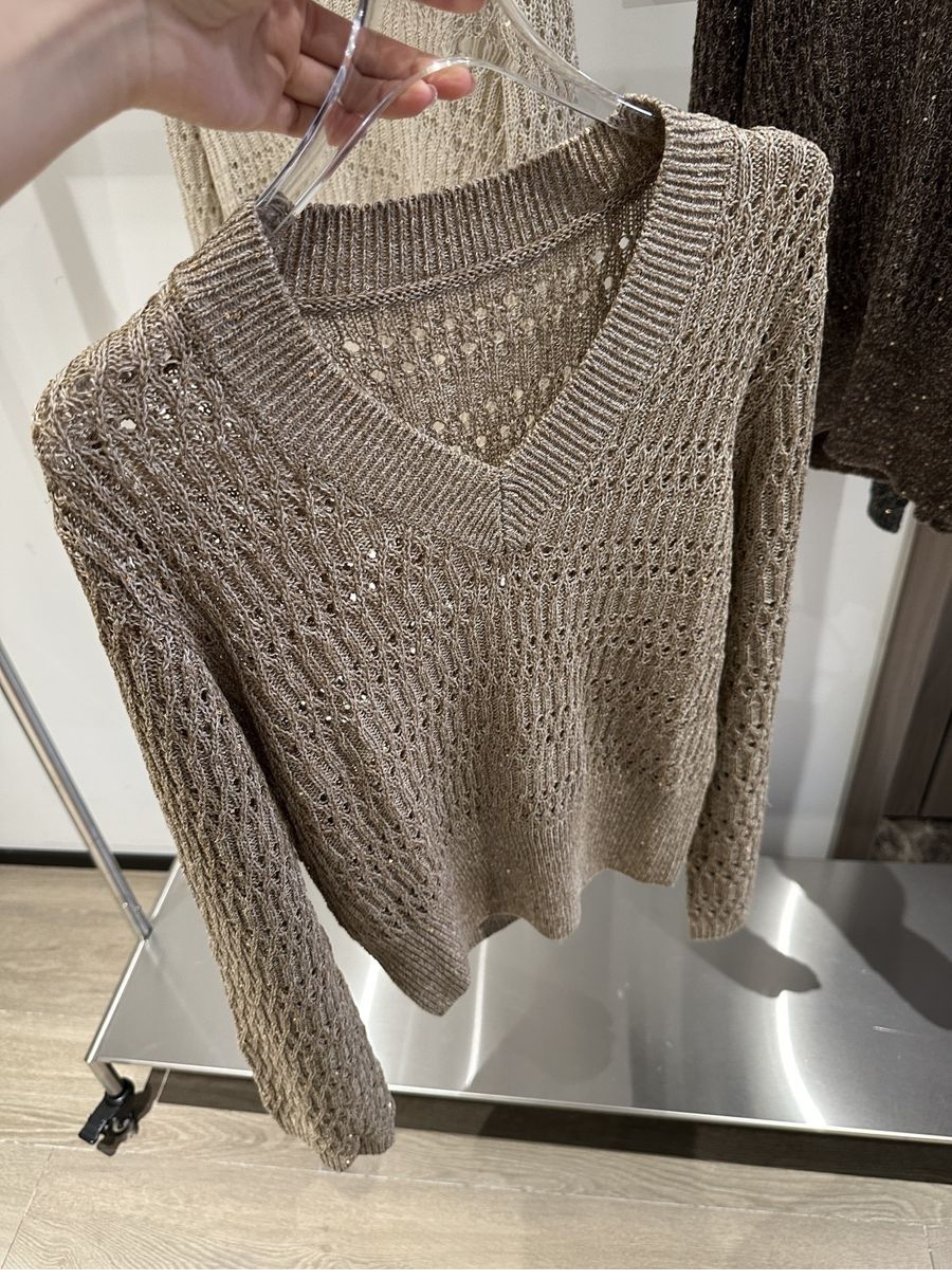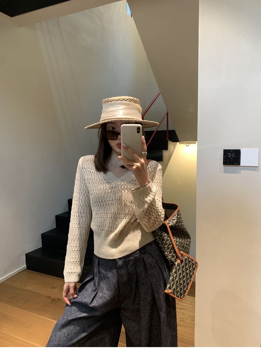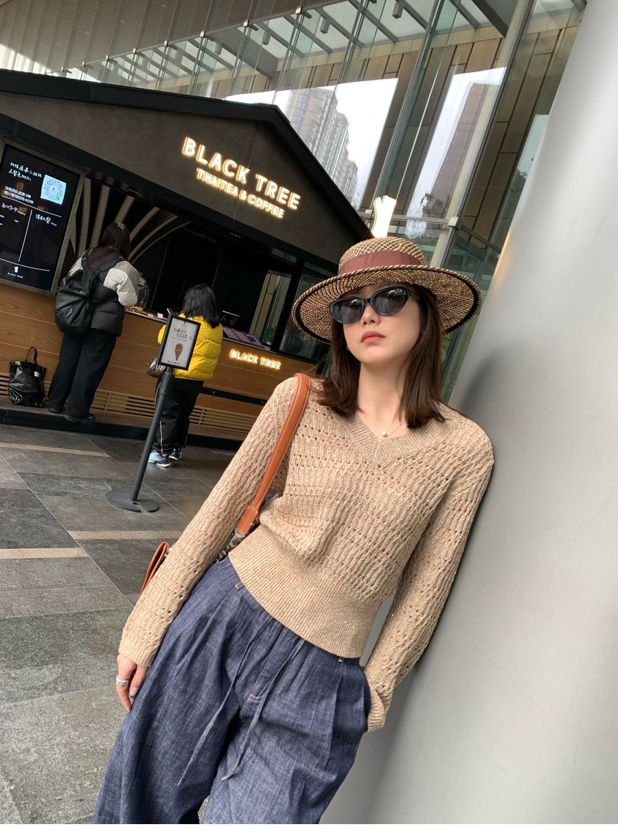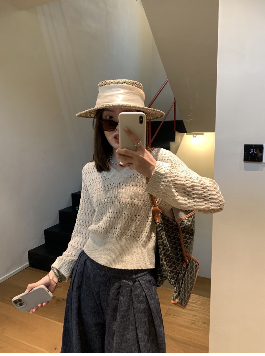 自留款。太好看了~轻奢华高质感穿❗️定制系列!春夏亚麻混纺BC风V领镂空衫年针织罩衫(售后时间:签收3天内,不合适及时申请)