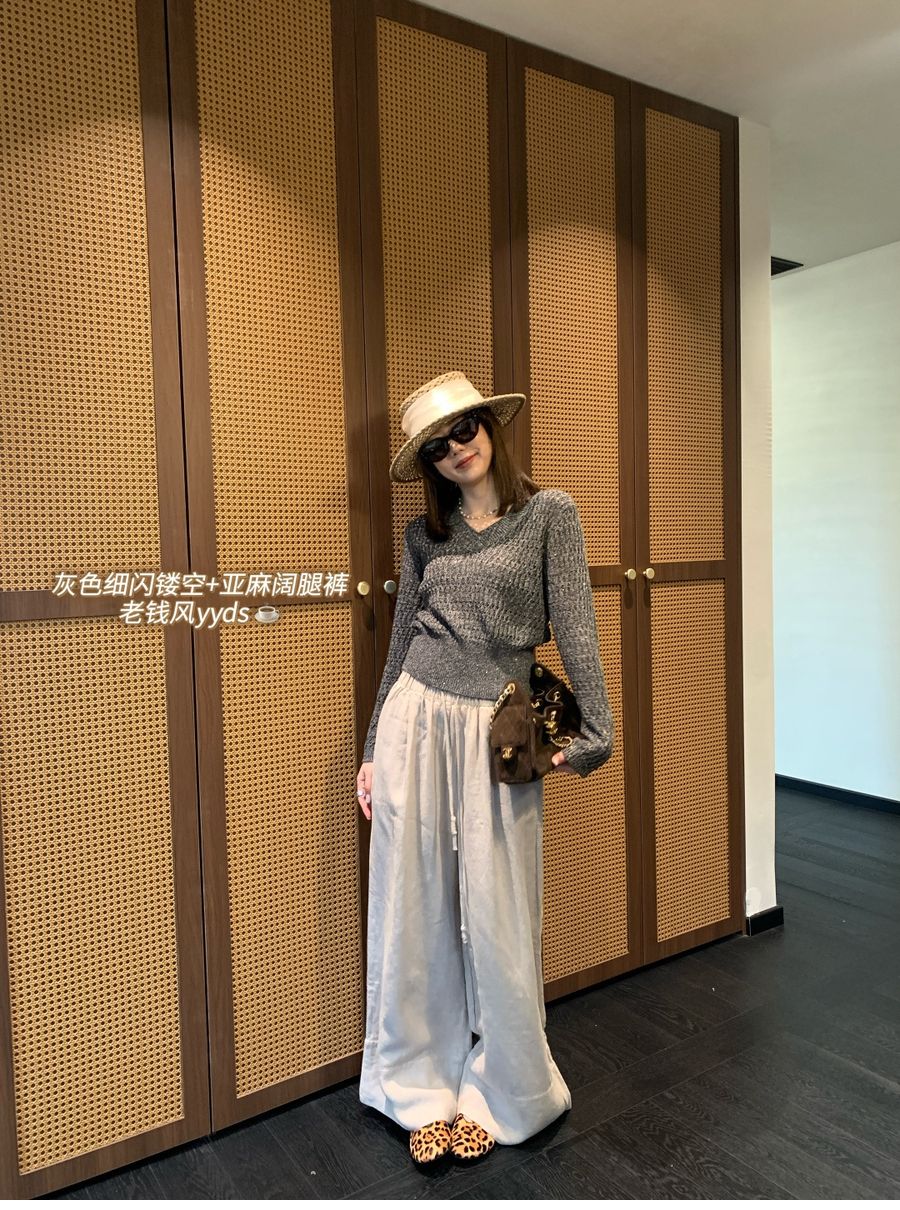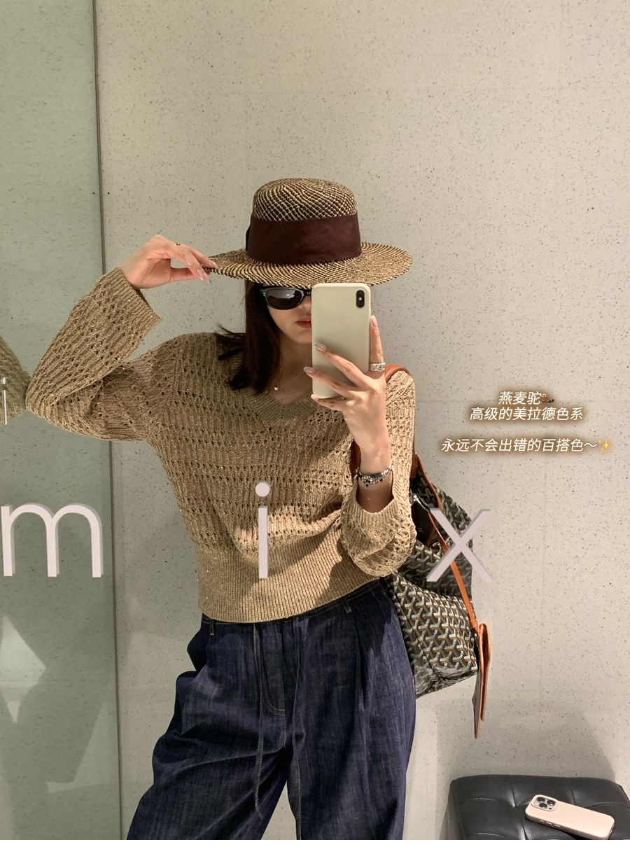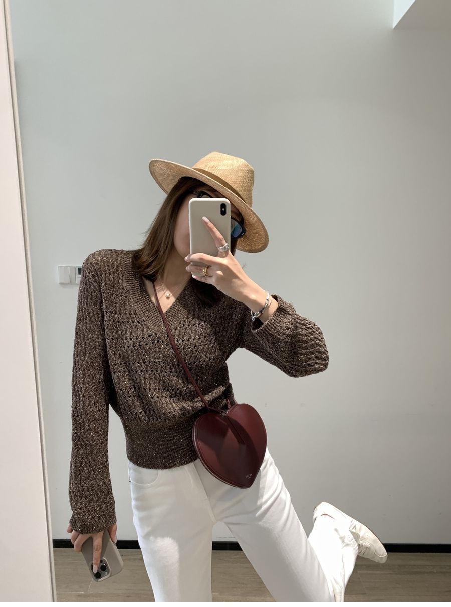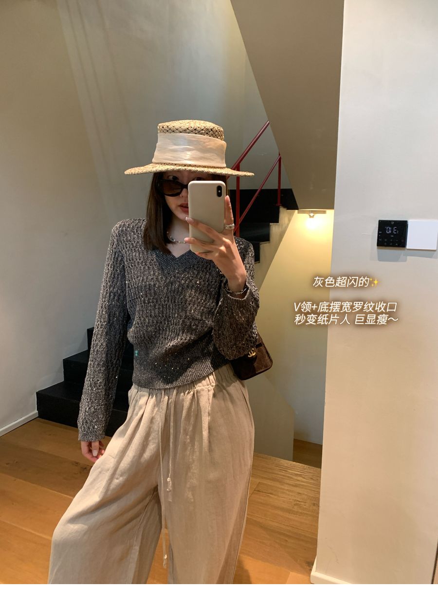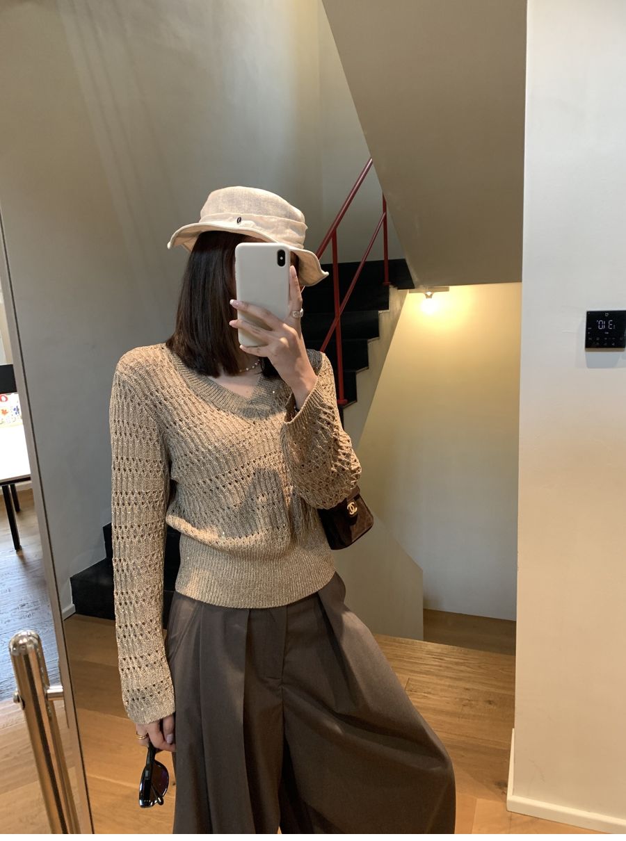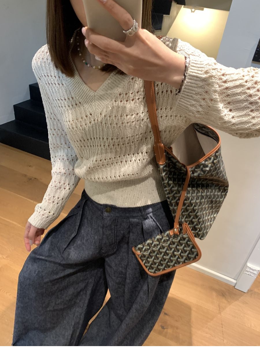 自留款。太好看了~轻奢华高质感穿❗️定制系列!春夏亚麻混纺BC风V领镂空衫年针织罩衫(售后时间:签收3天内,不合适及时申请)