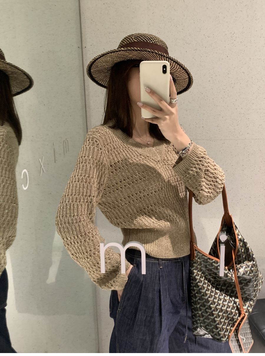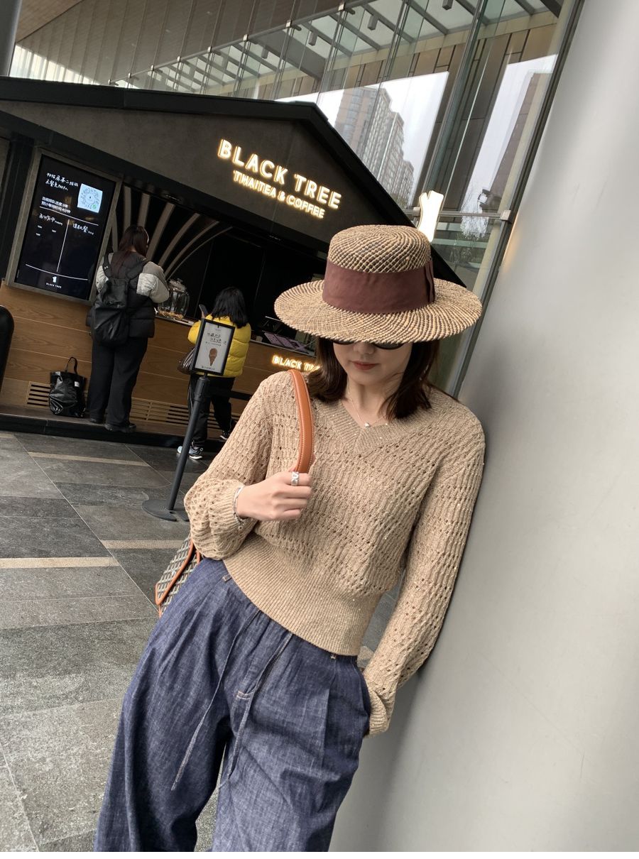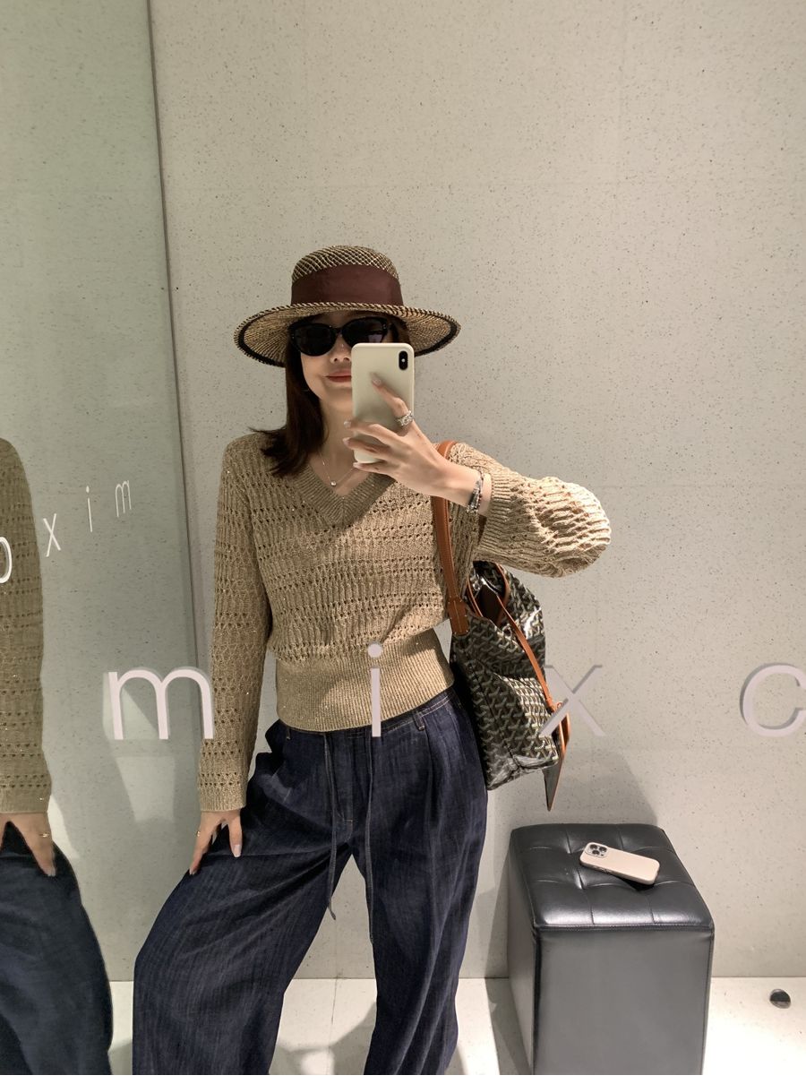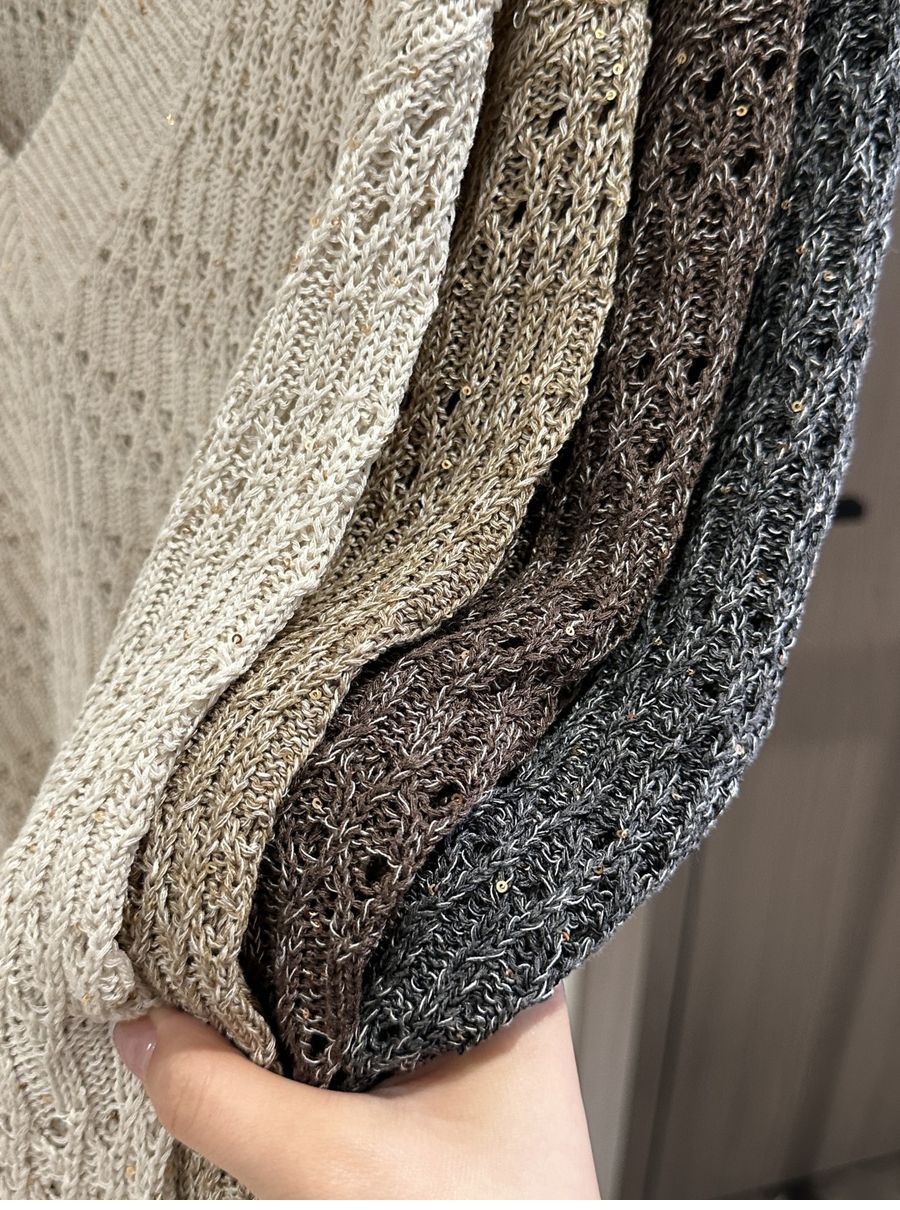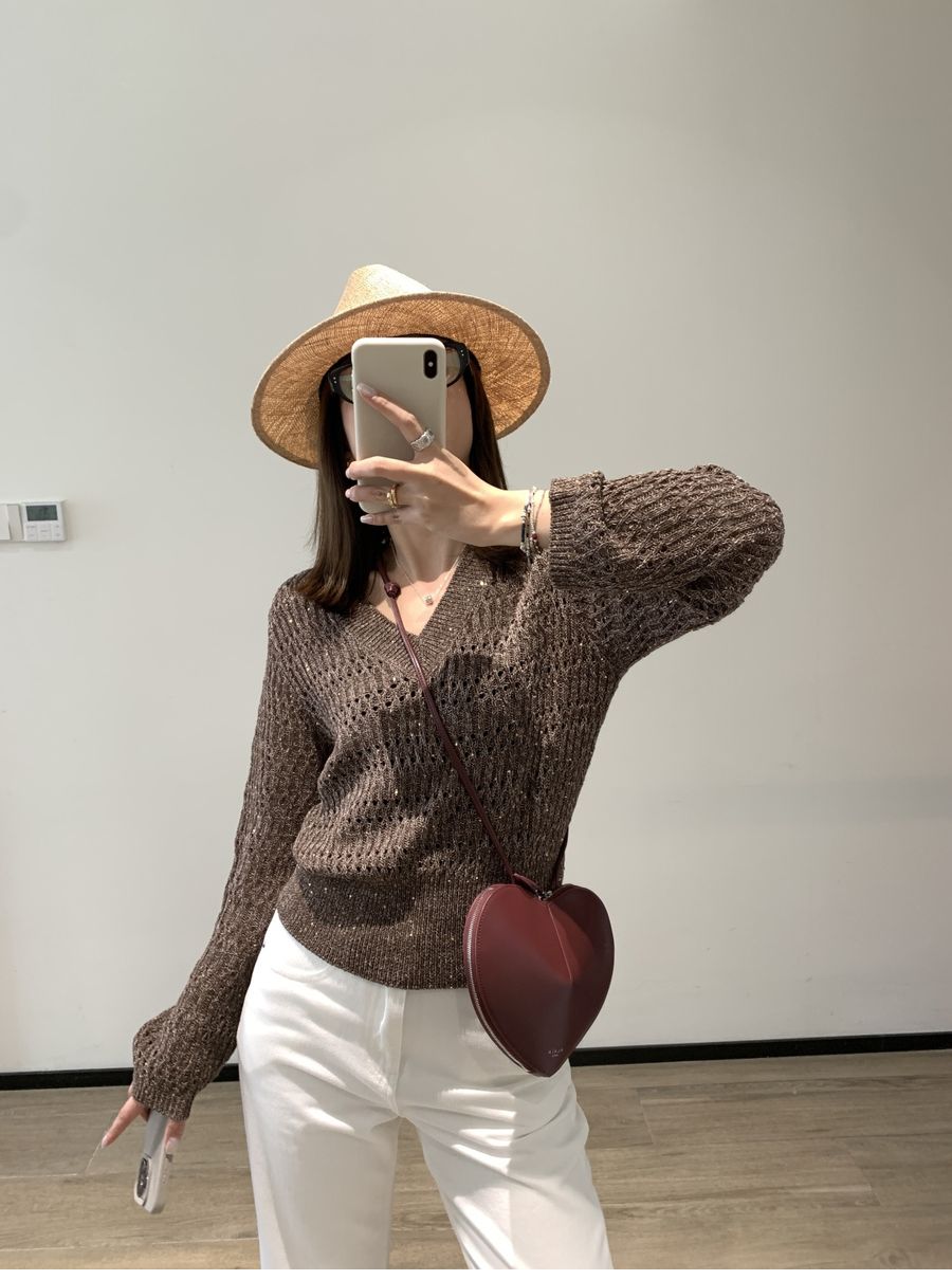 自留款。太好看了~轻奢华高质感穿❗️定制系列!春夏亚麻混纺BC风V领镂空衫年针织罩衫(售后时间:签收3天内,不合适及时申请)