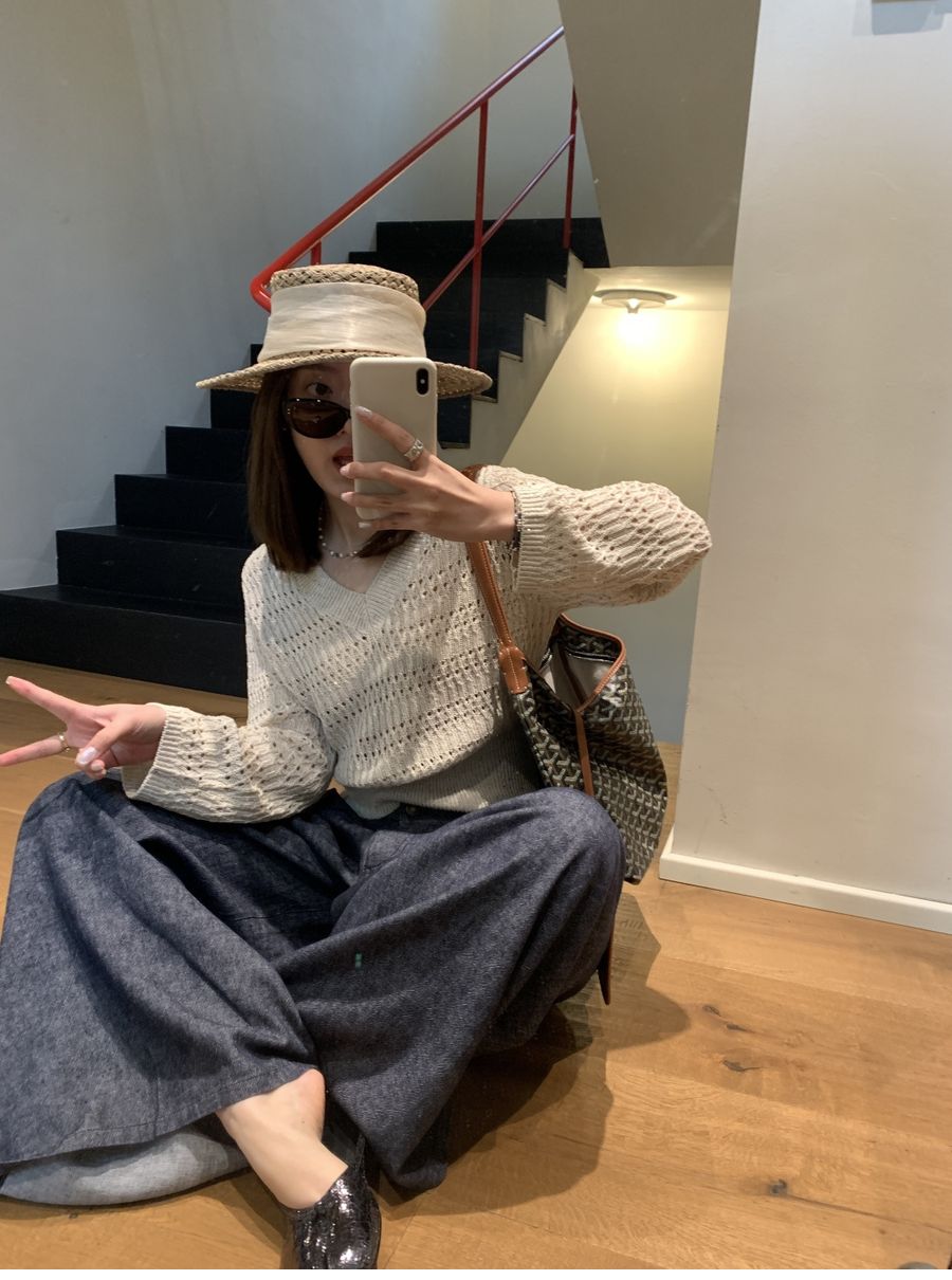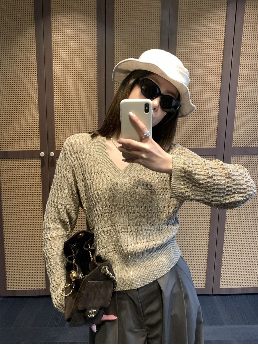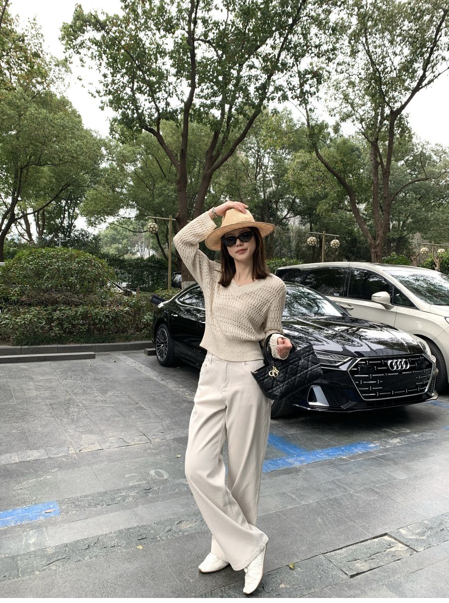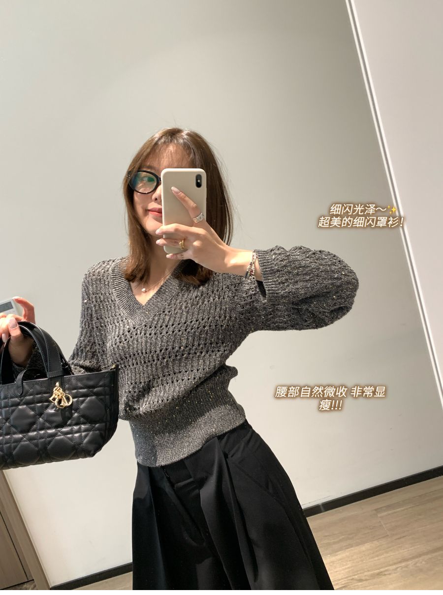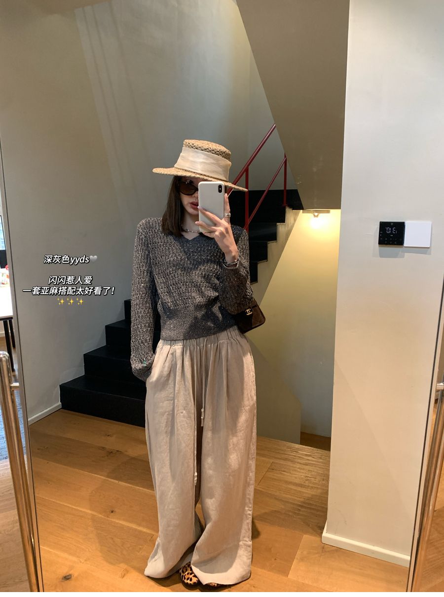 自留款。太好看了~轻奢华高质感穿❗️定制系列!春夏亚麻混纺BC风V领镂空衫年针织罩衫(售后时间:签收3天内,不合适及时申请)