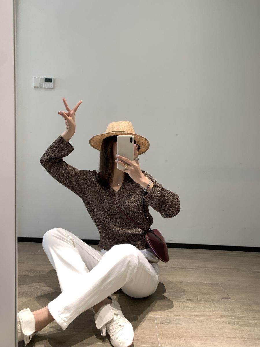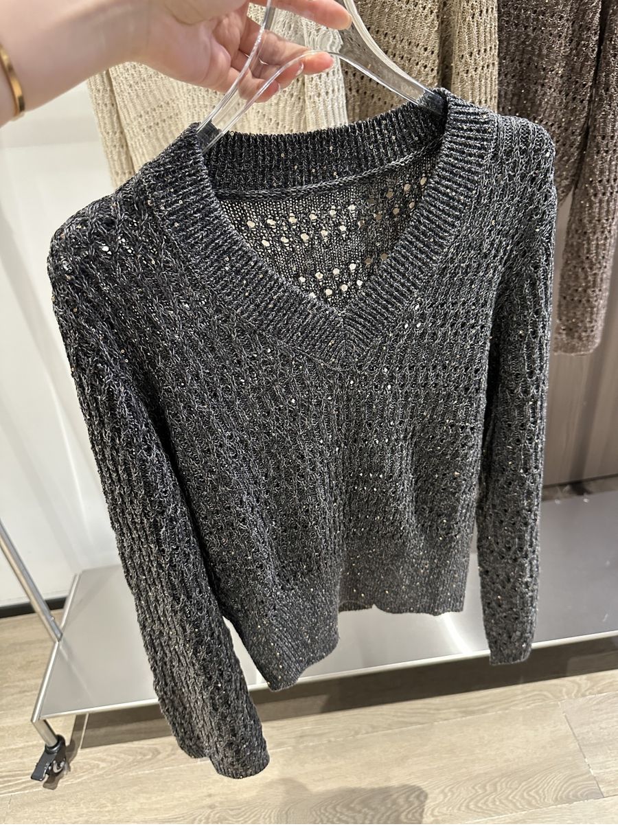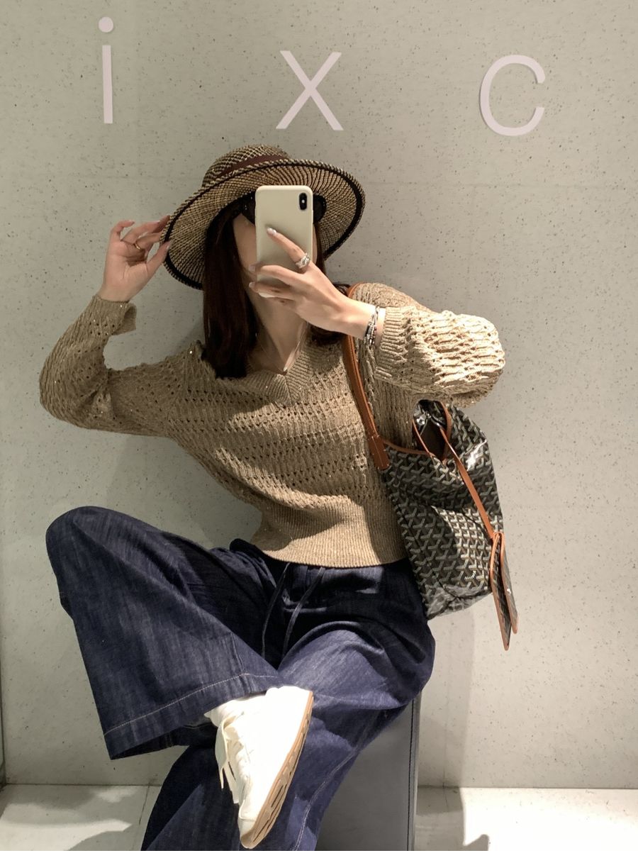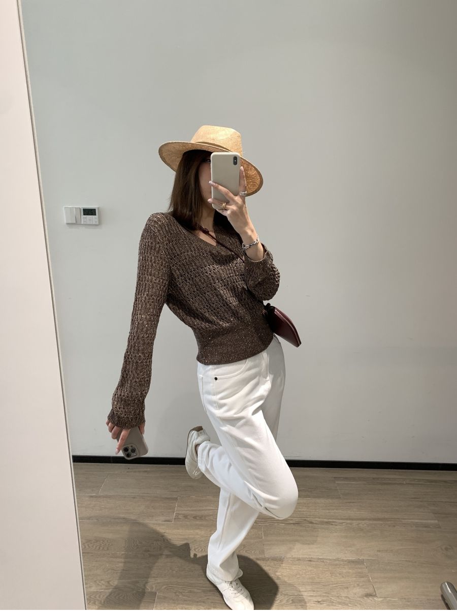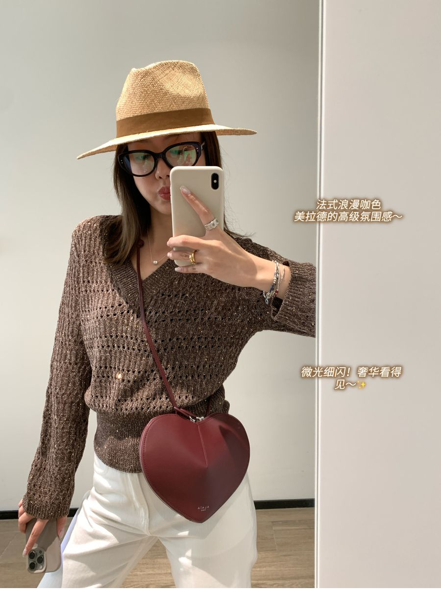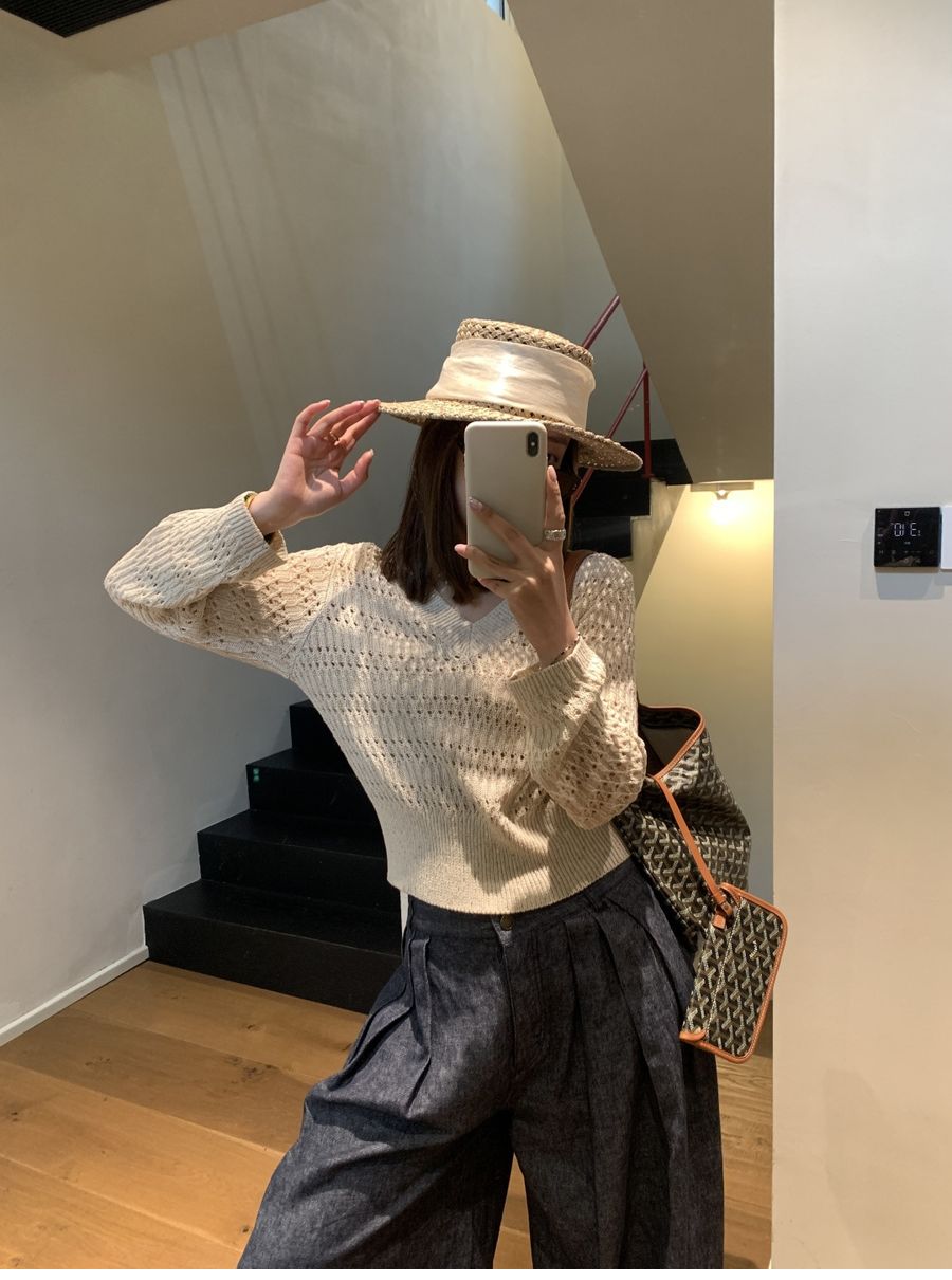 自留款。太好看了~轻奢华高质感穿❗️定制系列!春夏亚麻混纺BC风V领镂空衫年针织罩衫(售后时间:签收3天内,不合适及时申请)
