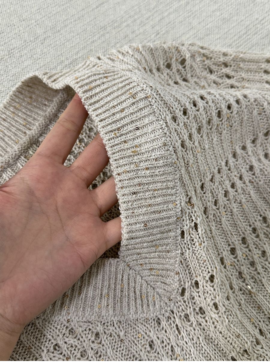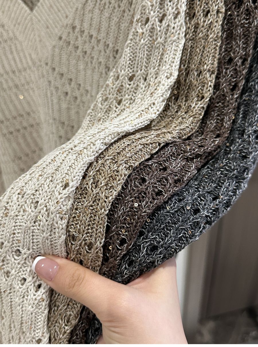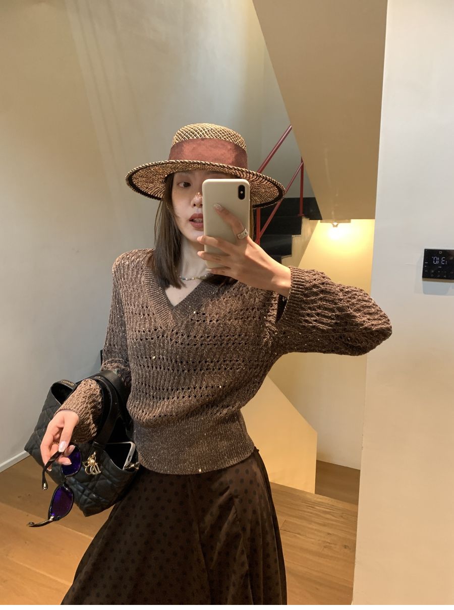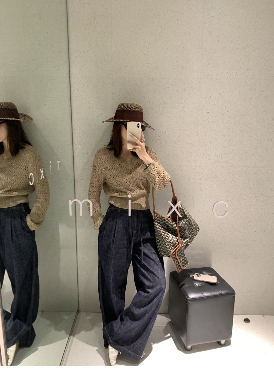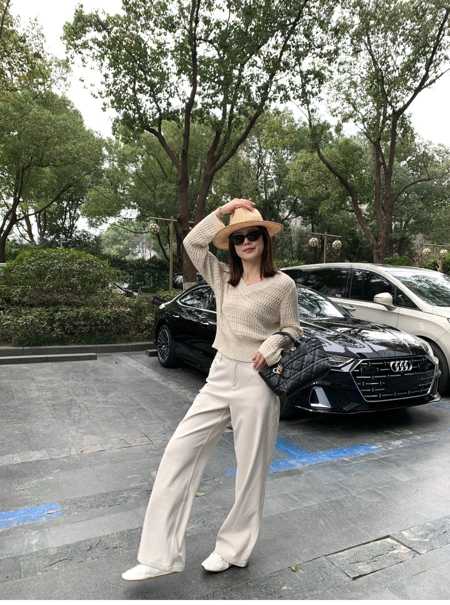 自留款。太好看了~轻奢华高质感穿❗️定制系列!春夏亚麻混纺BC风V领镂空衫年针织罩衫(售后时间:签收3天内,不合适及时申请)