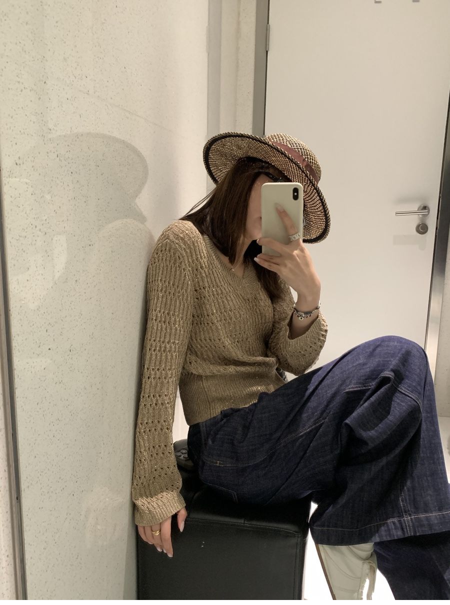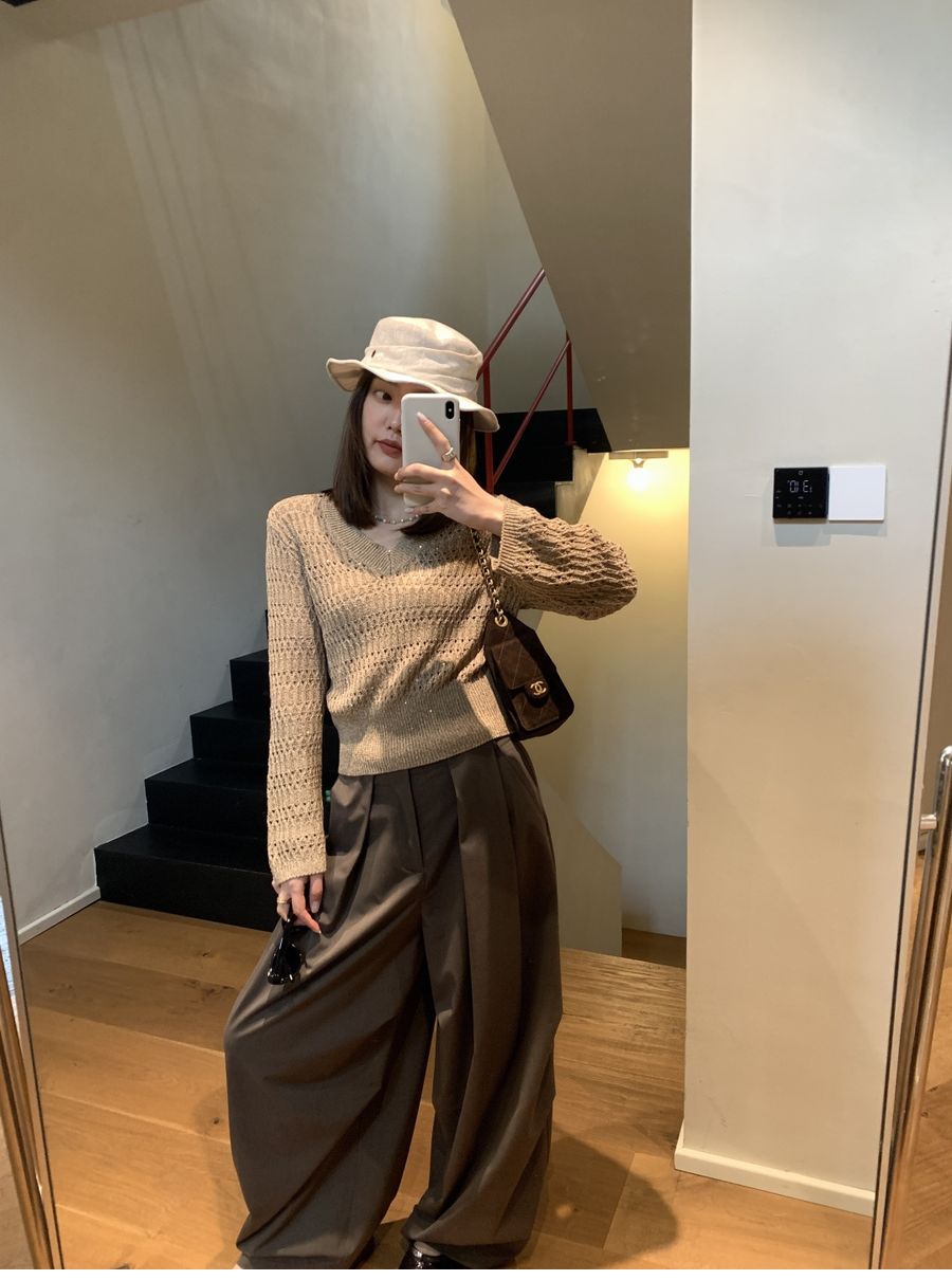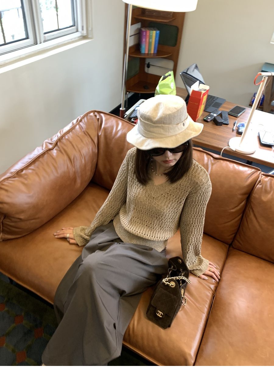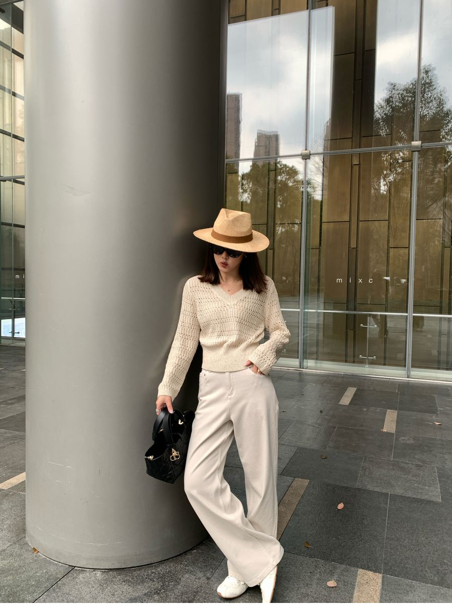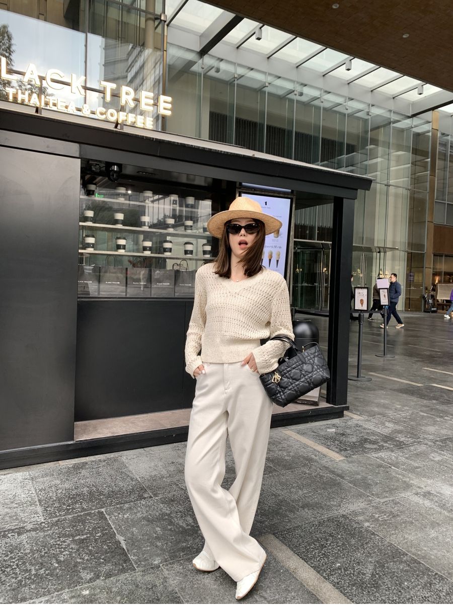 自留款。太好看了~轻奢华高质感穿❗️定制系列!春夏亚麻混纺BC风V领镂空衫年针织罩衫(售后时间:签收3天内,不合适及时申请)