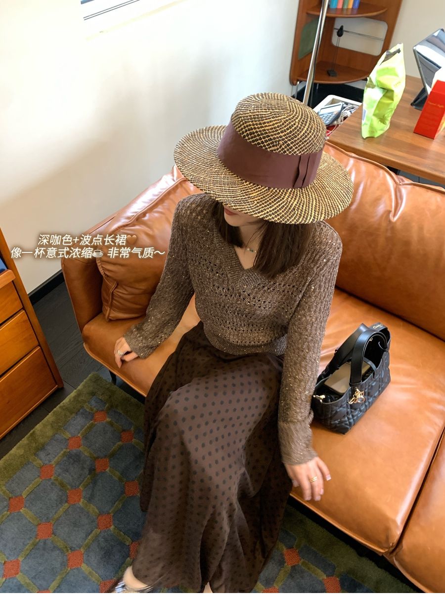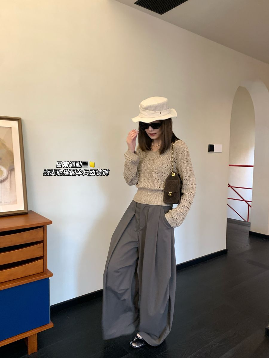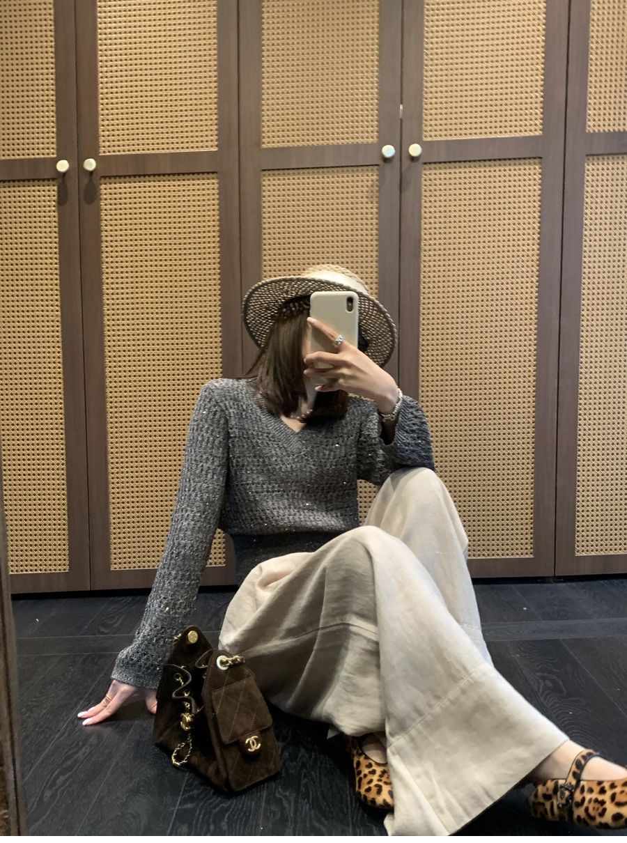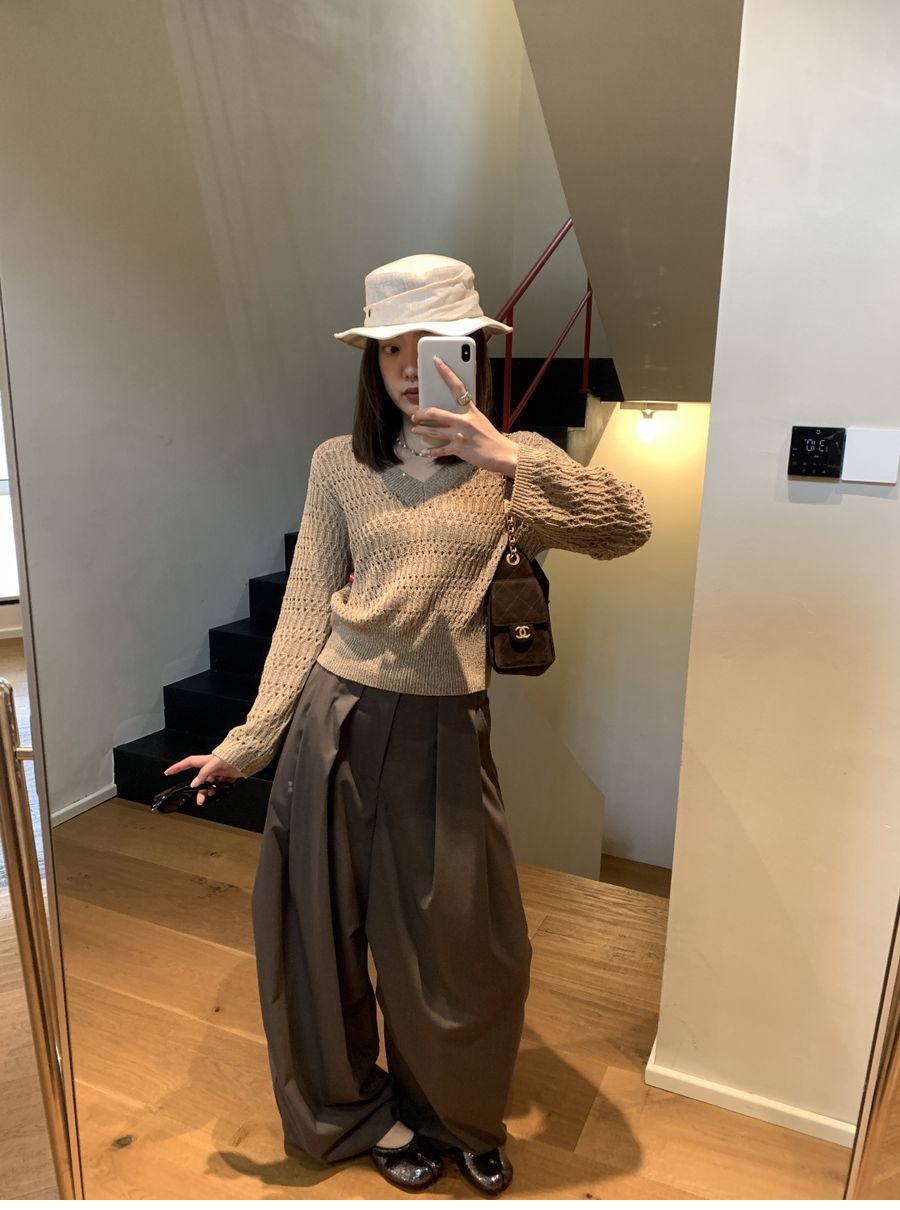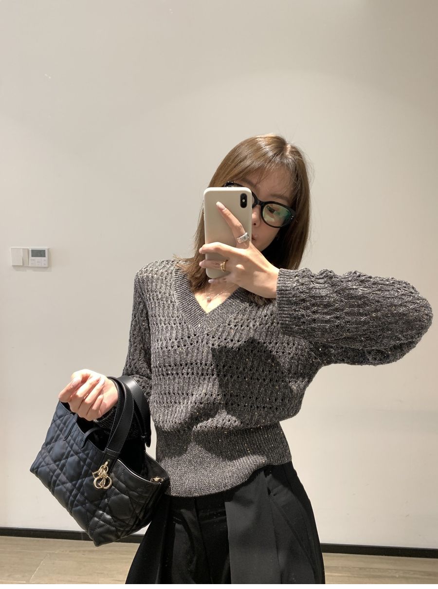 自留款。太好看了~轻奢华高质感穿❗️定制系列!春夏亚麻混纺BC风V领镂空衫年针织罩衫(售后时间:签收3天内,不合适及时申请)