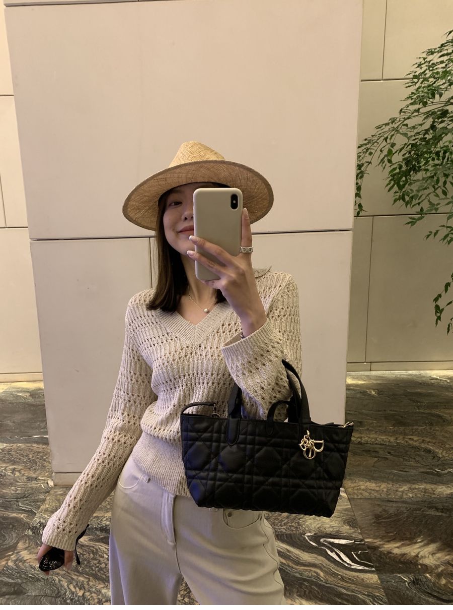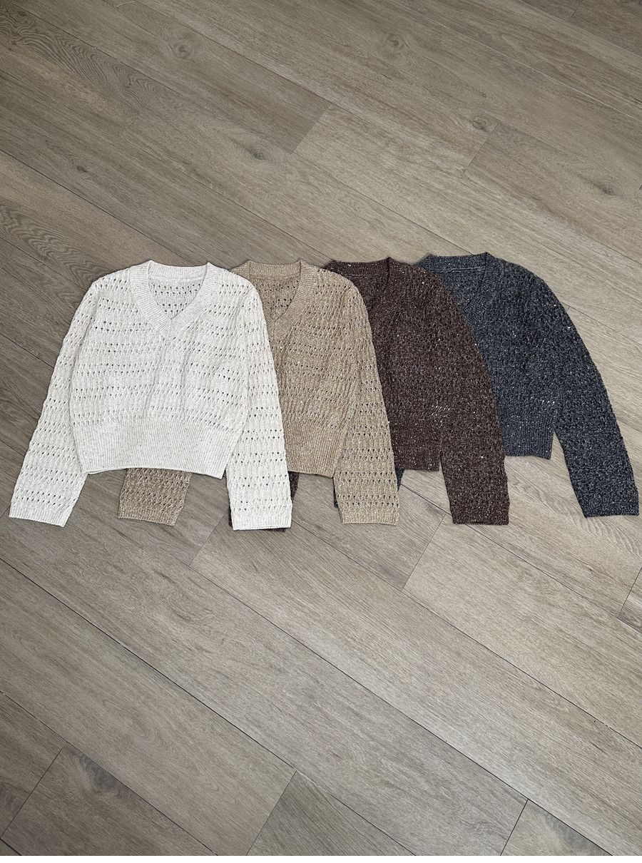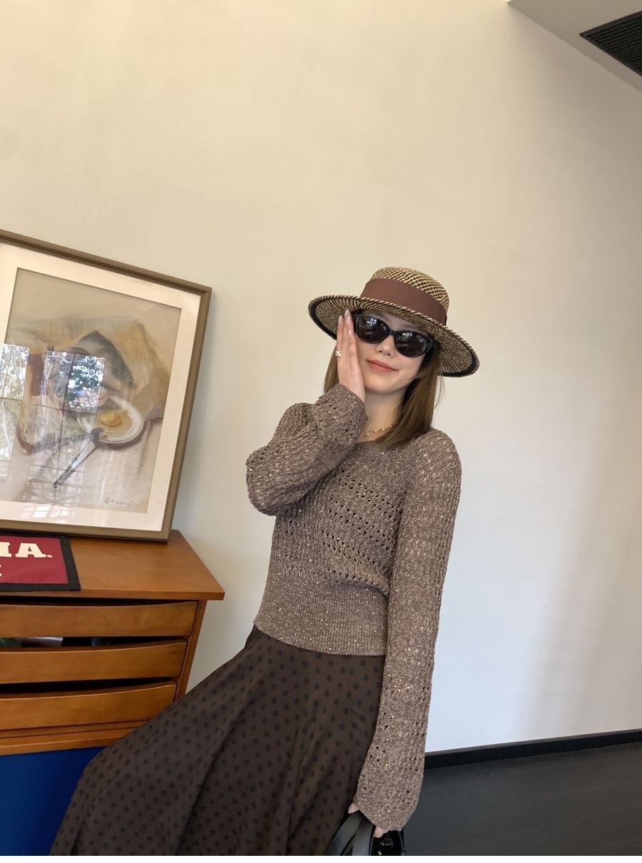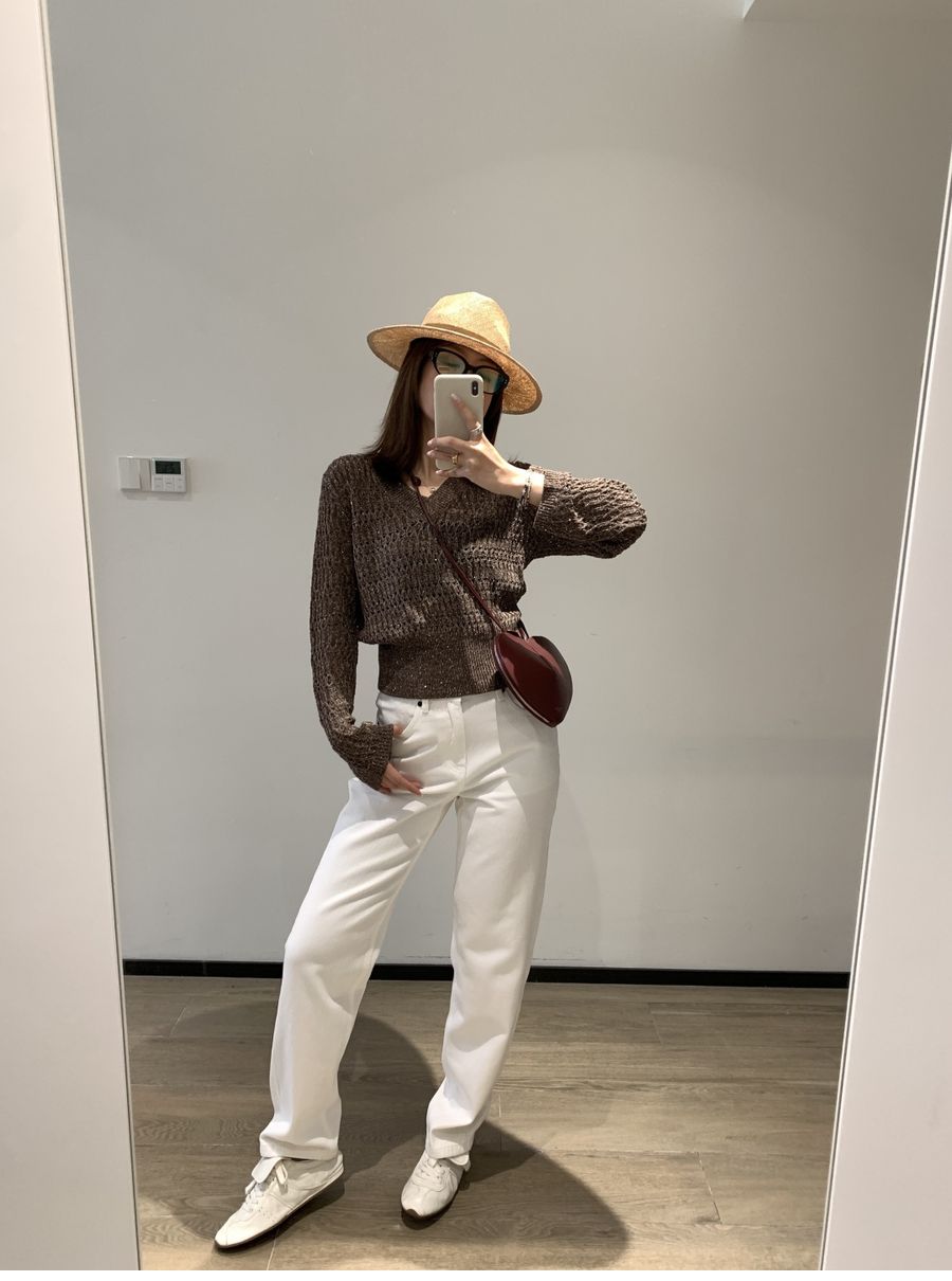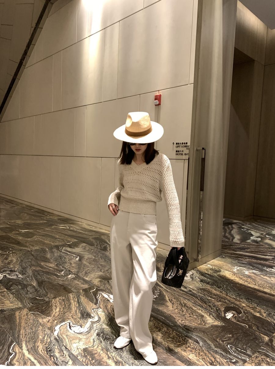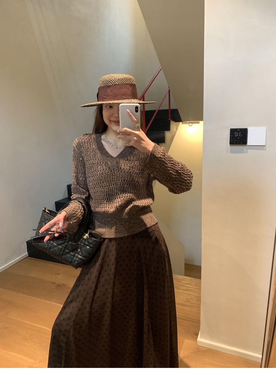 自留款。太好看了~轻奢华高质感穿❗️定制系列!春夏亚麻混纺BC风V领镂空衫年针织罩衫(售后时间:签收3天内,不合适及时申请)