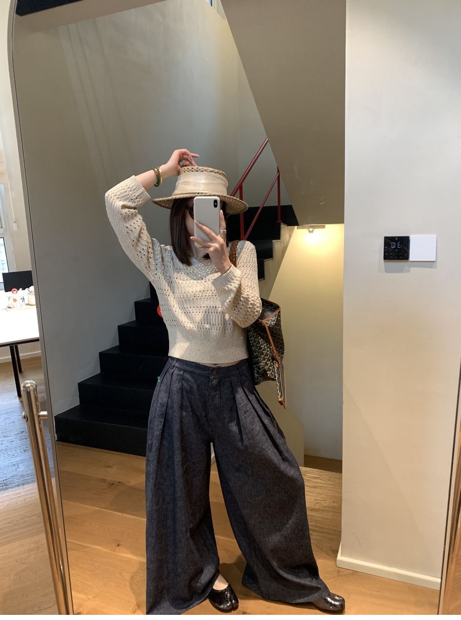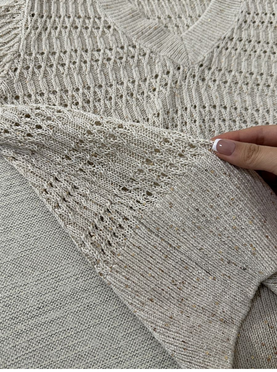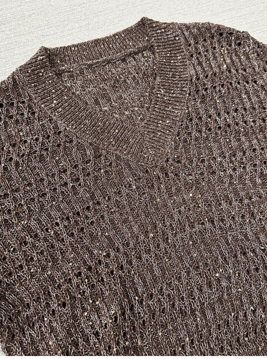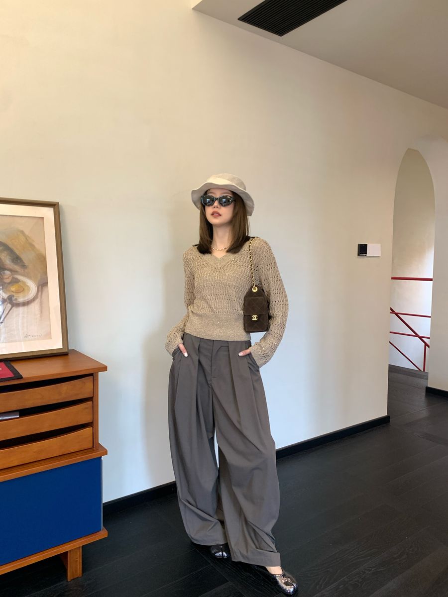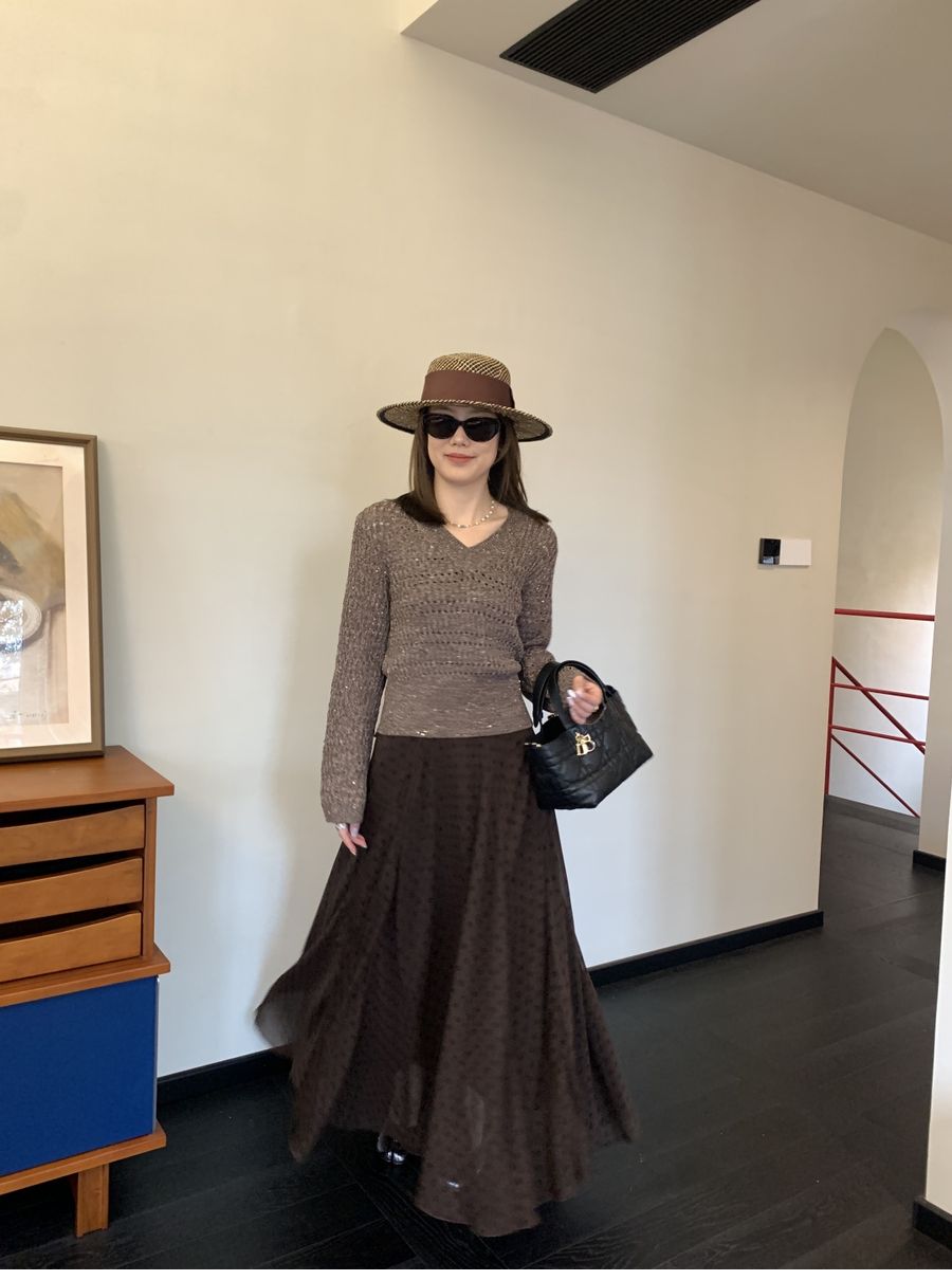 自留款。太好看了~轻奢华高质感穿❗️定制系列!春夏亚麻混纺BC风V领镂空衫年针织罩衫(售后时间:签收3天内,不合适及时申请)