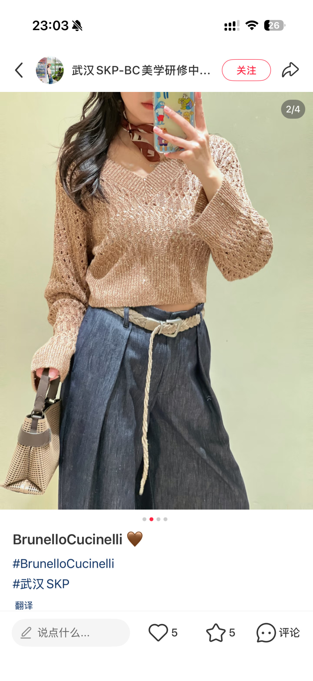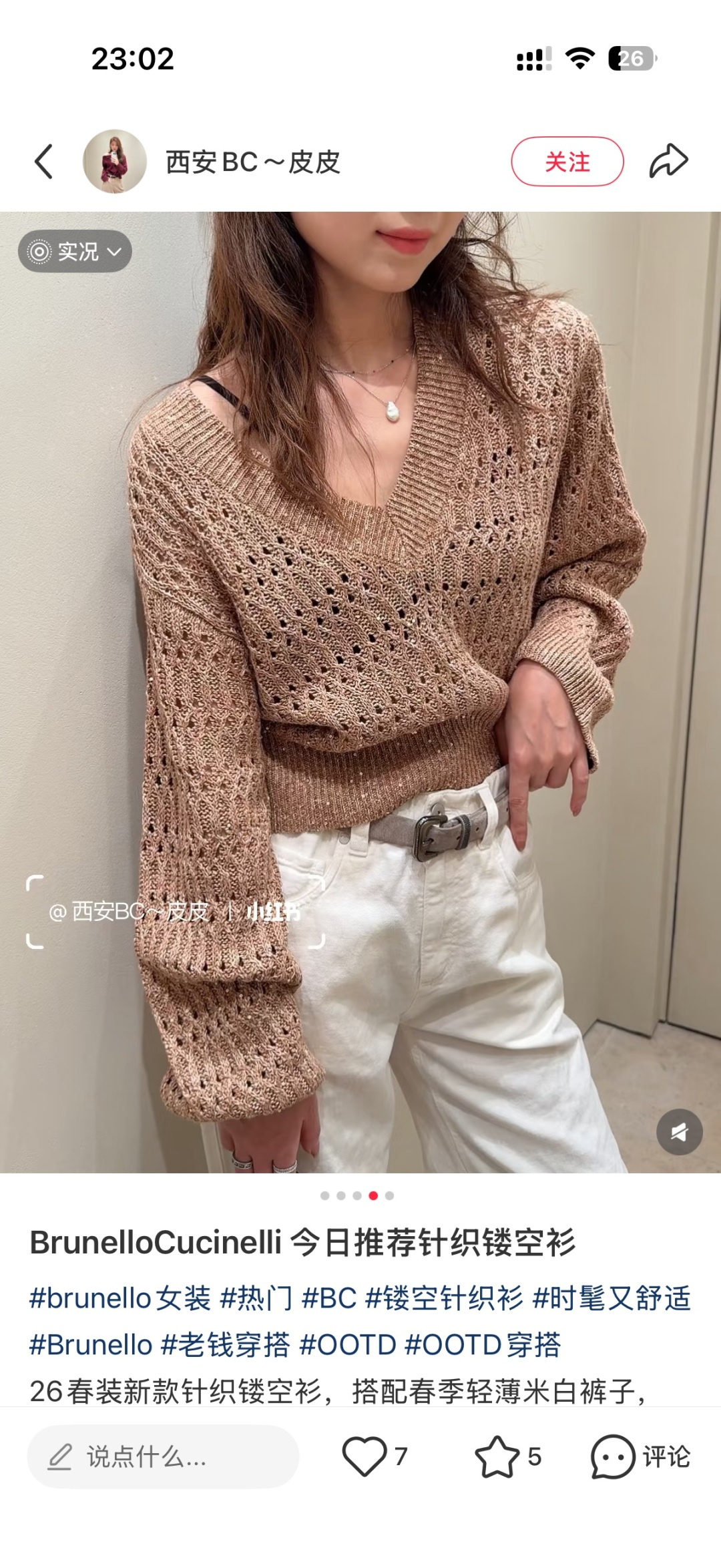 这件在造型上选用了BC春夏最新万元V领闪片镂空罩衫款式 在面料上我们选用亚麻+莱赛尔纤维!