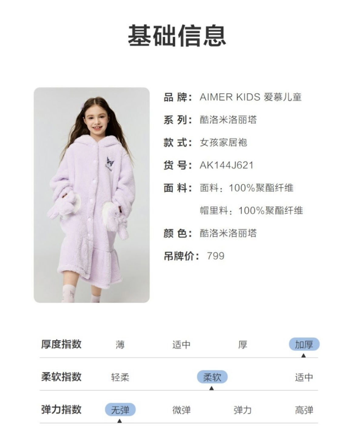 【春上新】8楼爱慕儿童Aimer Kids女孩酷洛米洛丽塔家居袍AK144J621,吊牌价799元