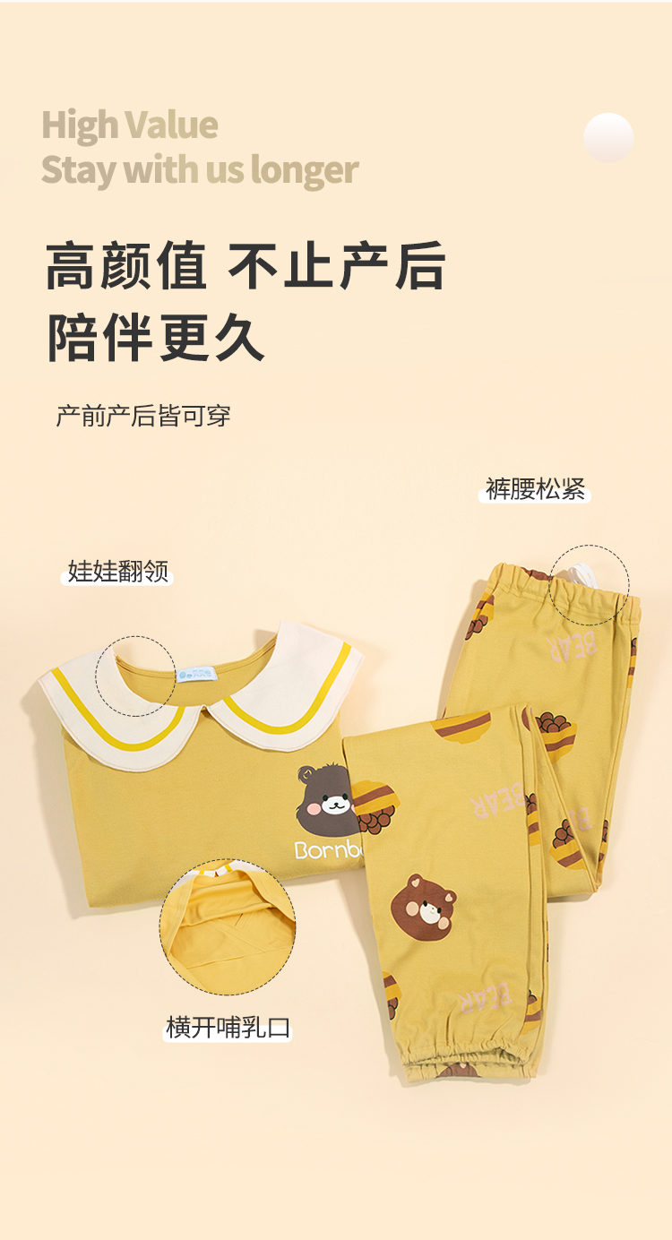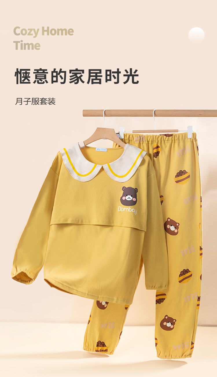 贝贝怡月子服春秋季纯棉产后孕妇睡衣哺乳两件套喂奶产妇家居服223Y2178