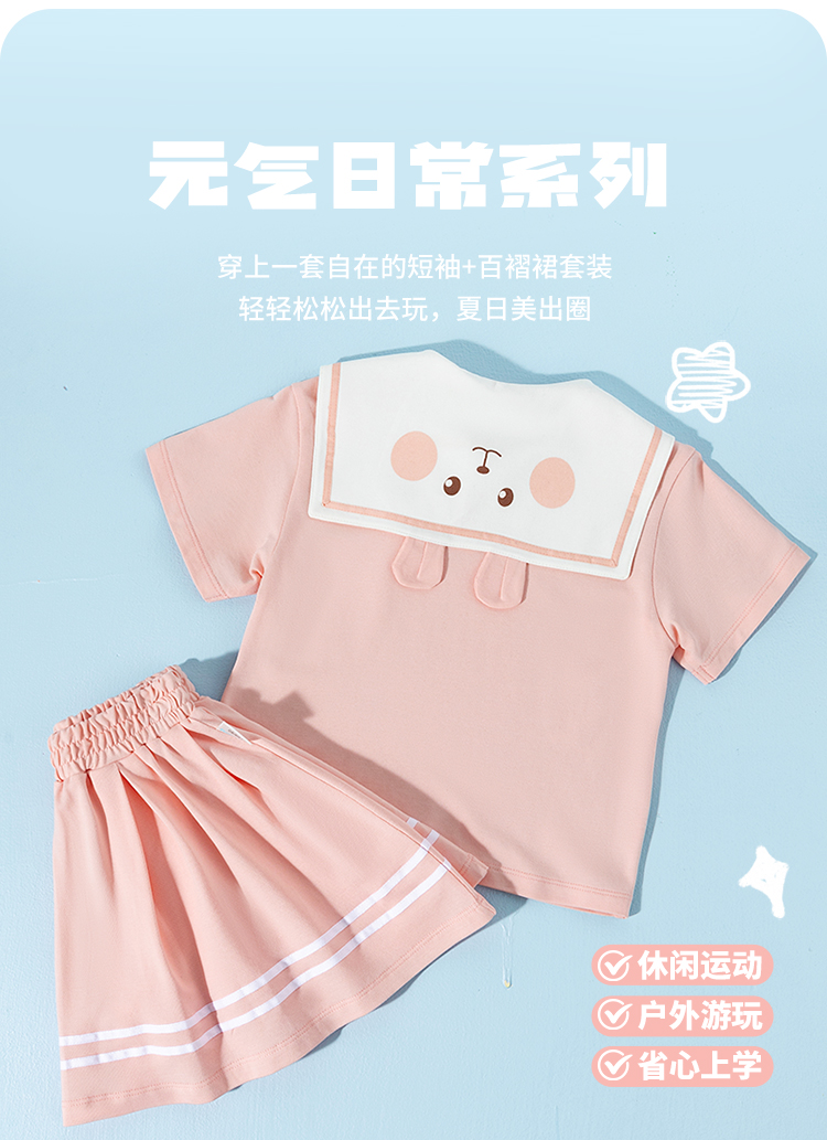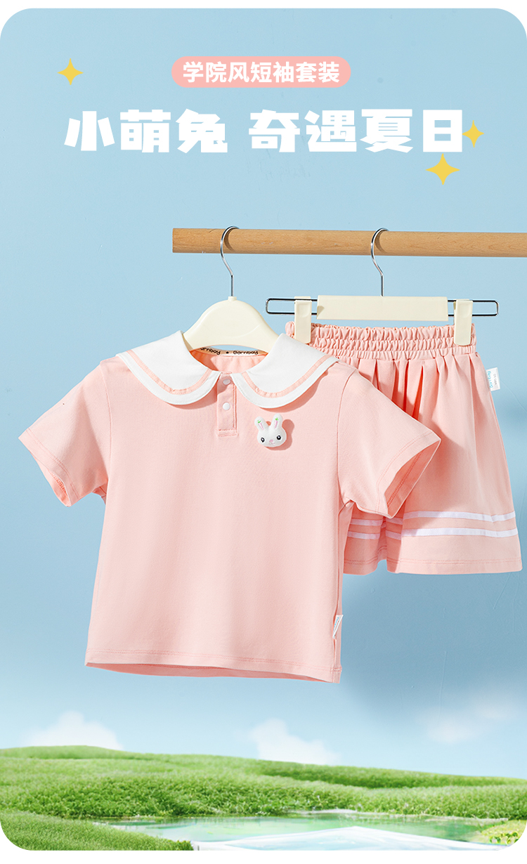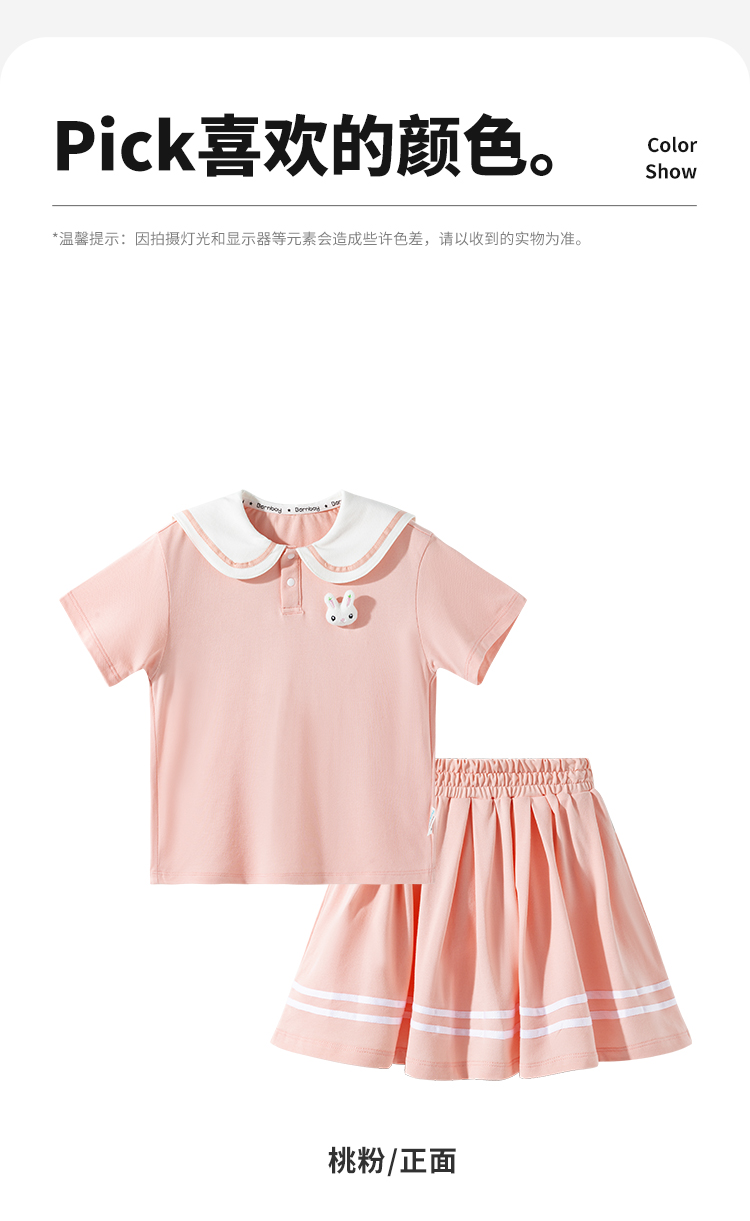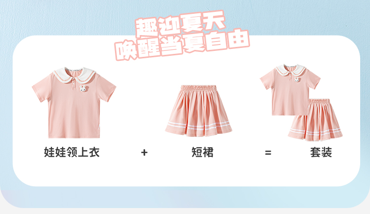 贝贝怡童装女童夏季套装短袖t恤学院风短裙夏装儿童Polo衫两件套ZB2ET070