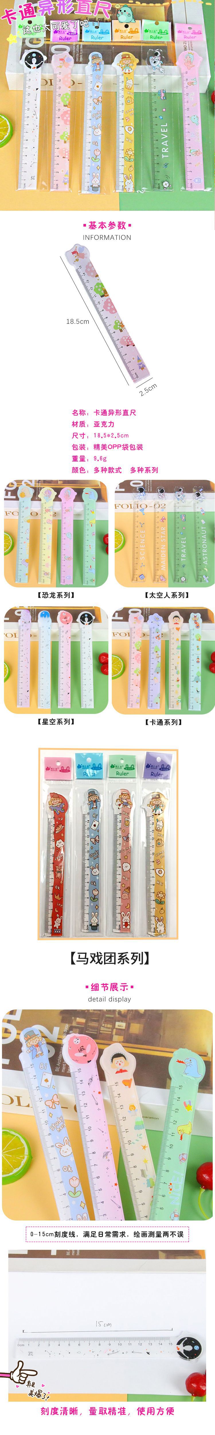 透明直尺亚克力刻度尺学生高颜值画图测量尺卡通文具可爱异形尺子