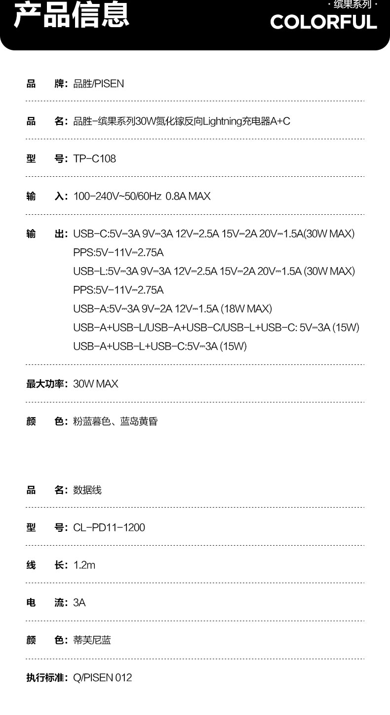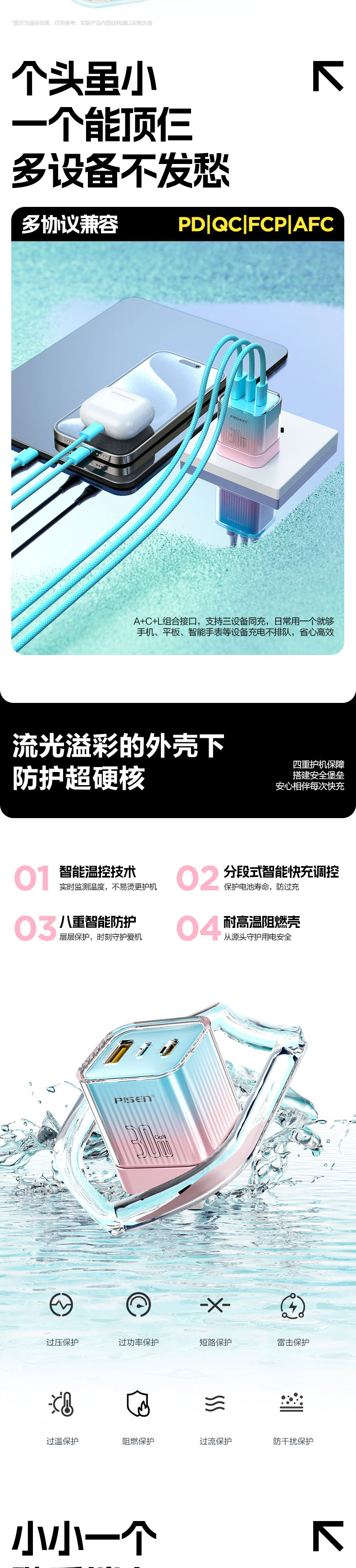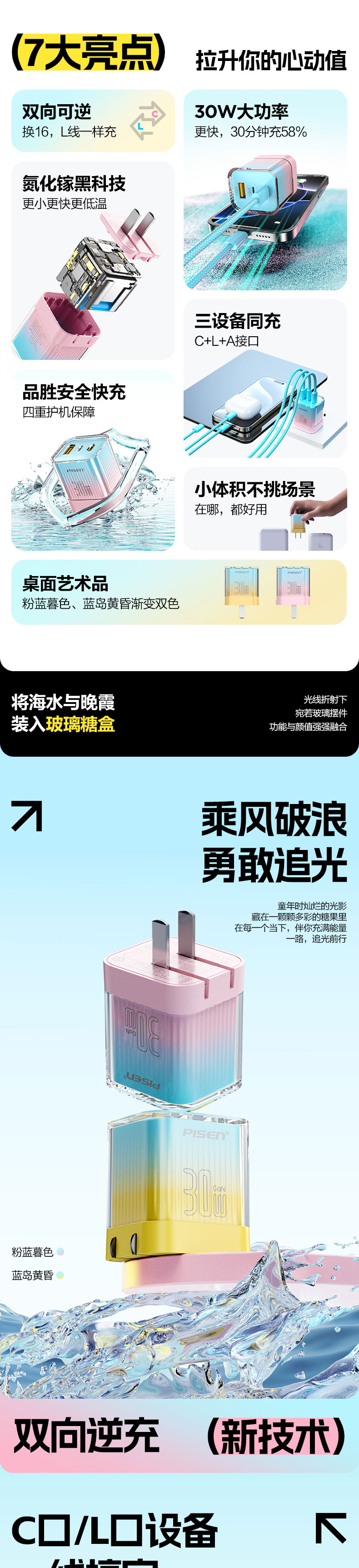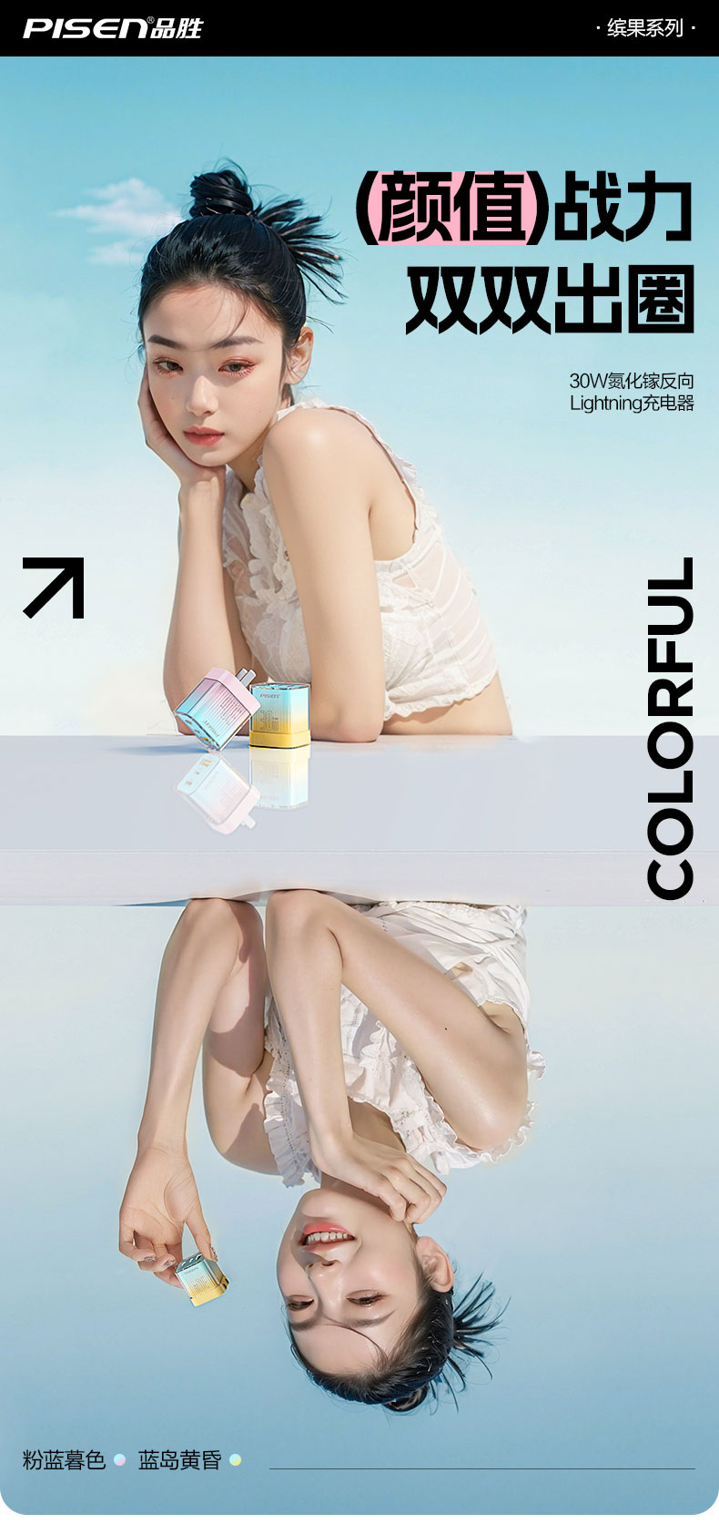 品胜 小方块充电器套装氮化镓 支持PD30W苹果PD快充 苹果15/16快充头