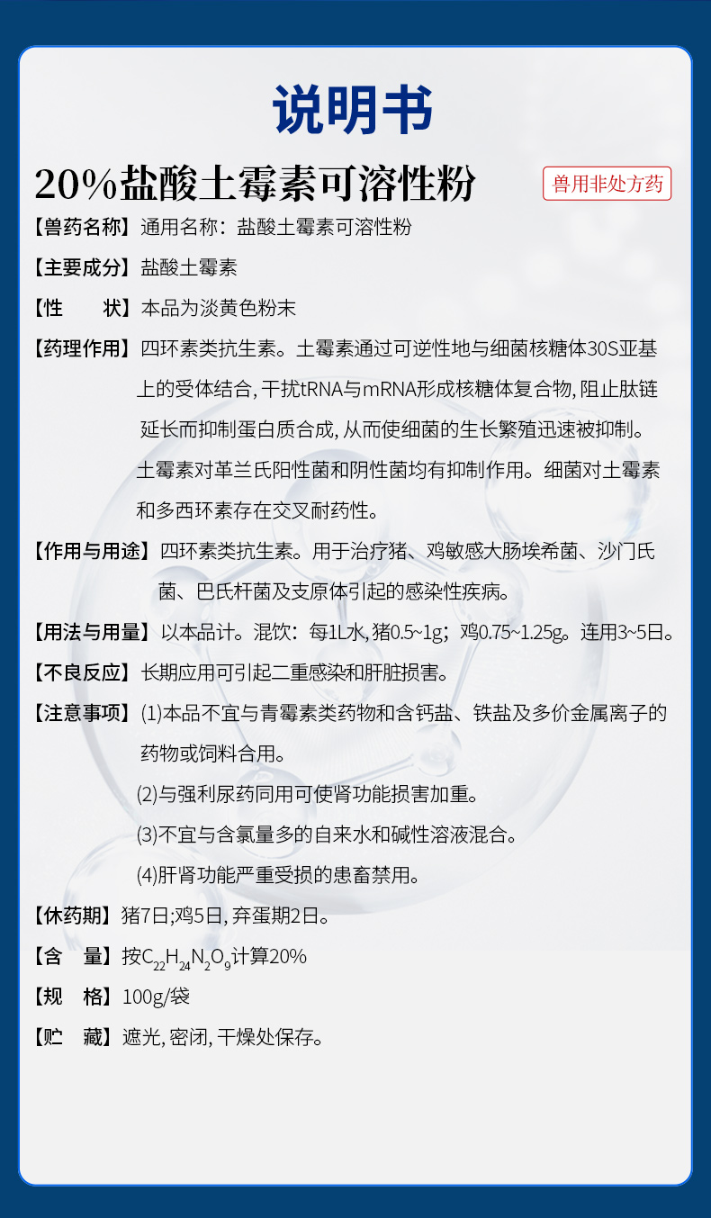 华畜兽用 20%盐酸土霉素可溶性粉 采用脱色结晶工艺 药效释放更彻底