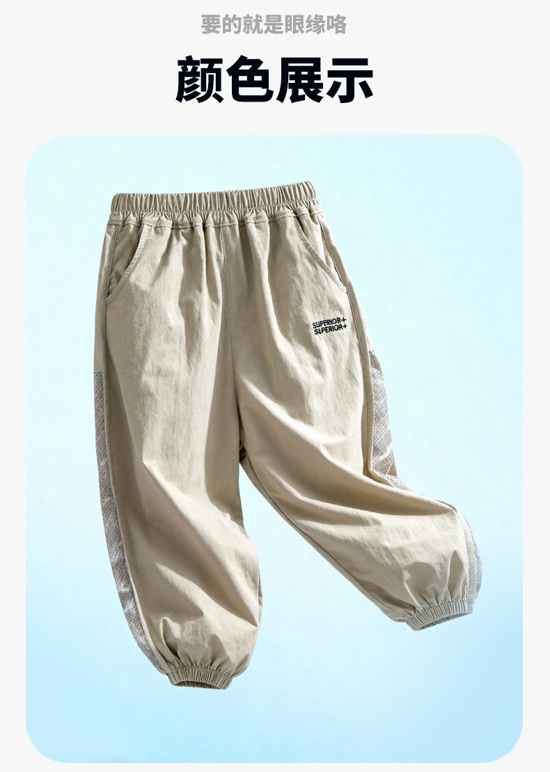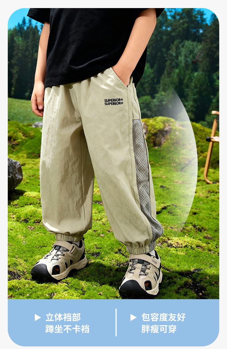 贝贝怡童装男童防蚊裤儿童薄款裤子2026新款夏季网眼透气长裤夏装