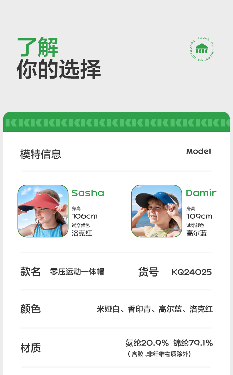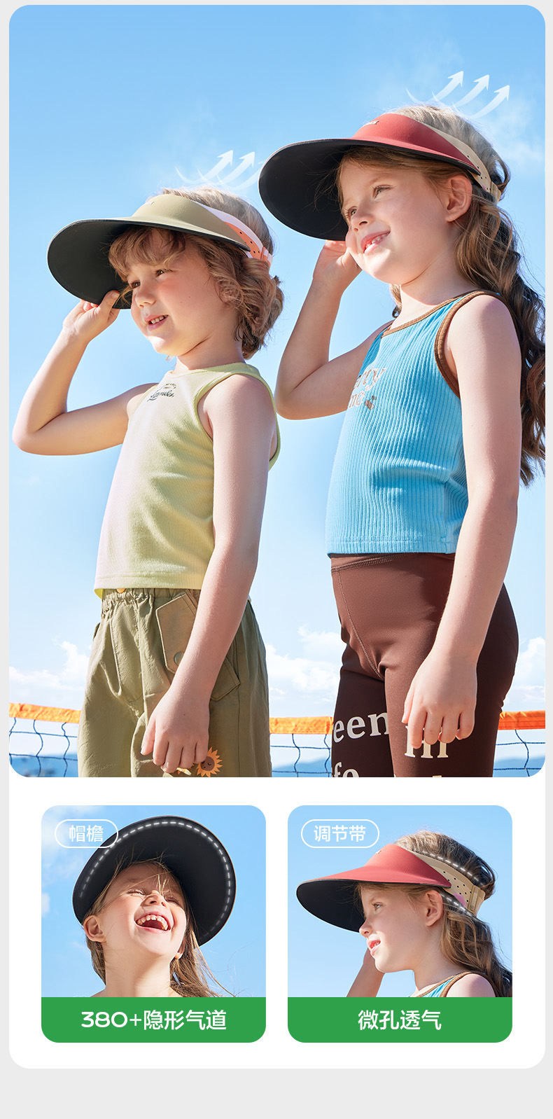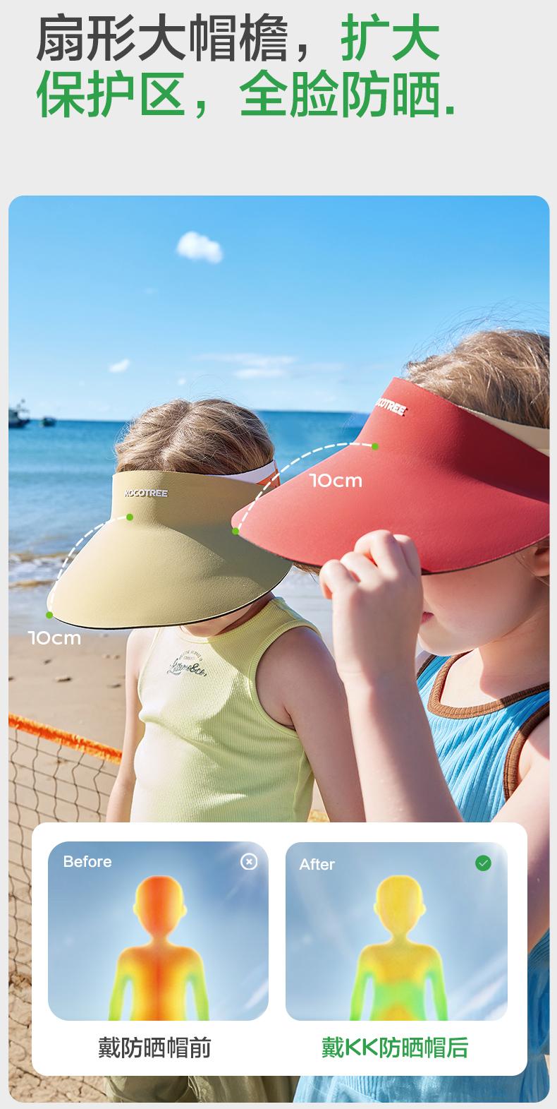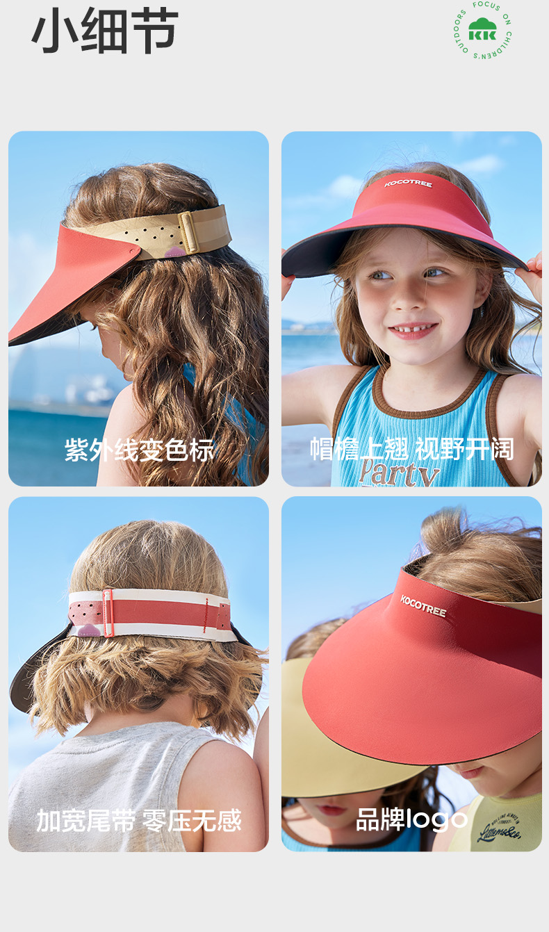 [屁侠推荐]KK树 原纱儿童防晒帽 遮阳帽 空顶太阳帽 大帽檐零压运动一体帽