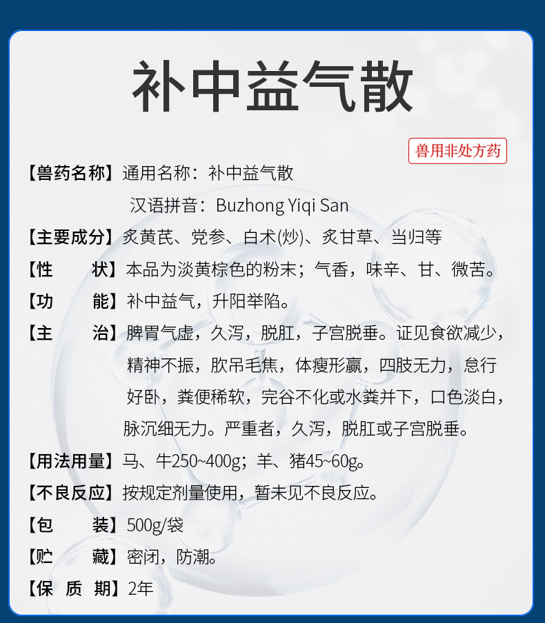 华畜补中益气散500g 脾胃气虚久泻脱肛 母畜产后用