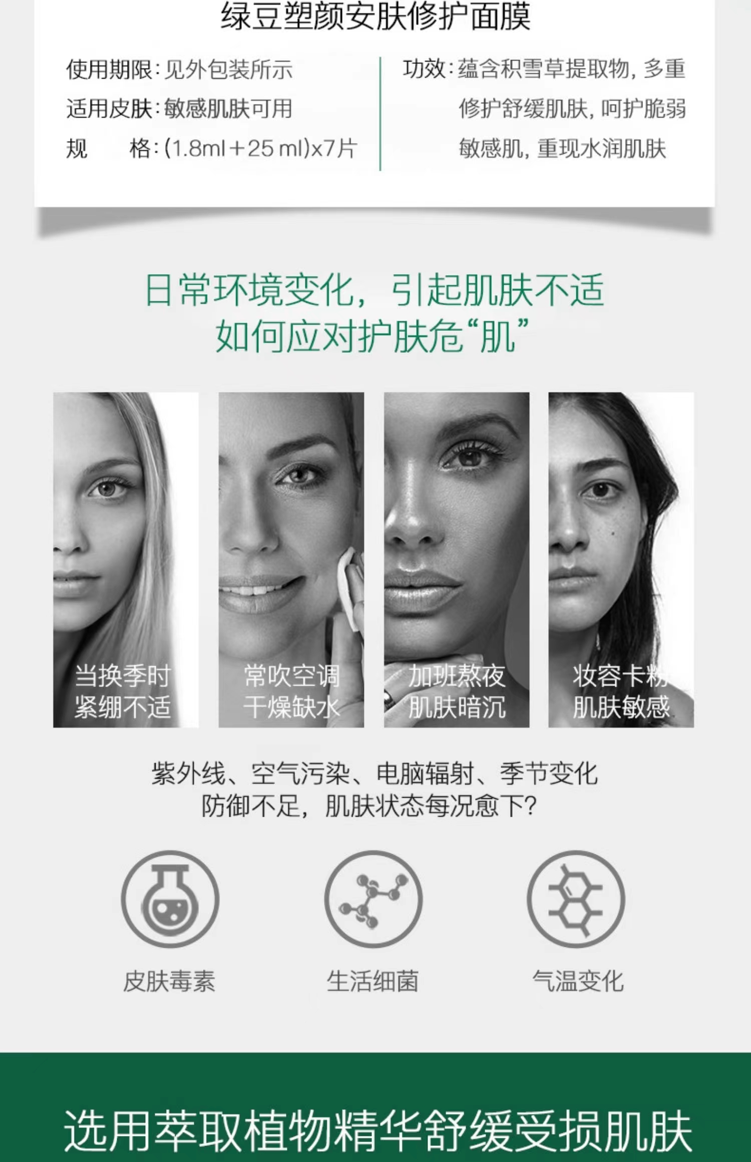 【买一送一!】绿豆塑颜安肤修护面膜 7片/盒