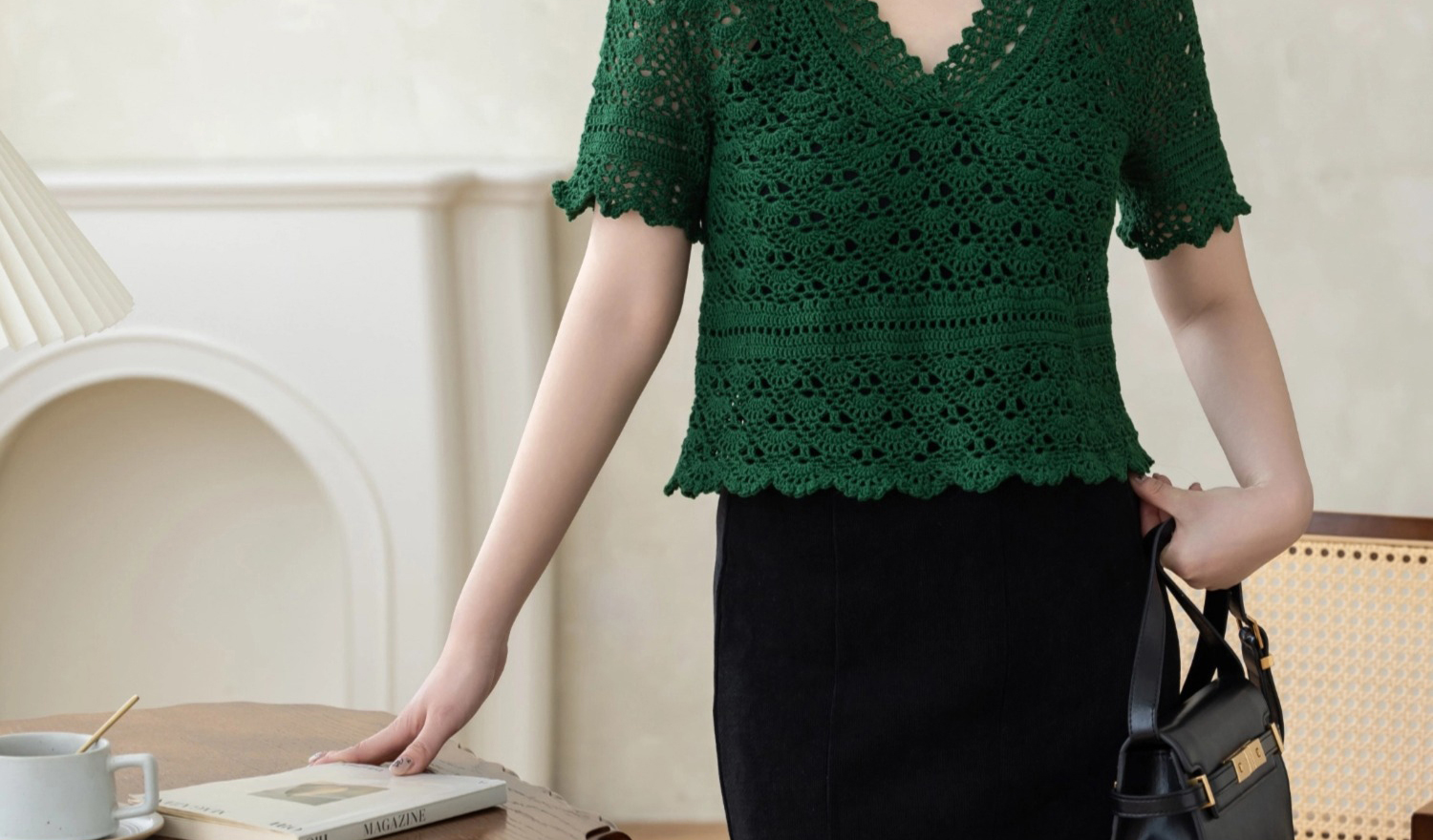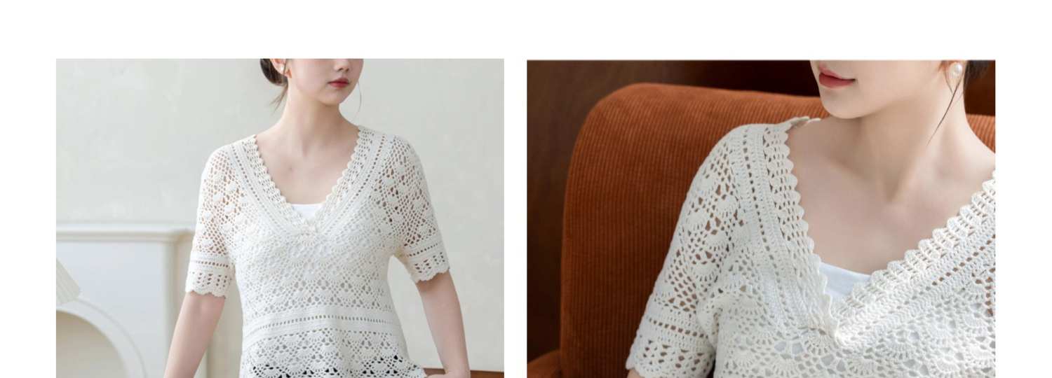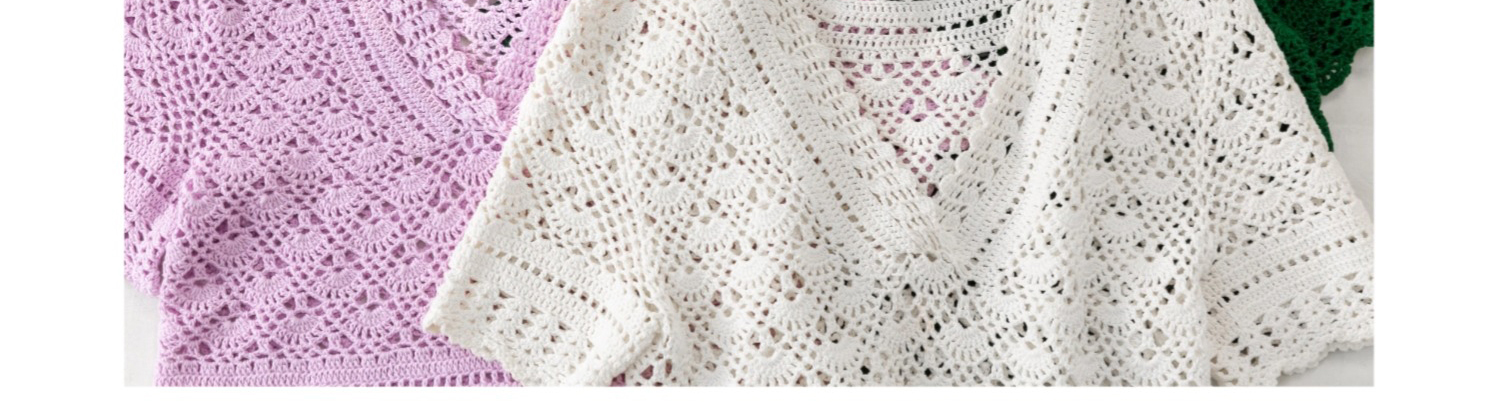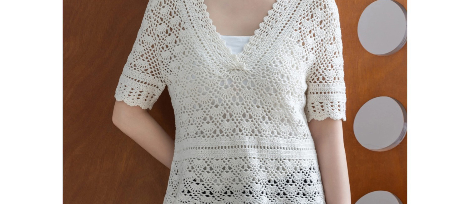 苏苏姐家贝壳花V领短袖手工diy钩针棉麻线毛线团上衣自制材料包