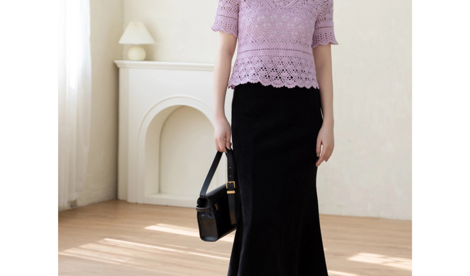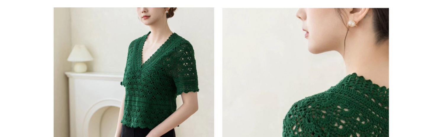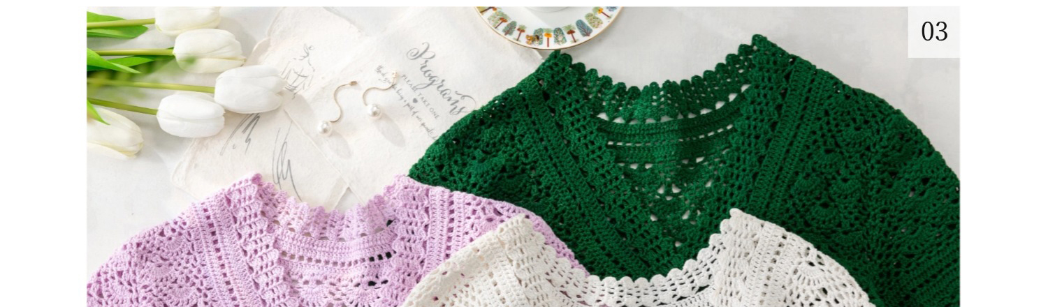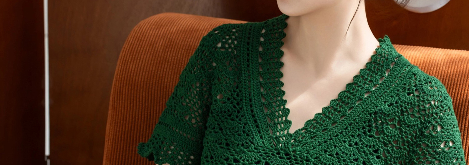 苏苏姐家贝壳花V领短袖手工diy钩针棉麻线毛线团上衣自制材料包