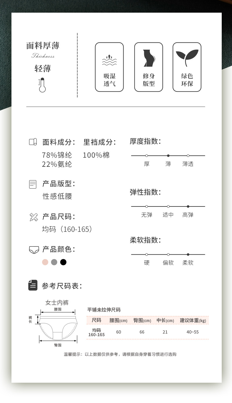 雅黛丽女士内裤性感低腰轻薄透气简约纯色亲肤内裤单条装底裤 DYK03034