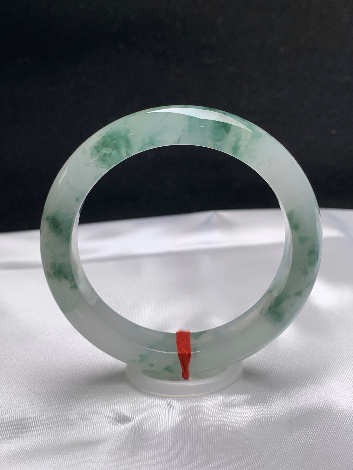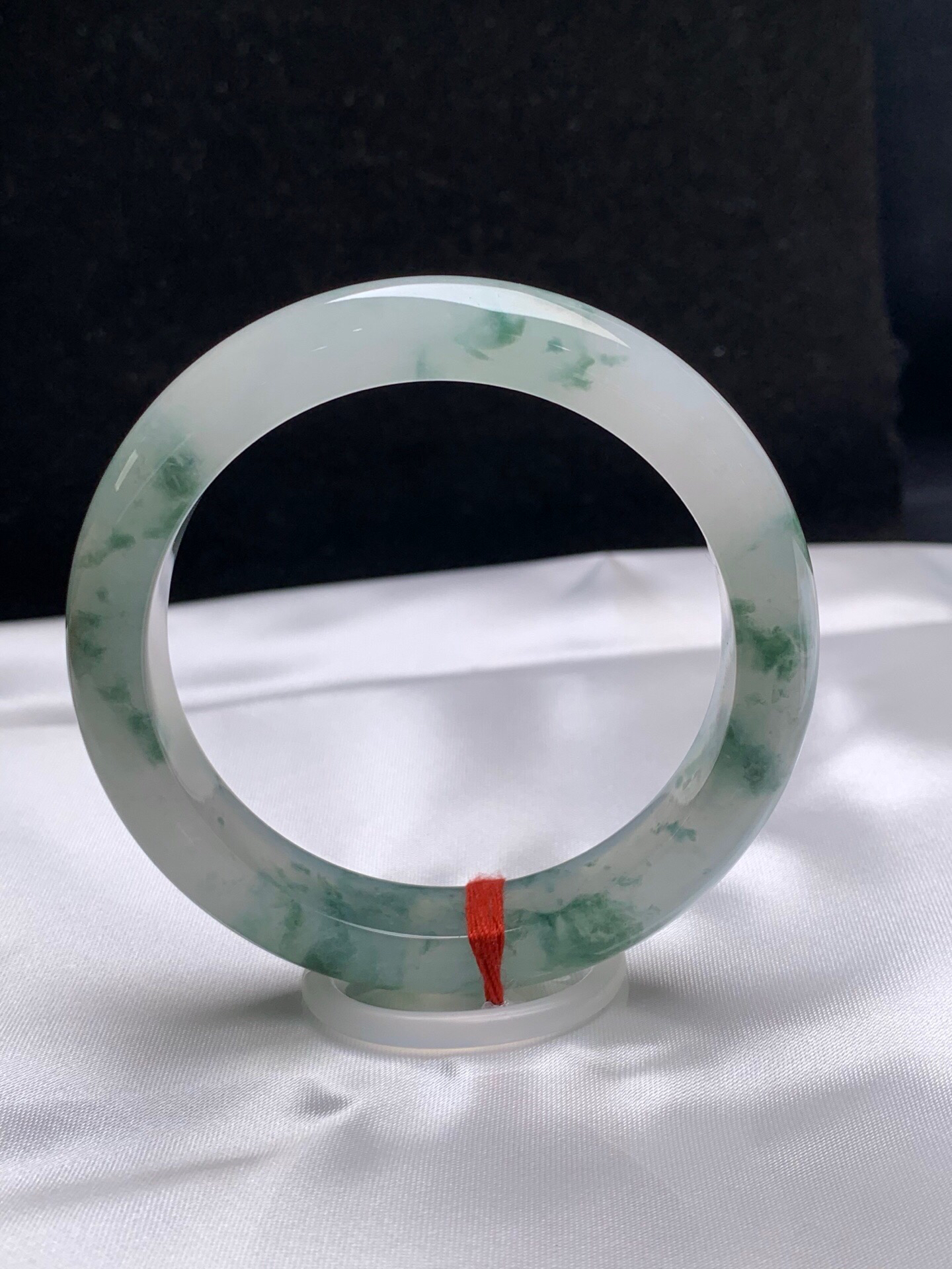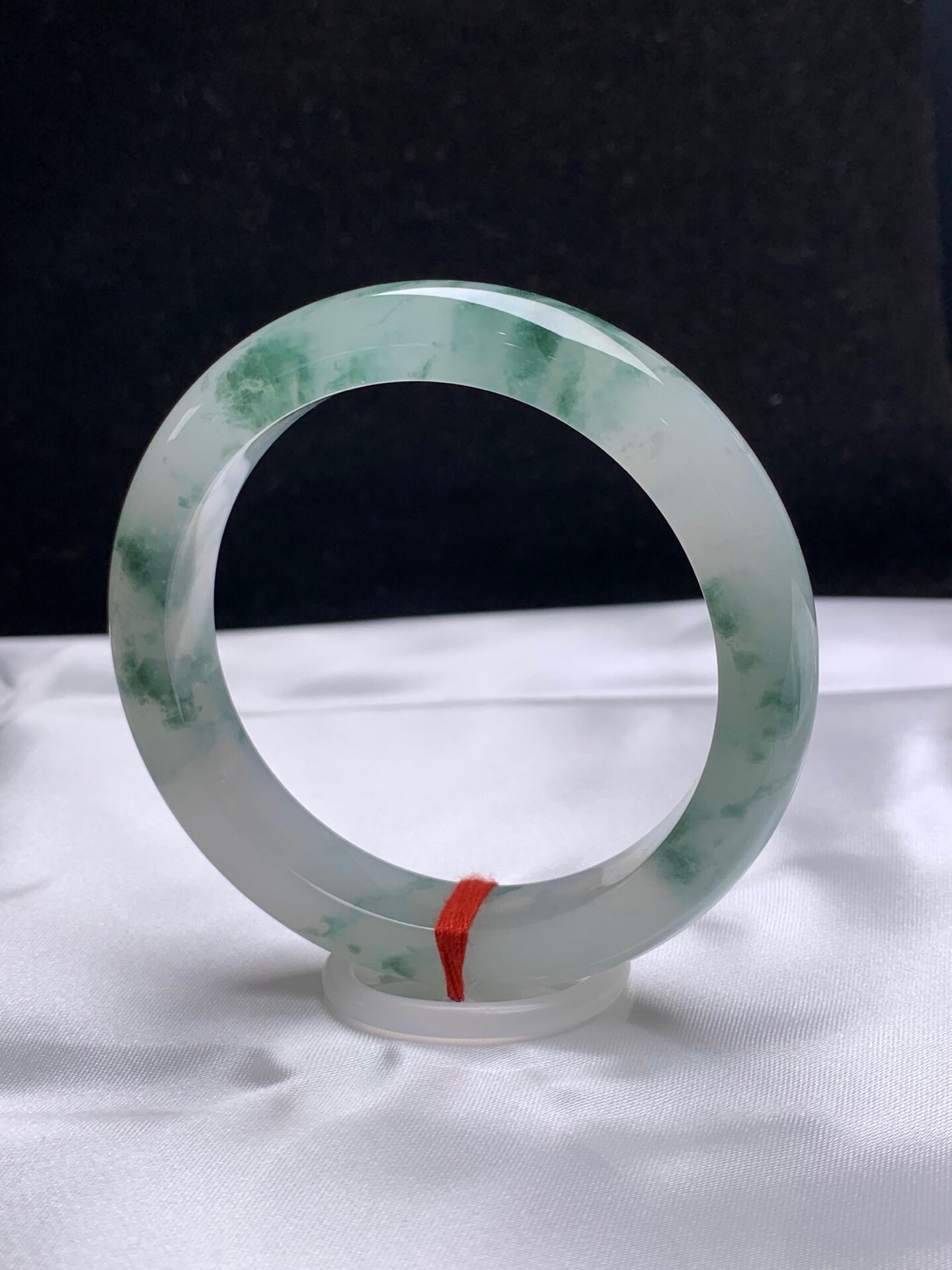 620258,55.3圈口,冰飘花正圈平安镯,老种,冰透起光,白底飘蓝花,条形秀气,完美无裂,尺寸:55.3-11.6-8.6,超值价💰87500 #优石客珠宝#香玉荟萃