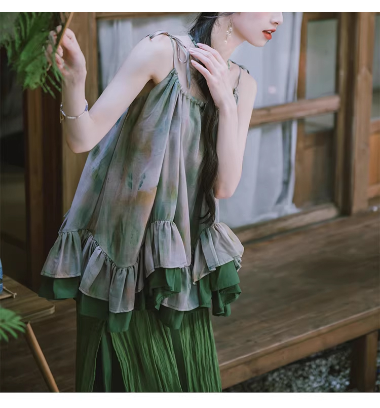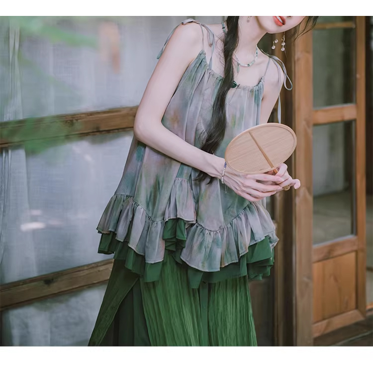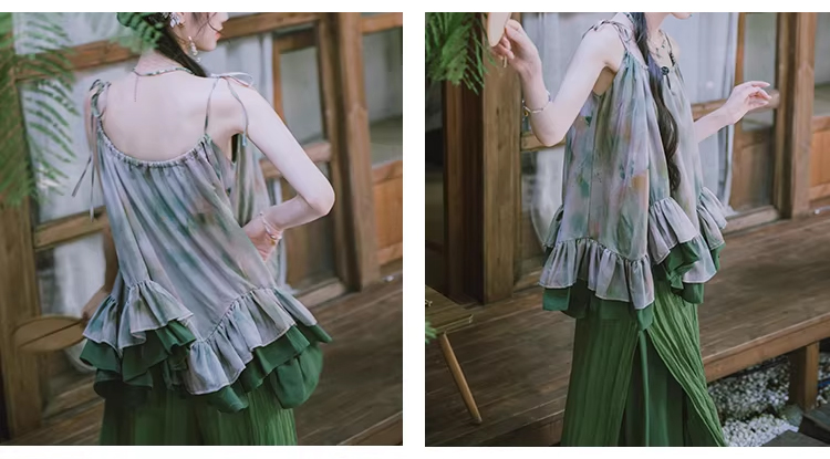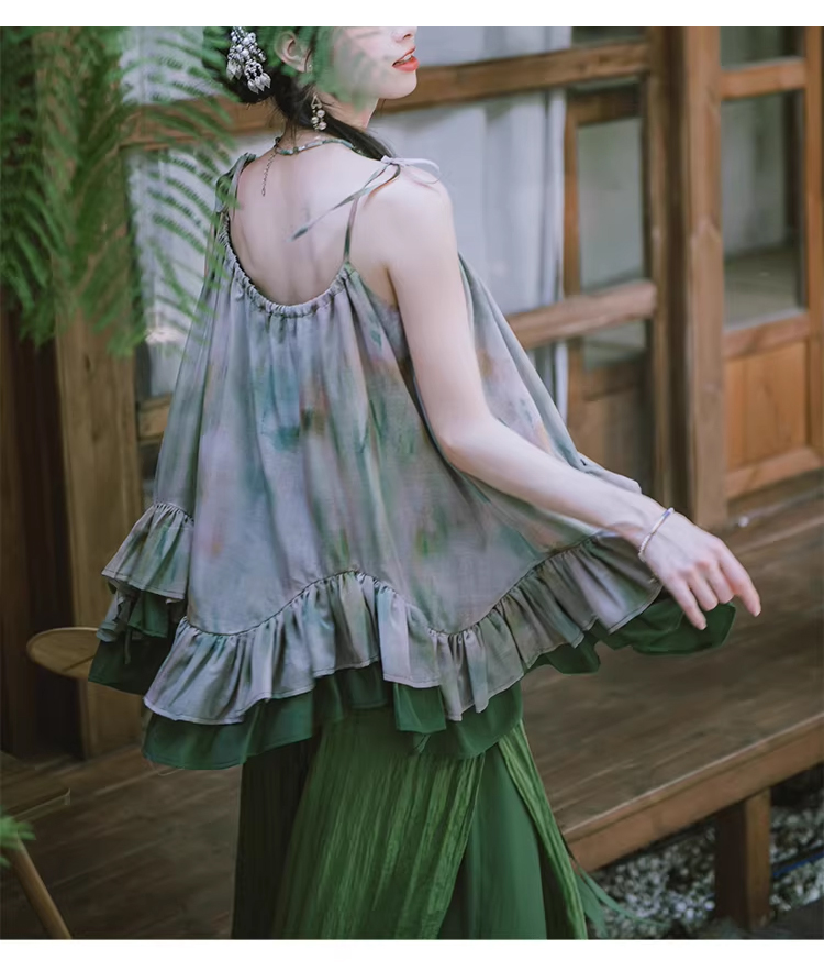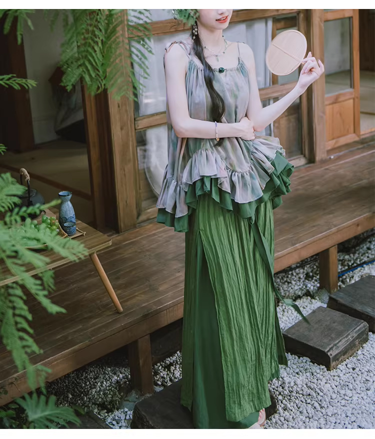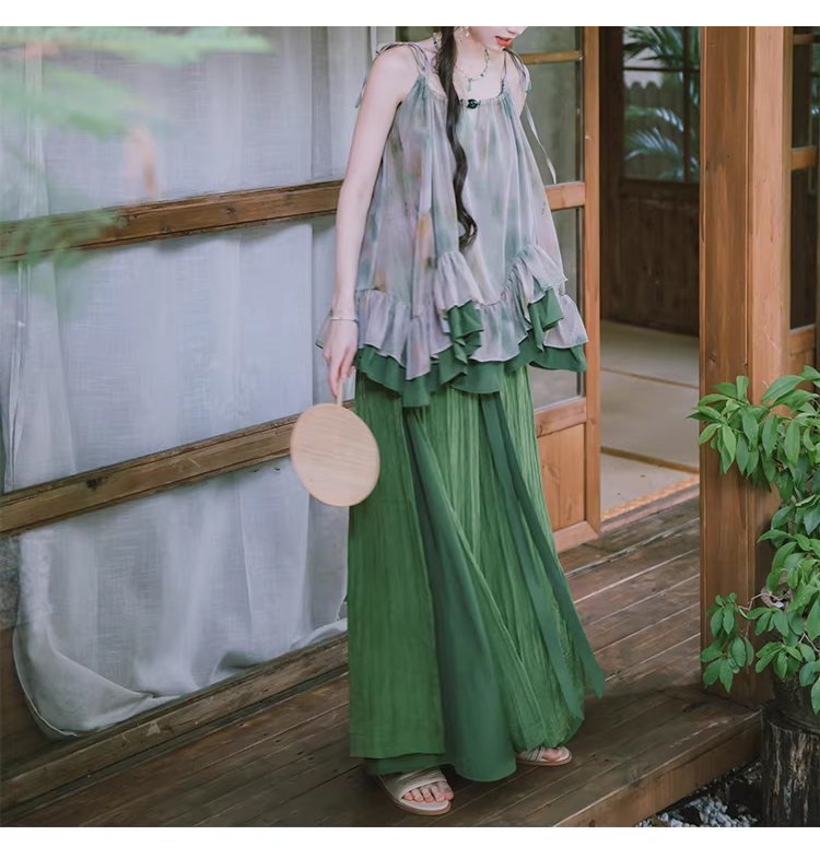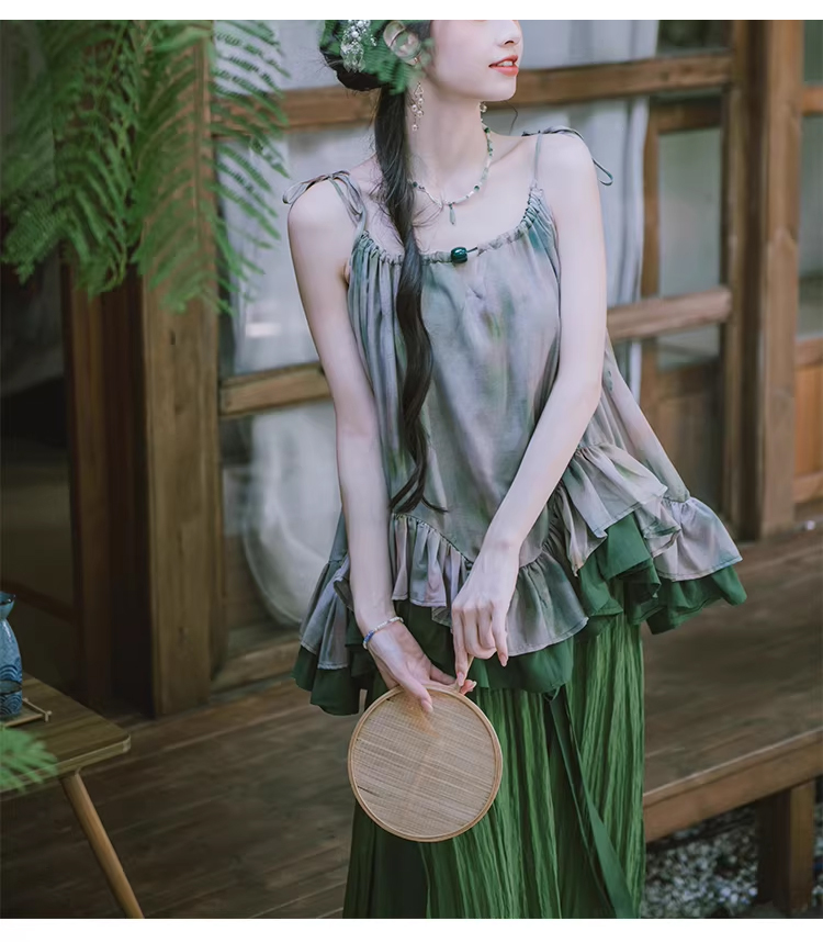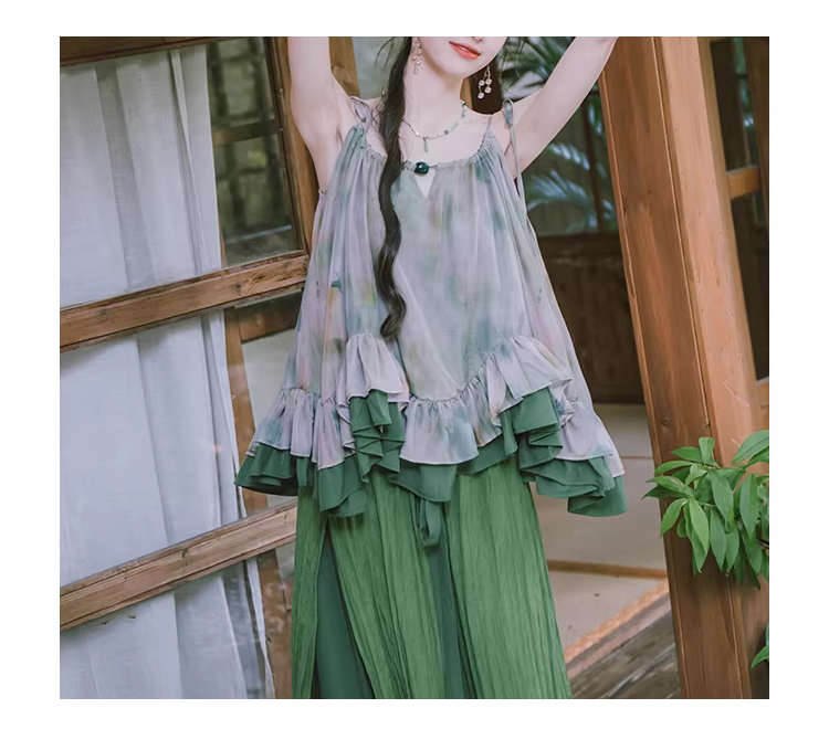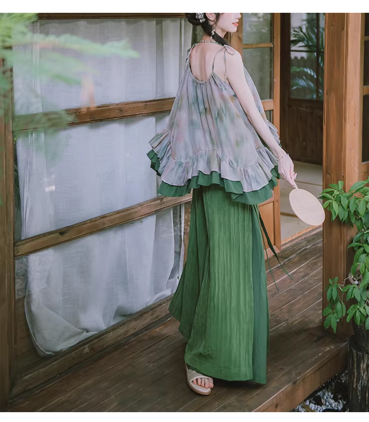 裁缝学苑AH125双层荷叶边大摆吊带国风改良宋裤阔腿裤套装纸样服装打板