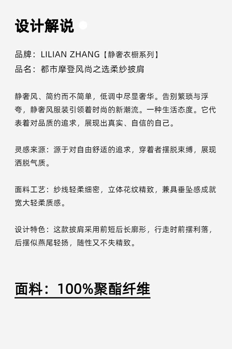 E-“定制”——静奢风 ——都市摩登——风尚之选—— 米白柔纱披肩 2405036