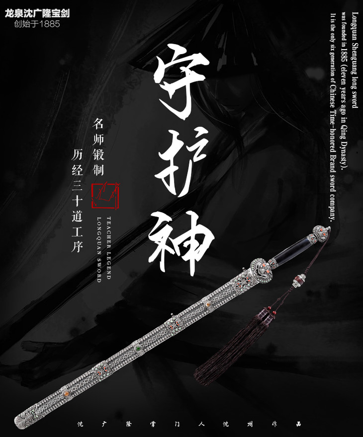 守护神宝剑 龙泉沈广隆沈州作品 全手工花纹钢剑 传统宝剑 工艺品 未开刃