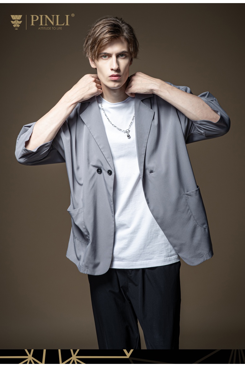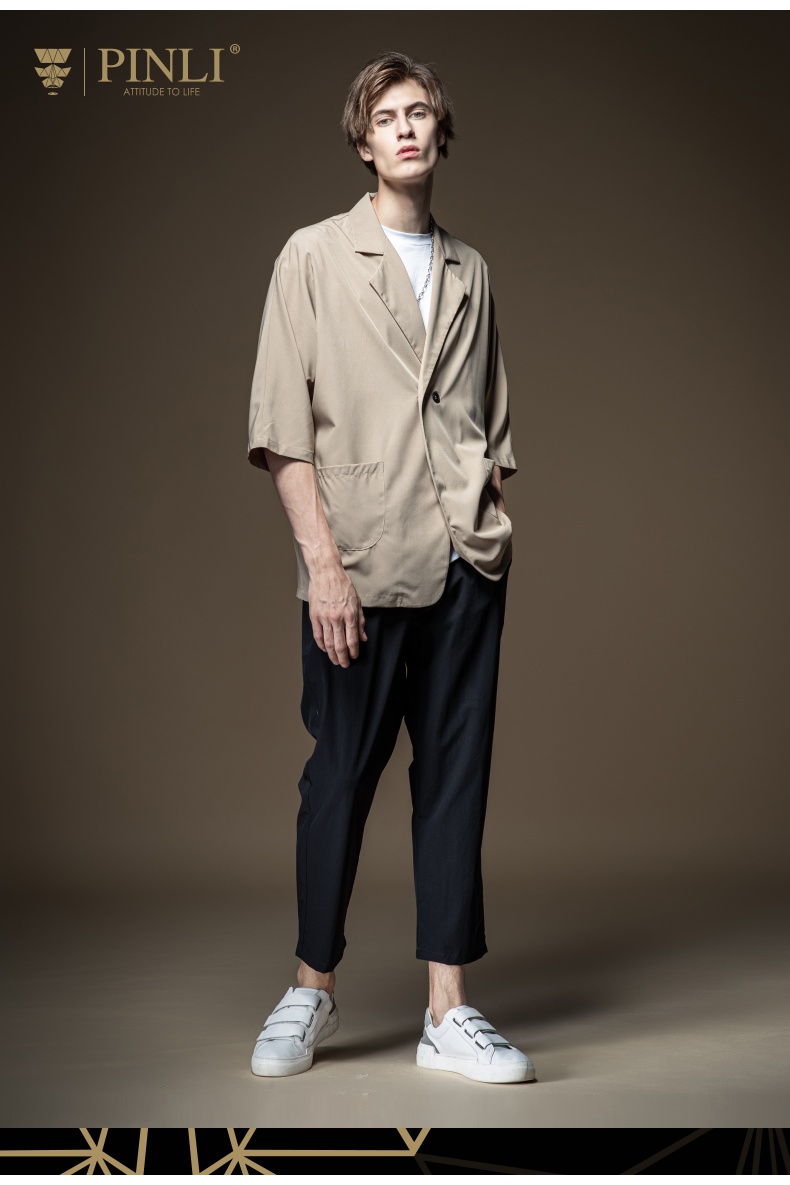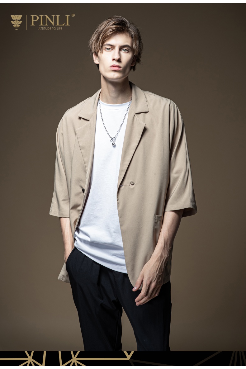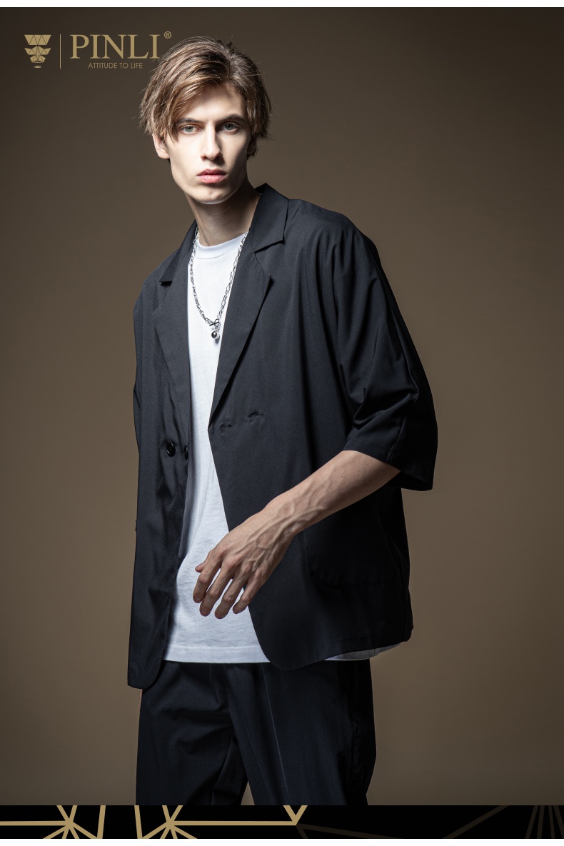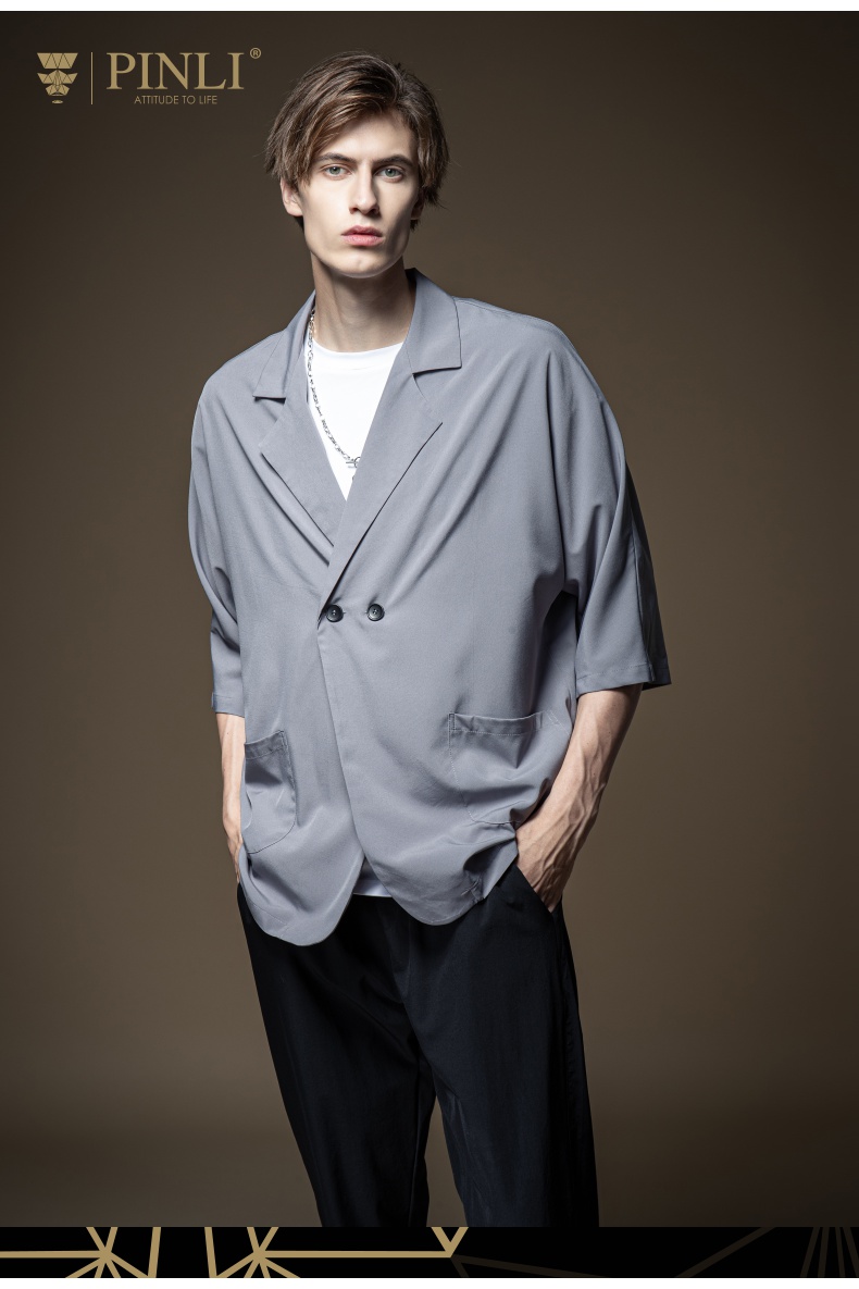 PINLI品立男装宽松七分袖小西装西服外套B203106331