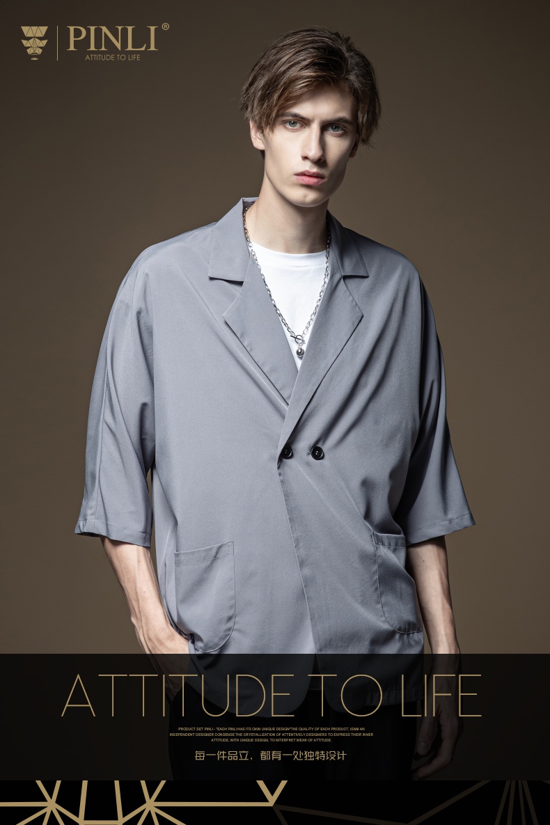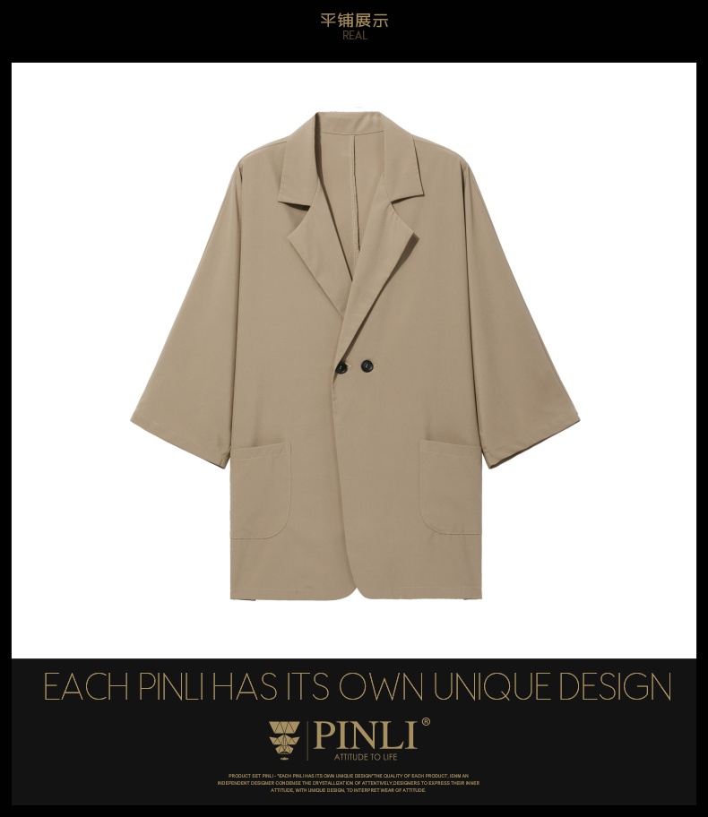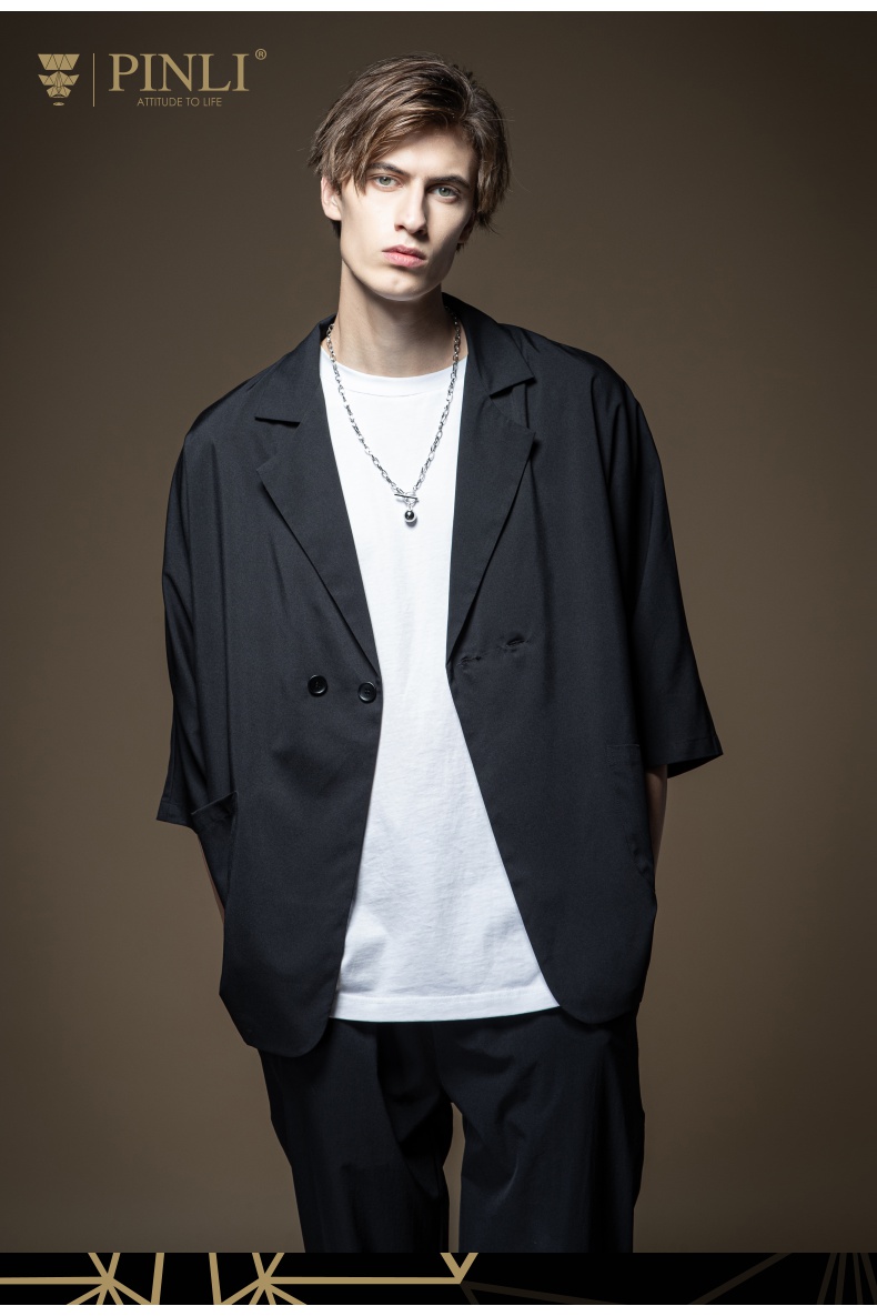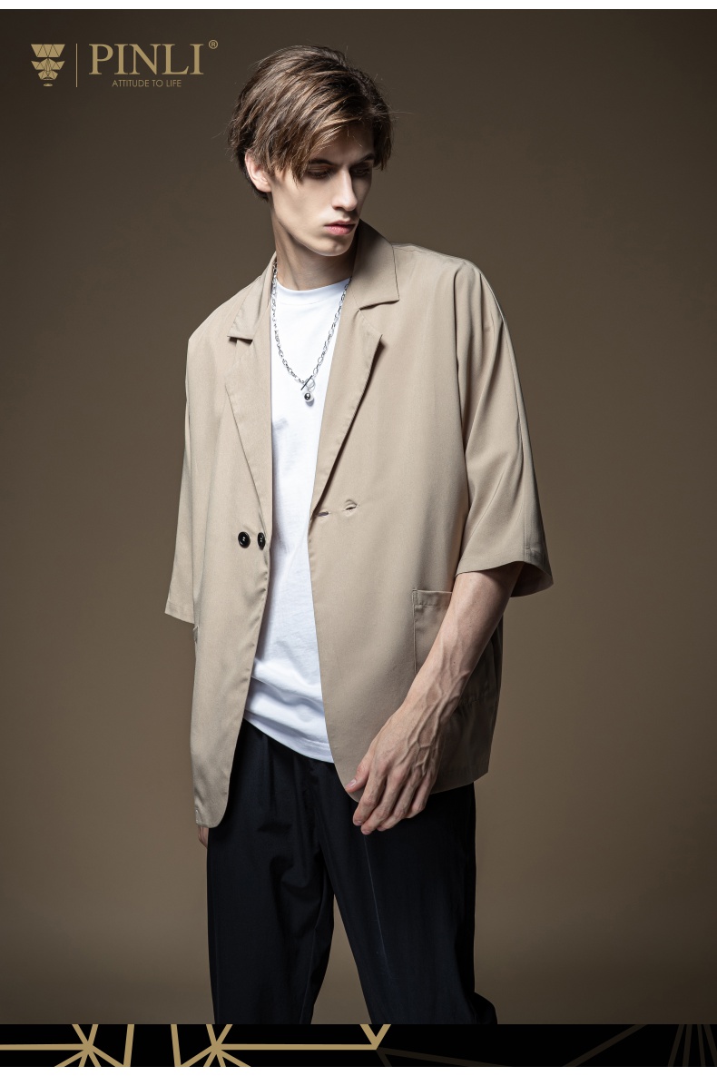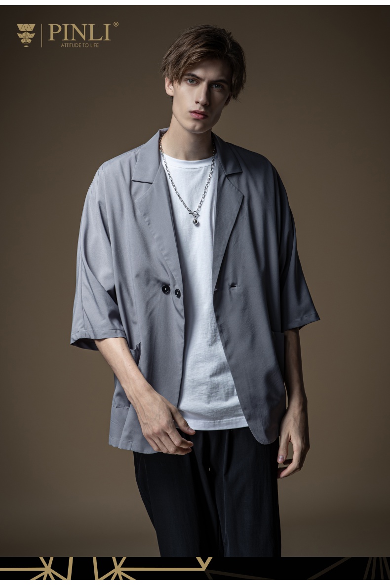 PINLI品立男装宽松七分袖小西装西服外套B203106331