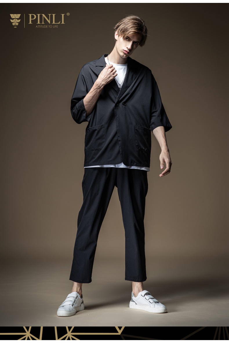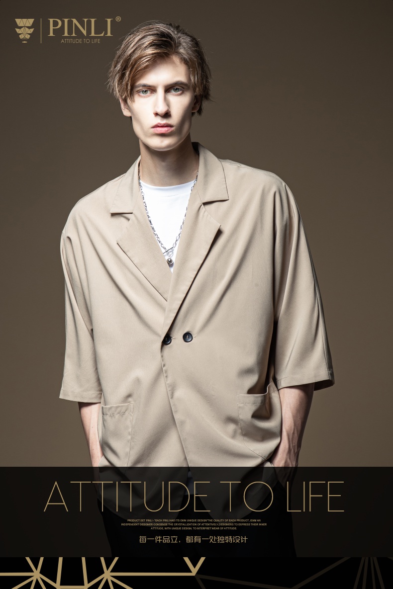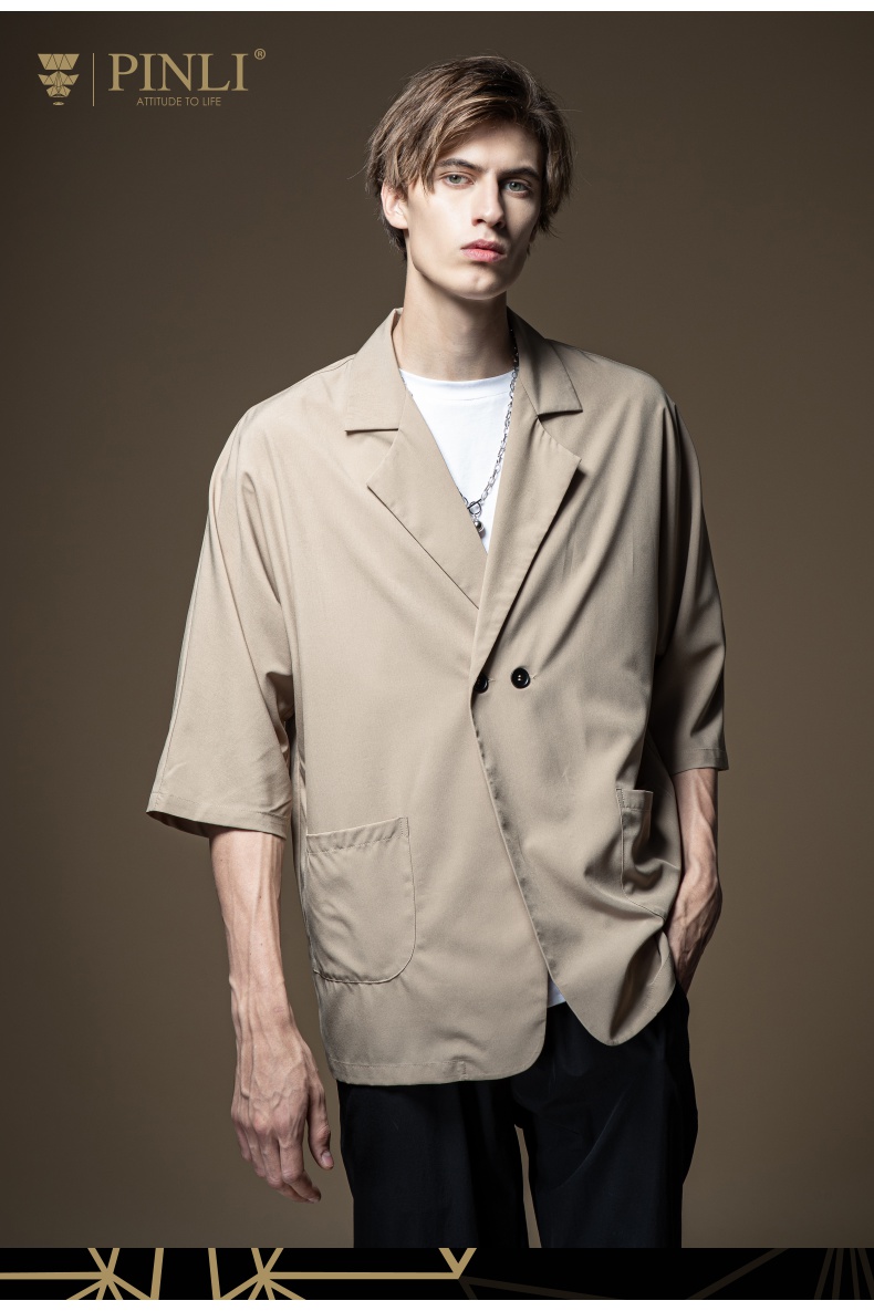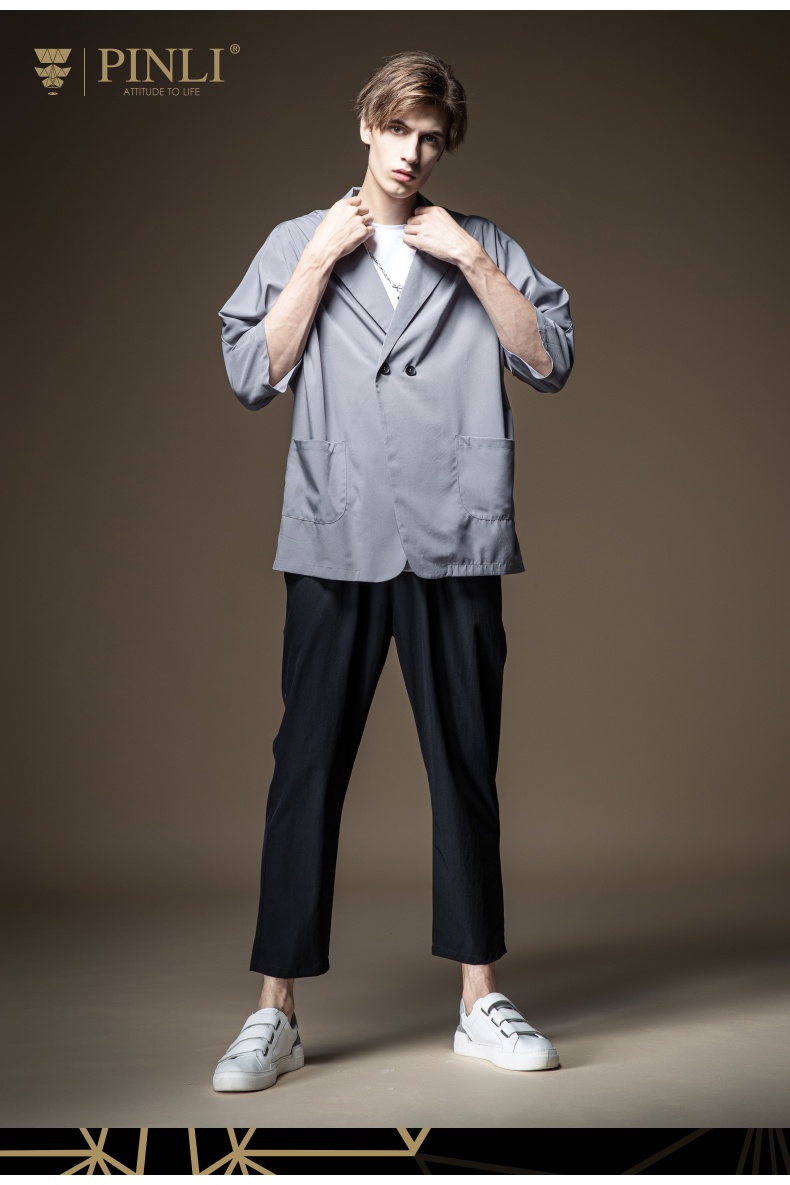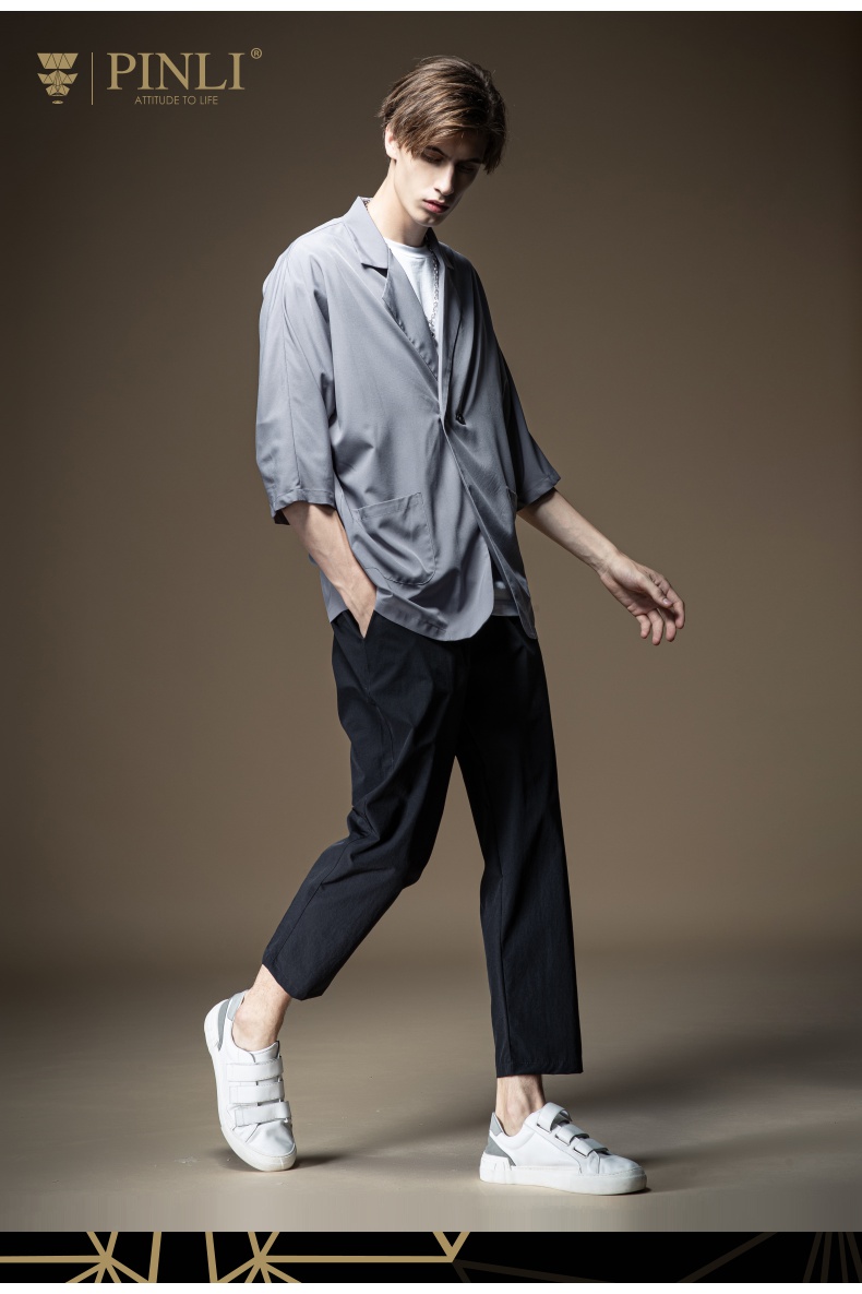 PINLI品立男装宽松七分袖小西装西服外套B203106331