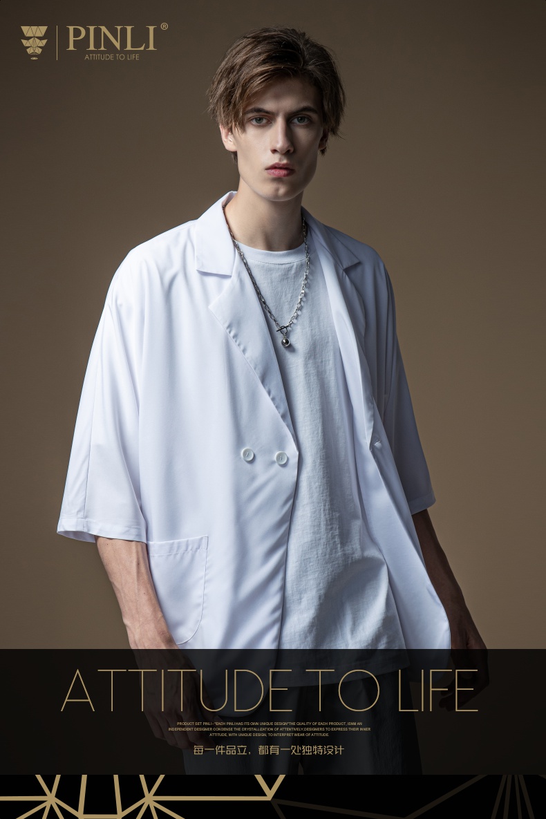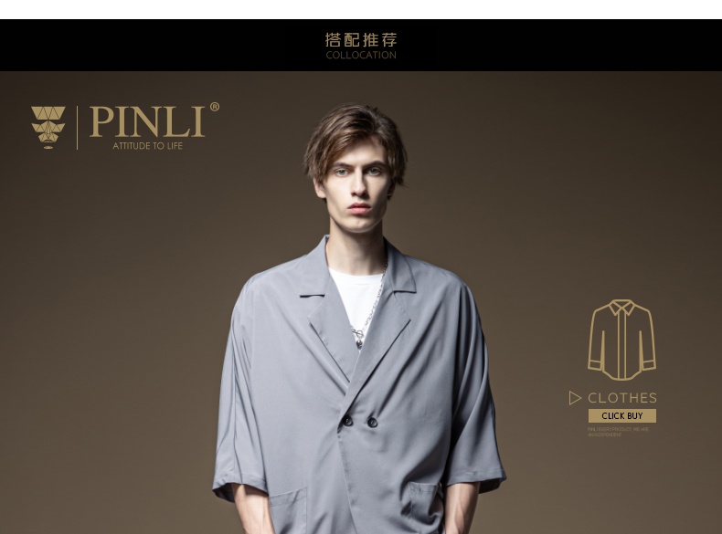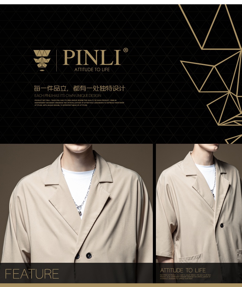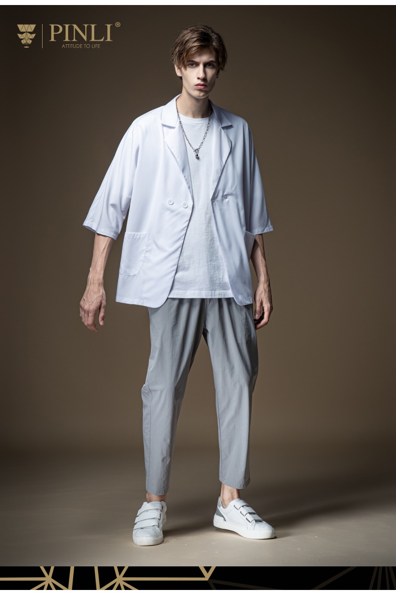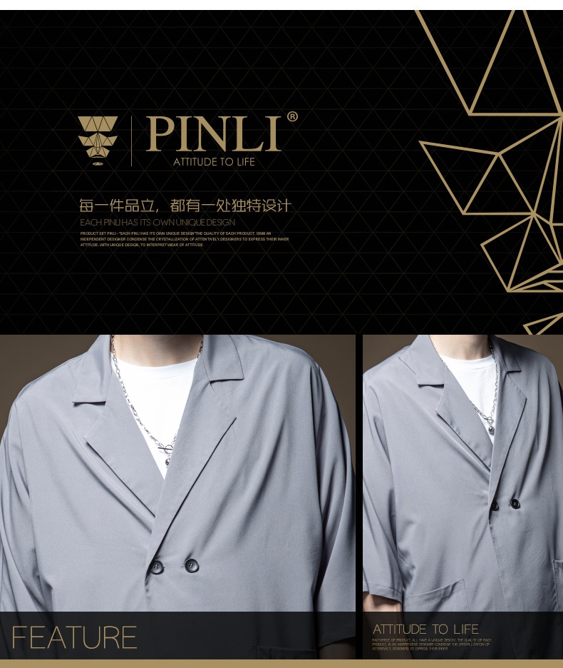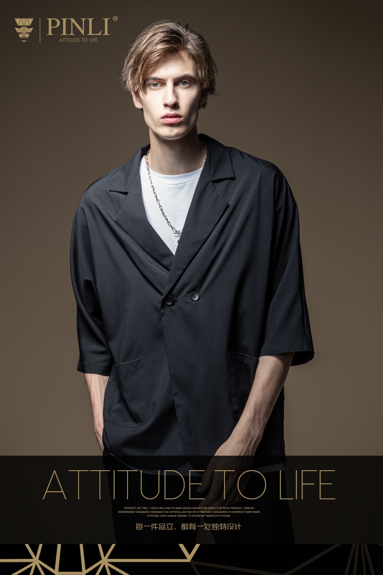 PINLI品立男装宽松七分袖小西装西服外套B203106331