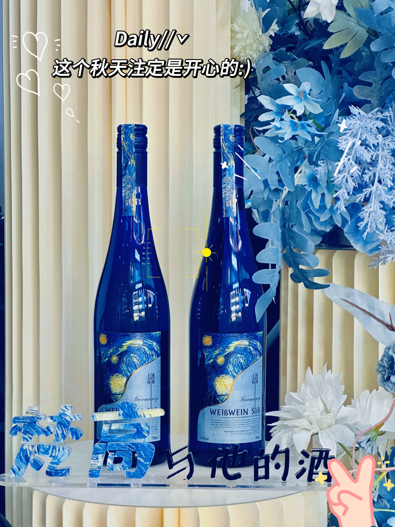 蓝色小酒瓶也很美貌,瓶盖上还印有梵高的头像,细节满分!开瓶就能闻到柠檬、桃子、蜂蜜、花朵、苹果和梨的香气,倒入配送的香槟杯,入口清凉香浓,蜂蜜般的甘甜与橙橘的酸度很好平衡,馥郁的黄色花香和成熟的酵母香回味深邃,最后是迷人的矿物质风味,甜美、微醺、迷人,是许多姐妹都喜欢的小甜酒类型,冰镇后口感更佳更甜哦!还可以加冰块,搭搭水果、火腿、牛排,都很配!