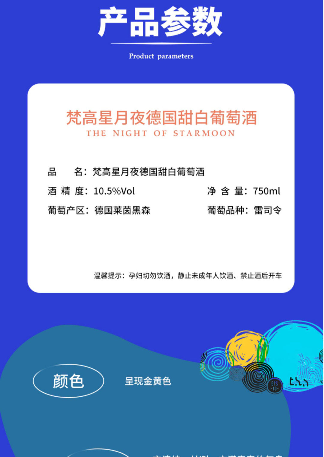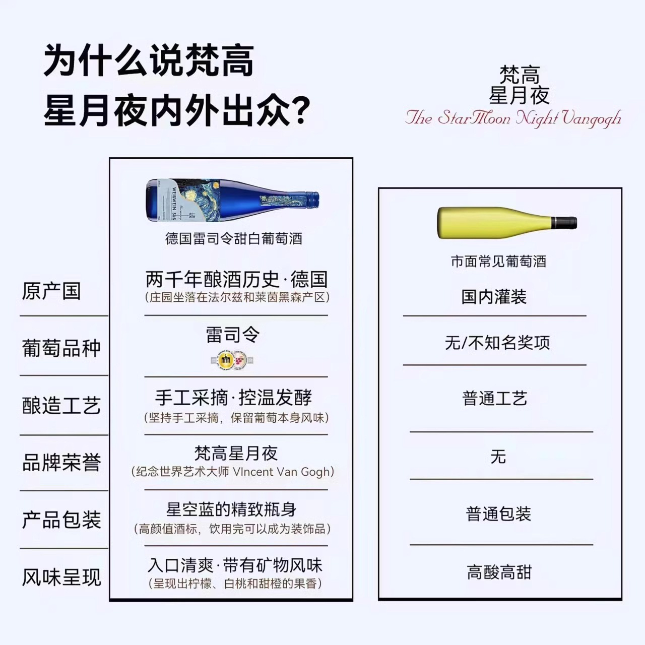 [屁侠推荐] 梵高星月夜 德国艺术甜白葡萄酒 星月夜雷司令 冰白德国原瓶