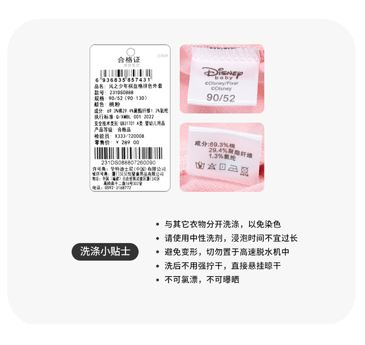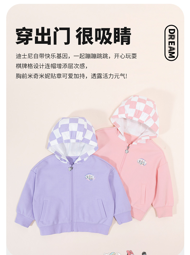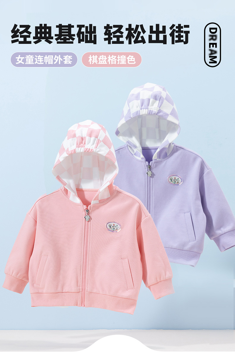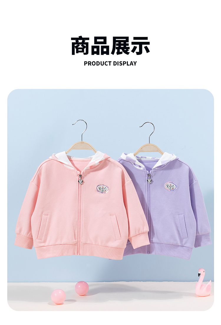 【商城同款】迪士尼2024春季女童外套连帽防风保暖开衫卫衣中小童棉弹舒适上衣231DS0888