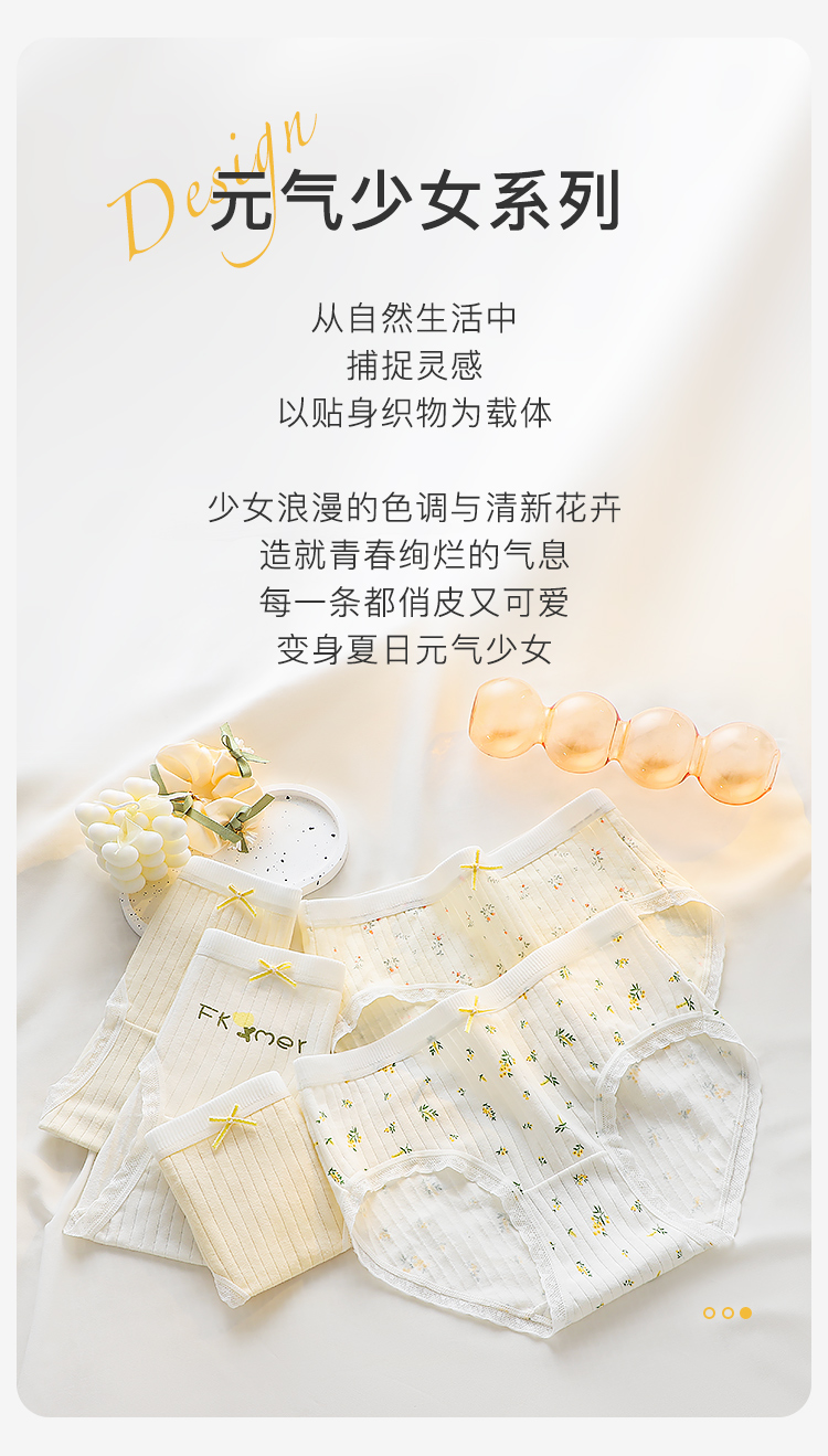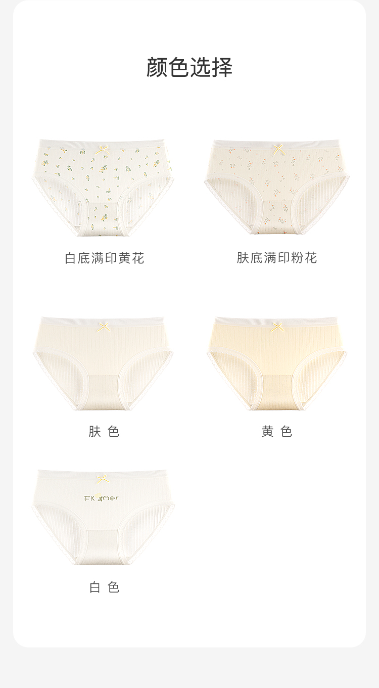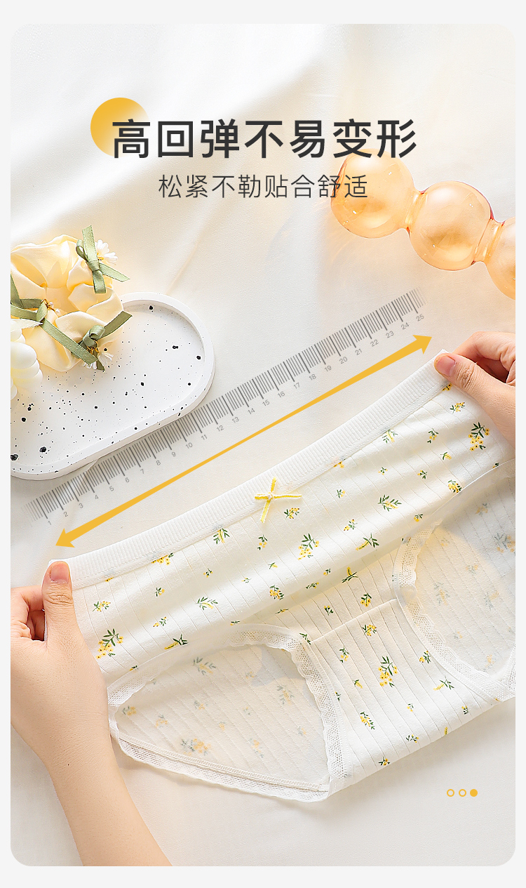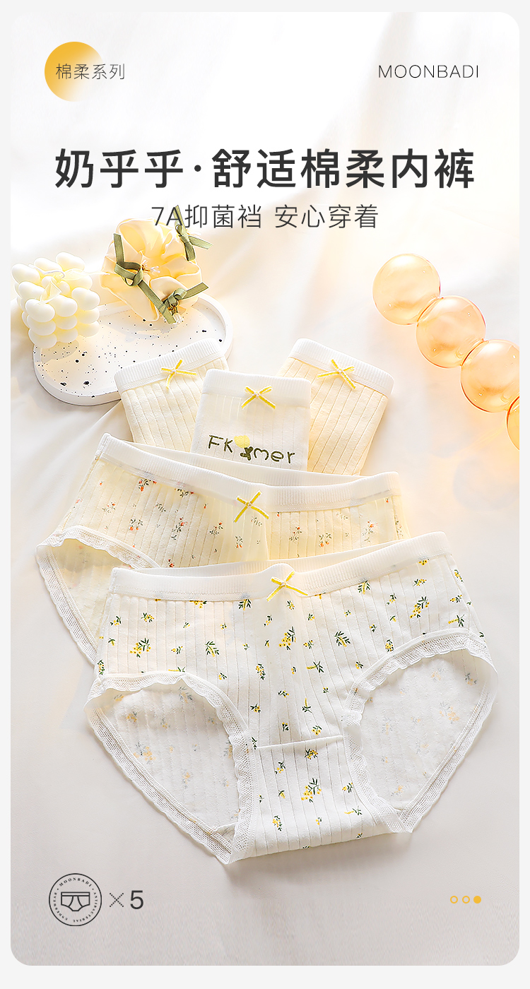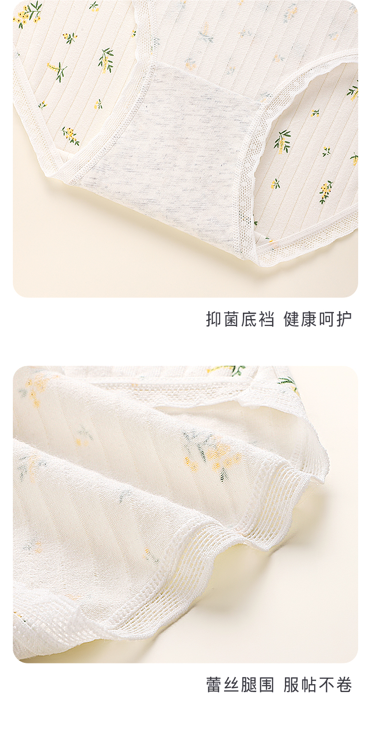 甜美蕾丝少女内裤纯棉抑菌底裆抑菌透气高弹不勒不夹臀南笙挽风内裤5条装A