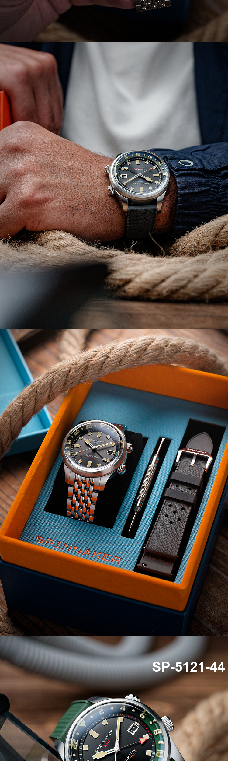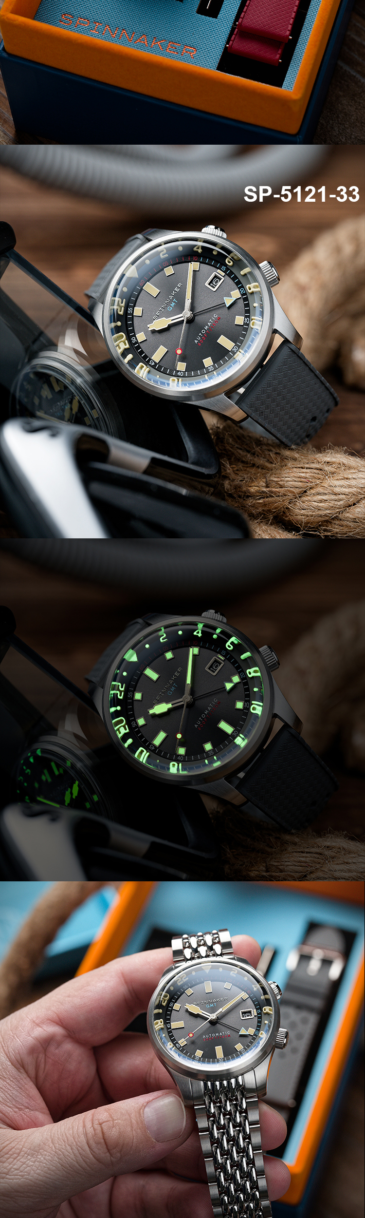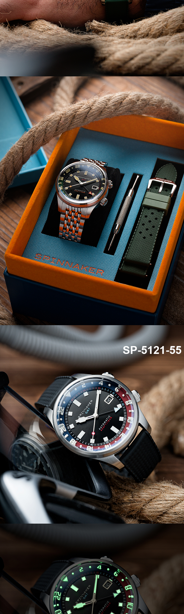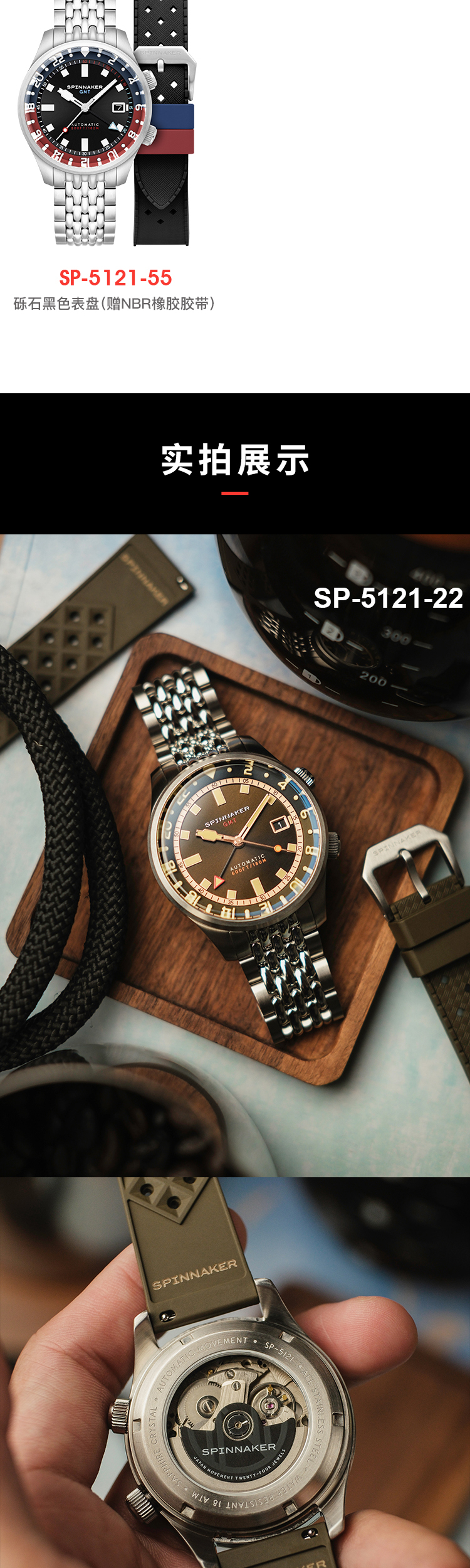 SPINNAKER三角帆GMT两地时复古潜水自动机械手表男士夜光水鬼5121