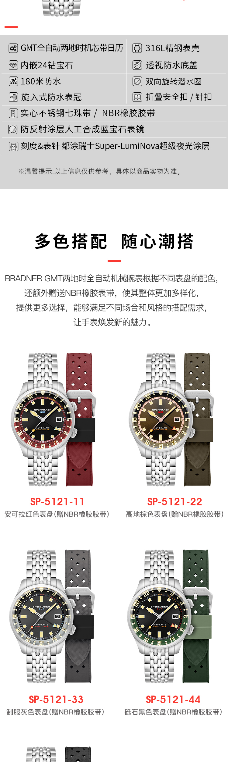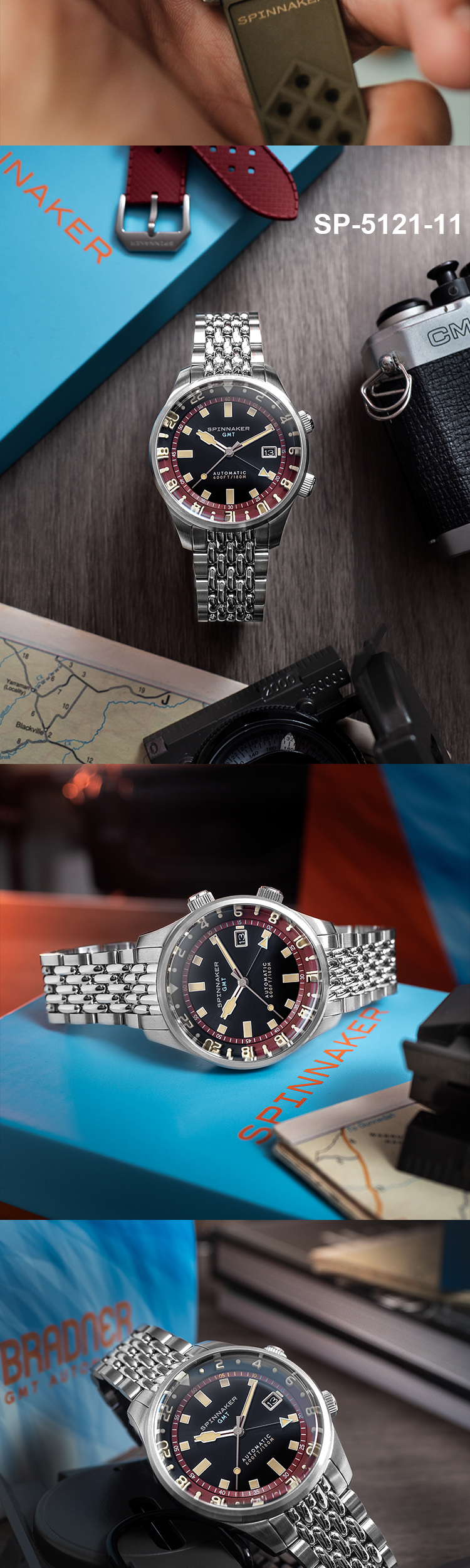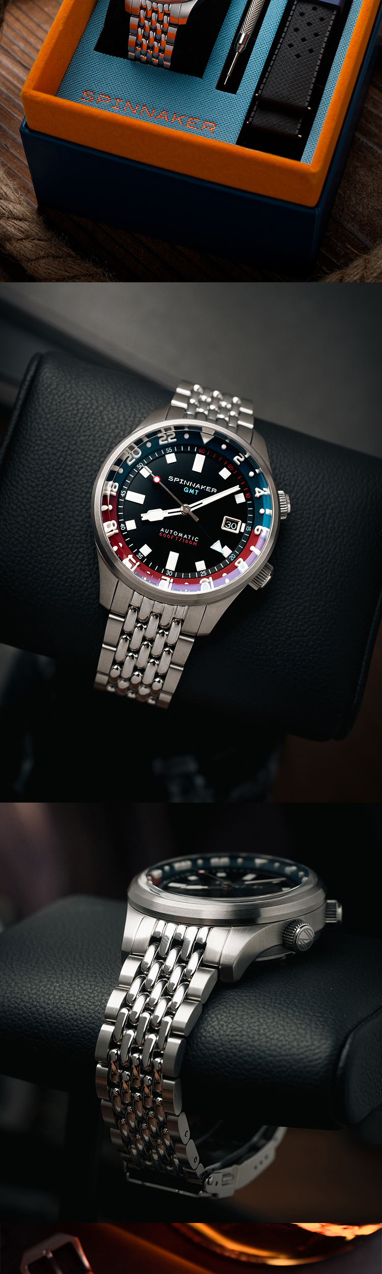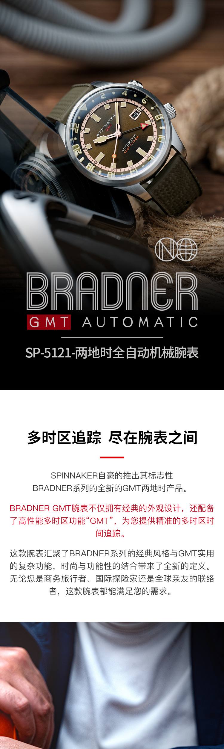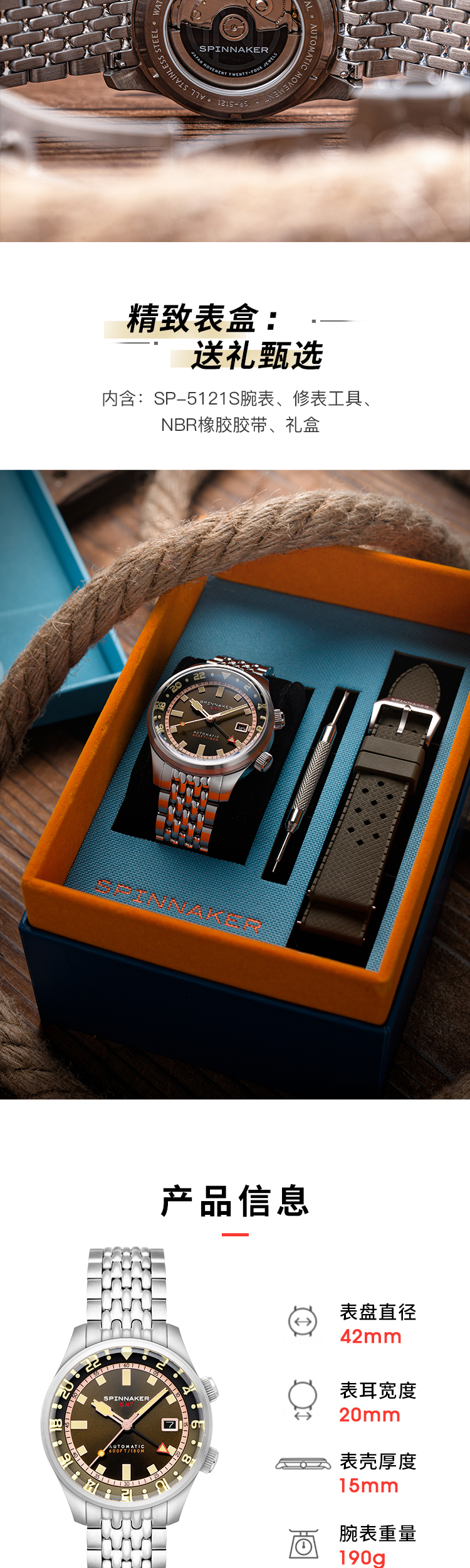 SPINNAKER三角帆GMT两地时复古潜水自动机械手表男士夜光水鬼5121