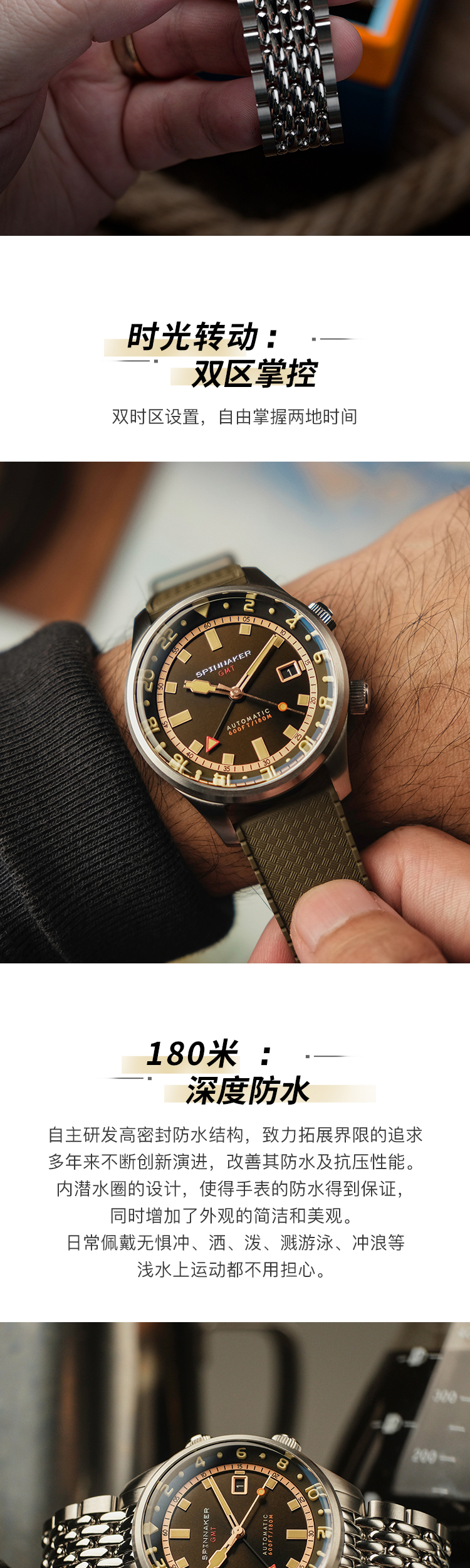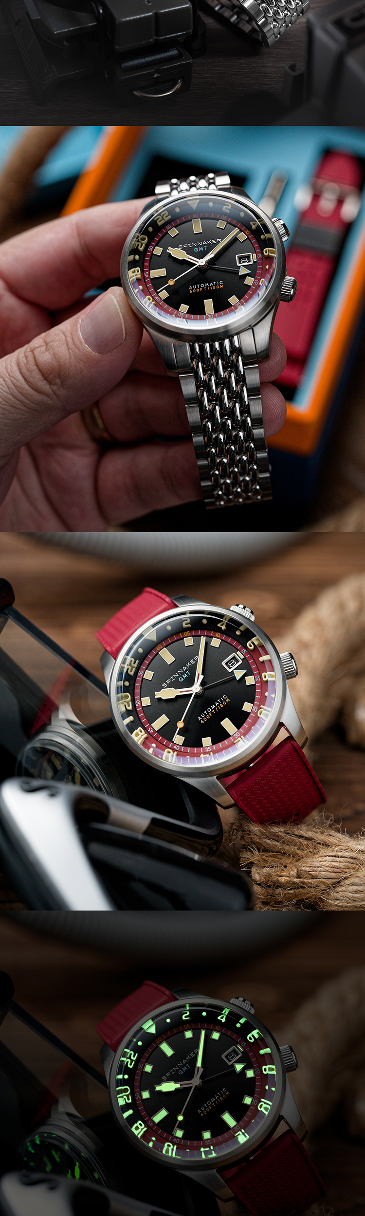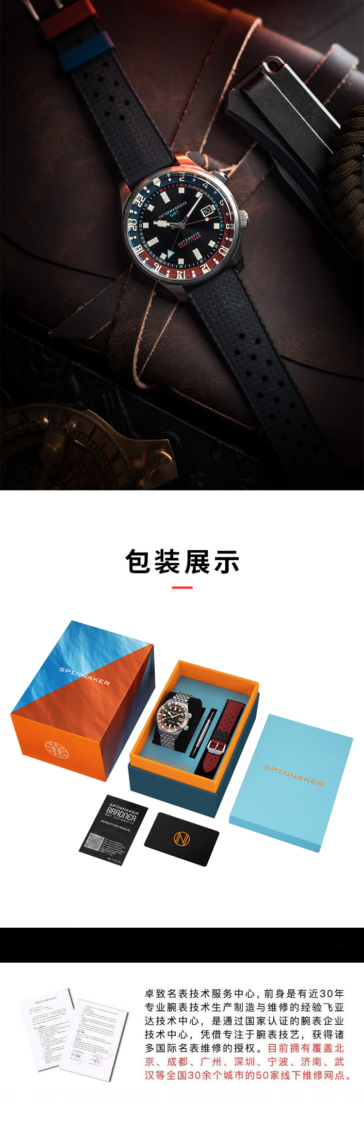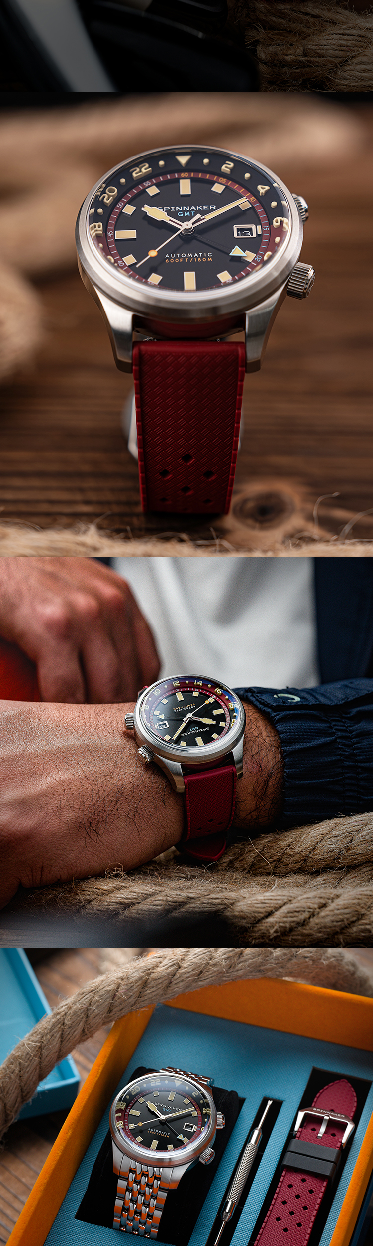 SPINNAKER三角帆GMT两地时复古潜水自动机械手表男士夜光水鬼5121