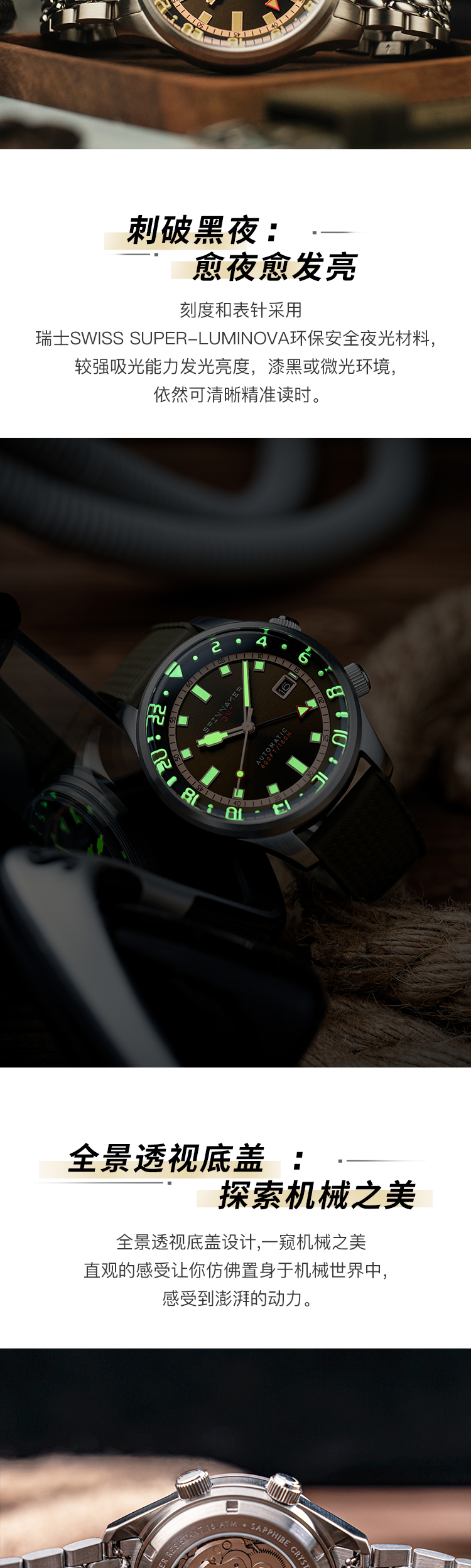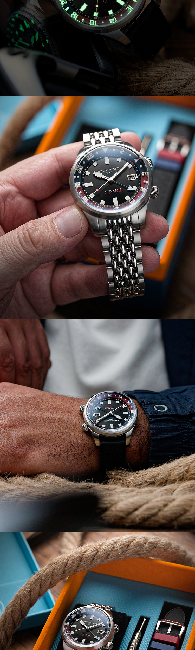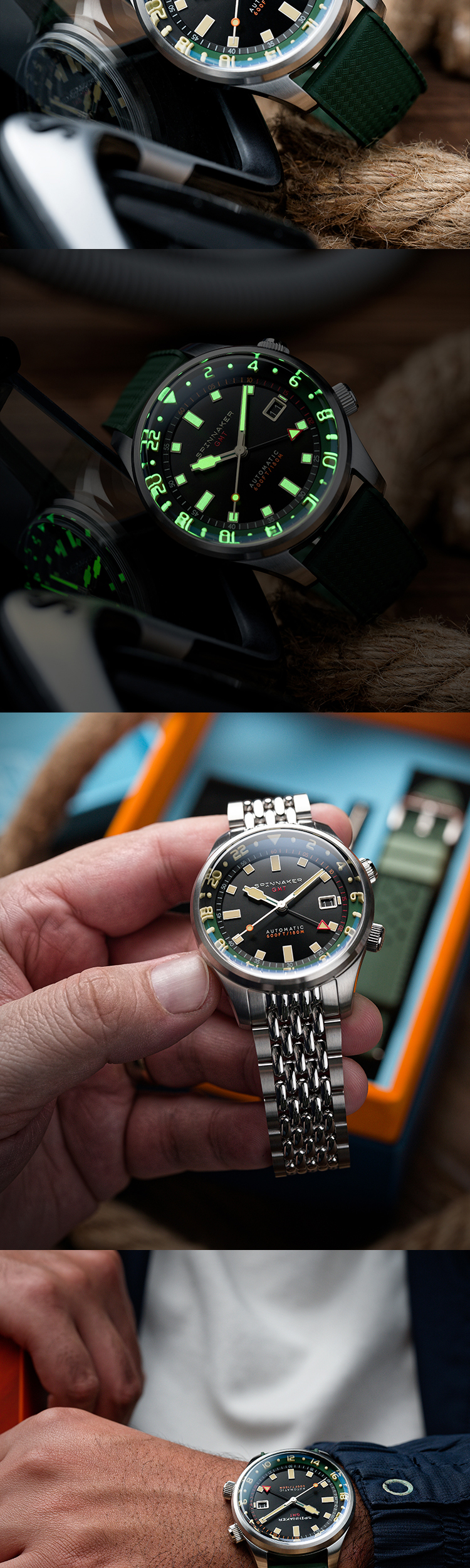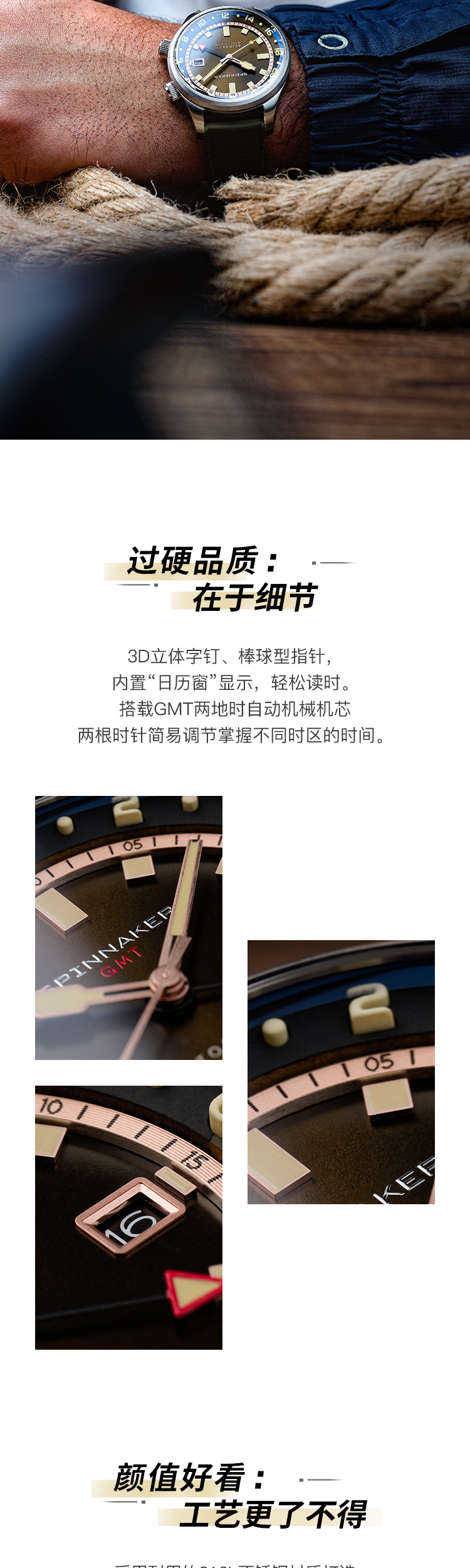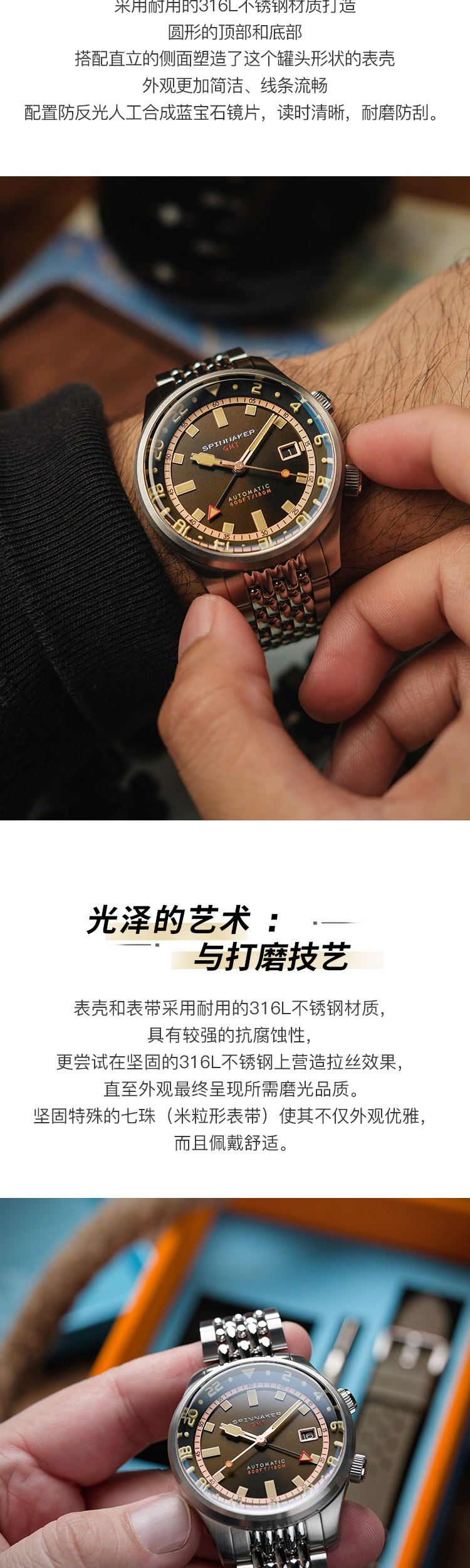 SPINNAKER三角帆GMT两地时复古潜水自动机械手表男士夜光水鬼5121