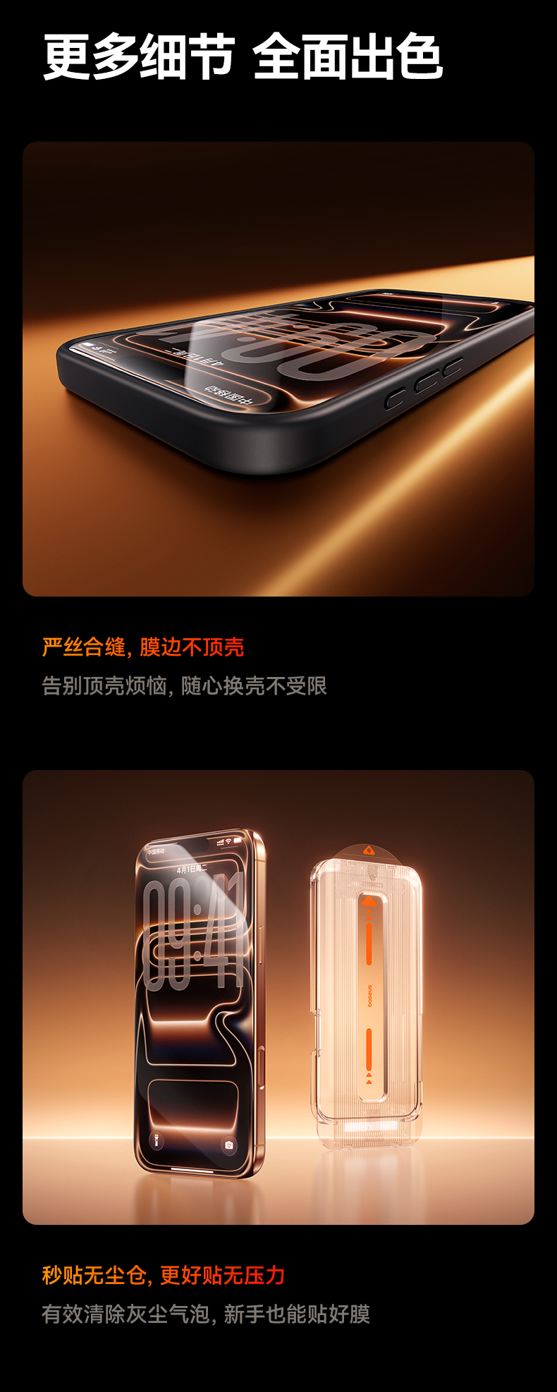 倍思 康宁系列 一体防尘 全屏 高清 钢化膜