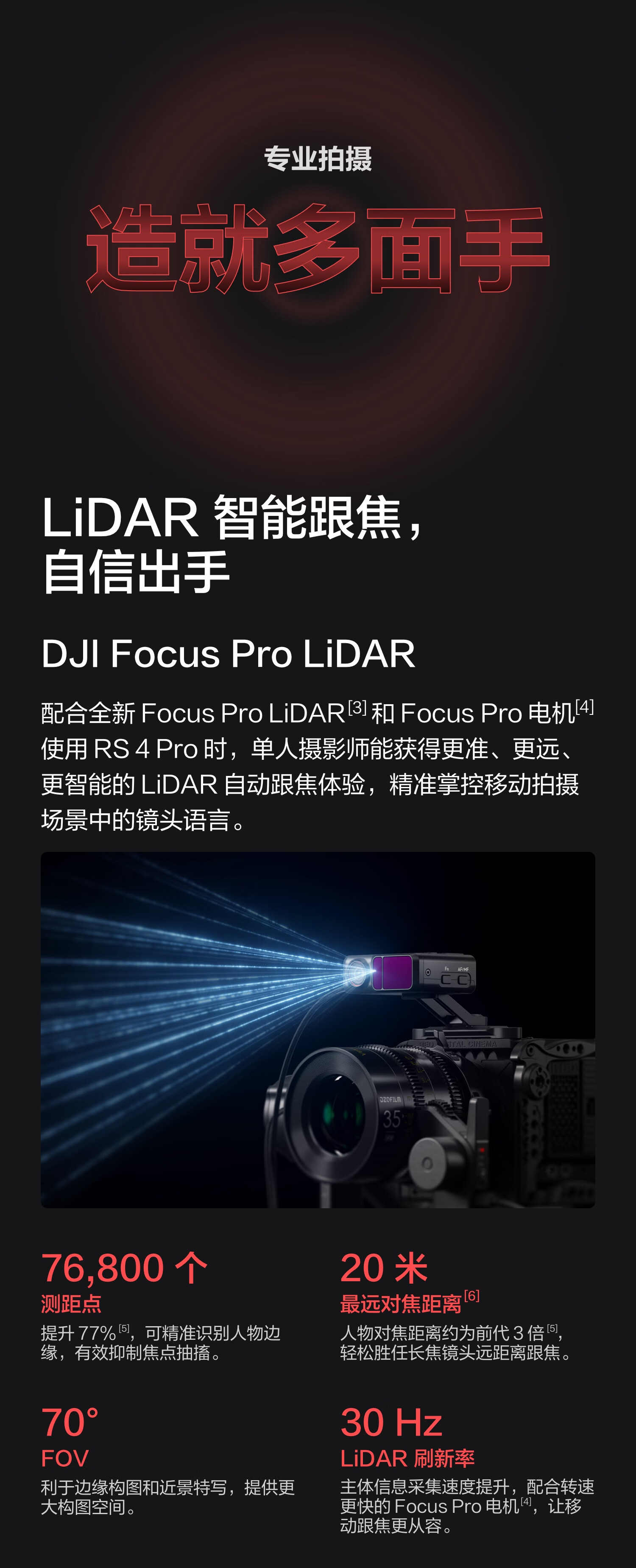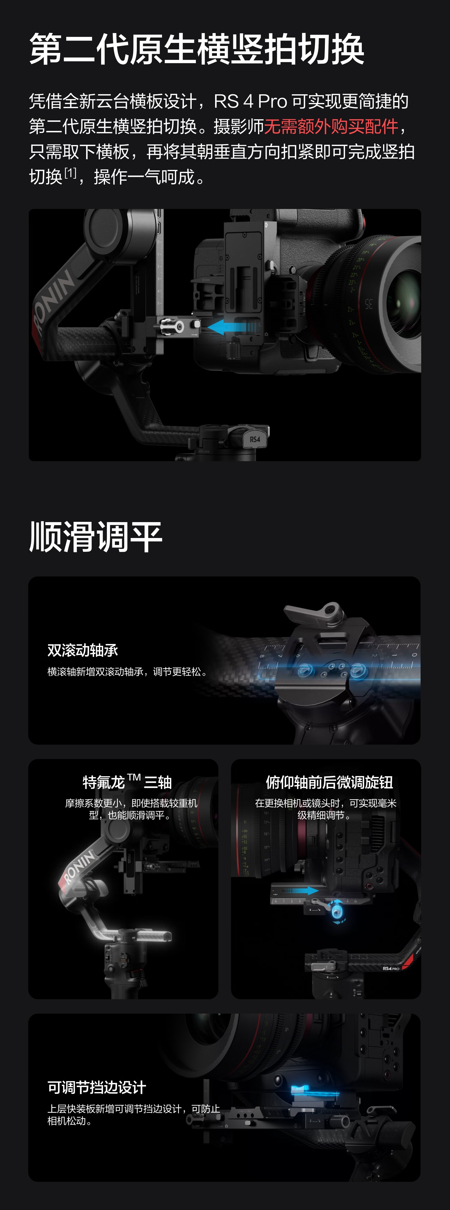 大疆DJI RS 4 Pro 如影手持云台稳定器 三轴防抖手持拍摄稳定器 4.5千克负载 旗舰专业单反云台