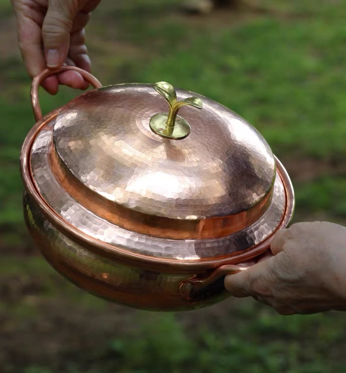 云南双耳手把铜锅 锤纹汤锅 家用火锅 煮锅