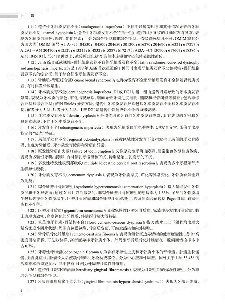 《口腔遗传病与罕见病诊疗常规》一书在编写结构上参照国家住院医师规范化培训教材的体例,强调内容的准确性、实用性与可读性。全书分为上、下两篇:上篇系统梳理相关概念、致病机制、诊断路径与遗传咨询等内容;下篇则依据临床表现,将疾病分为六大类别进行详细阐述,涵盖从牙体牙周异常至颅颌面肿瘤样病变的各类情况。